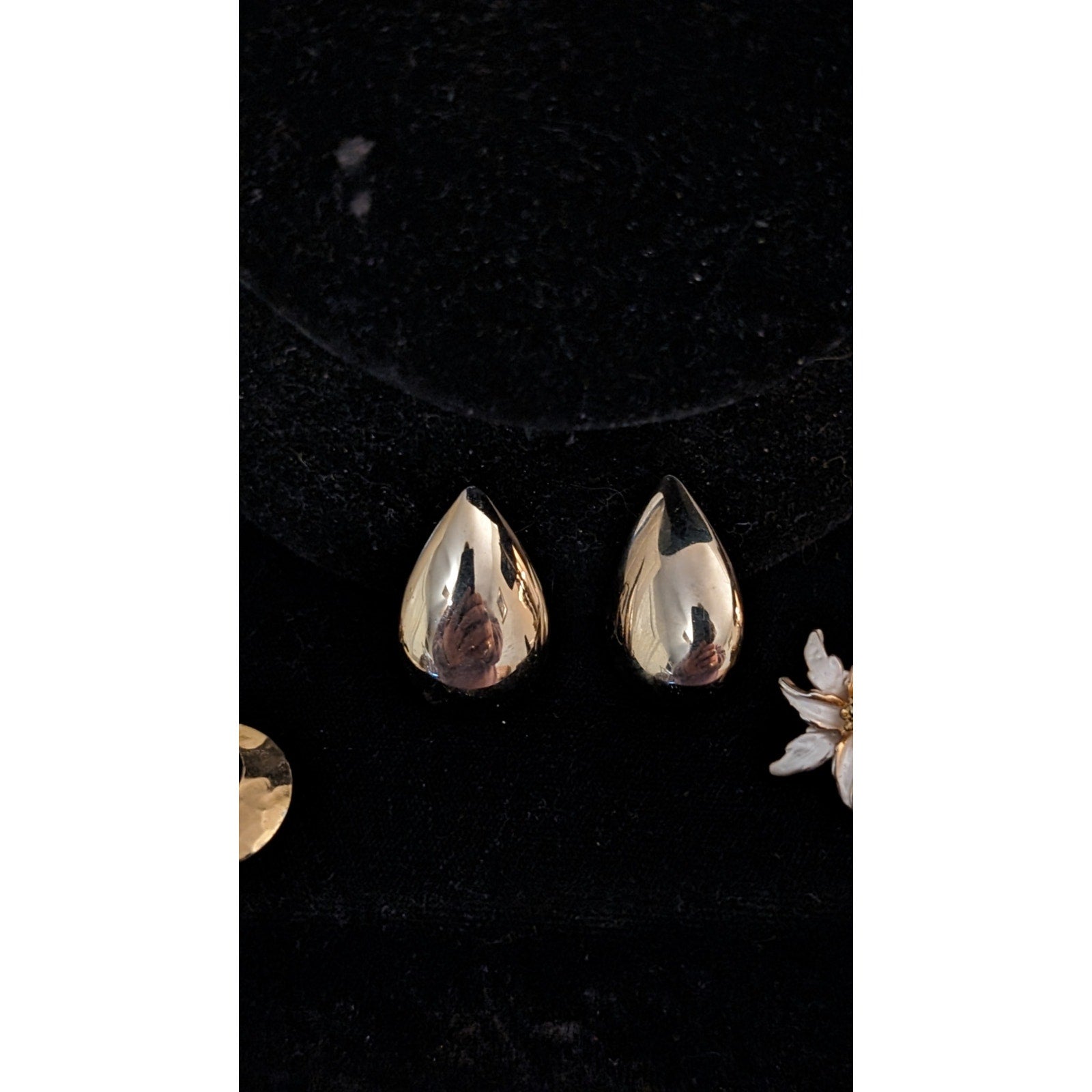 Four Pair Vintage Gold Tone Clip On Earrings. Pre-owned, these earrings are in excellent condition. The white enamel flower clip ons sell for $39 elsewhere.