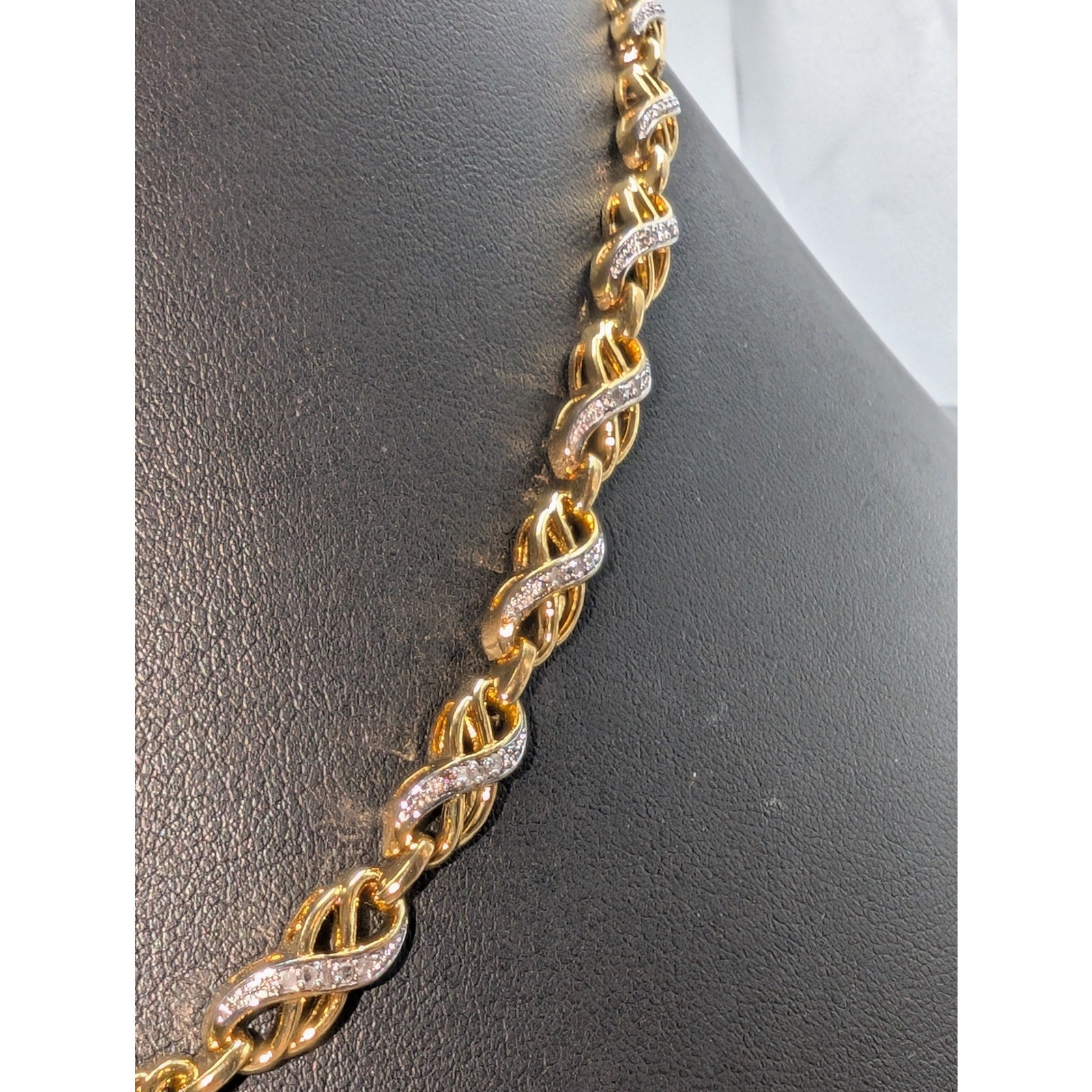 Gold & Silver Plated Moissanite Double Infinity Chain Link 17"-18.5" Necklace. Lobster claw clasp. Pre-owned, this necklace is in excellent condition.