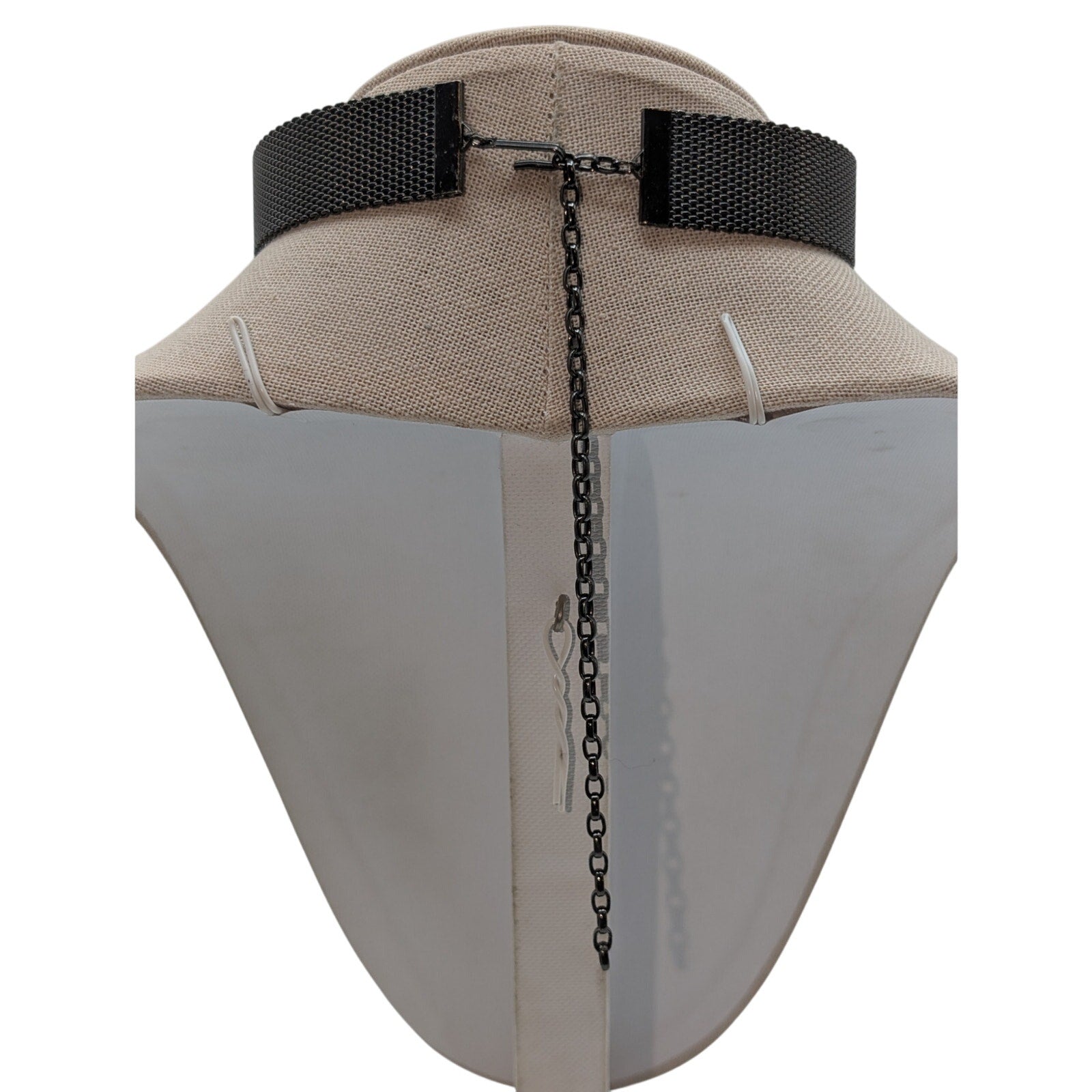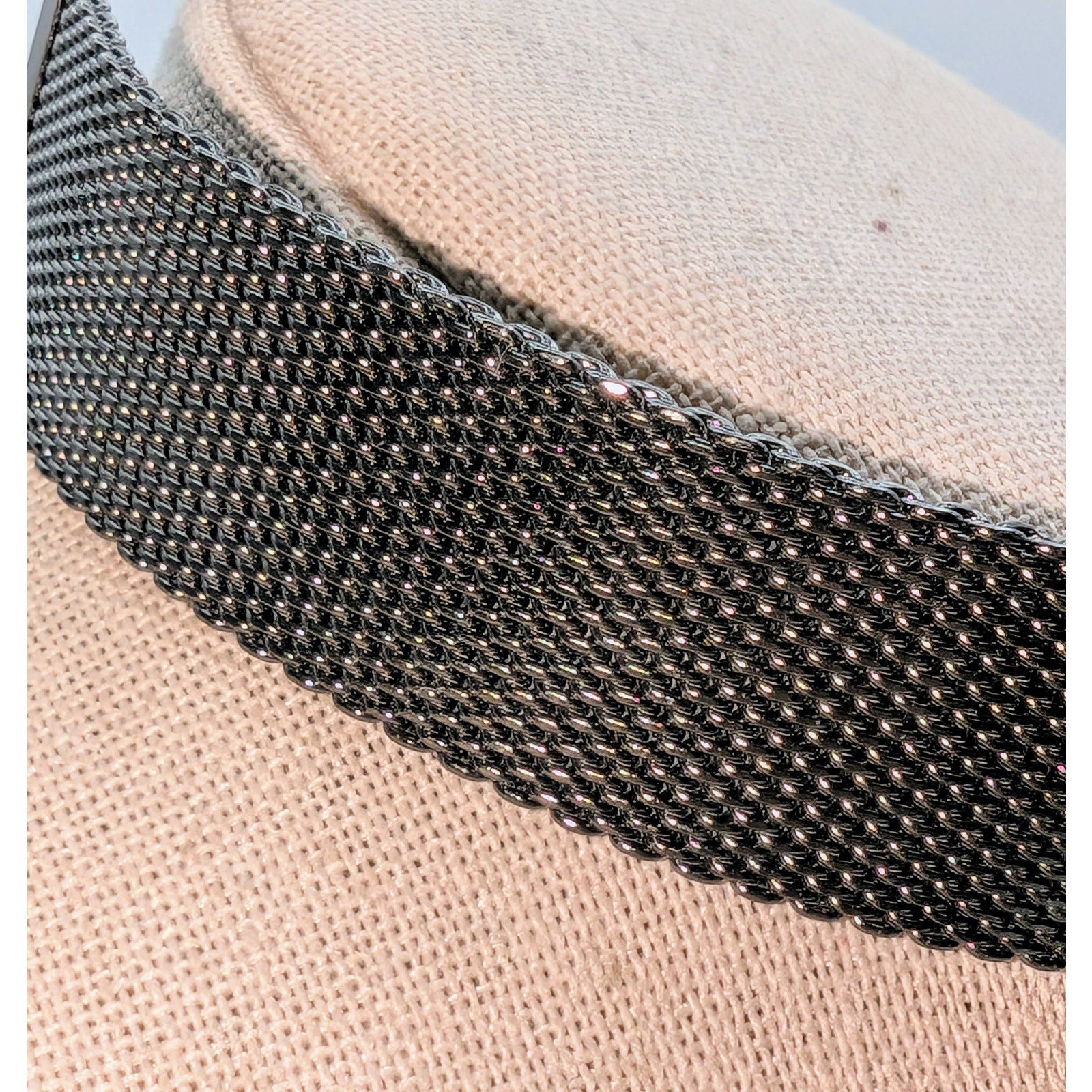 Gun Metal Mesh Metal Gray Rose Choker 12"-17" Necklace. Gorgeous piece. Mesh necklace is 3/4" wide. Pre-owned, this necklace is in excellent condition.