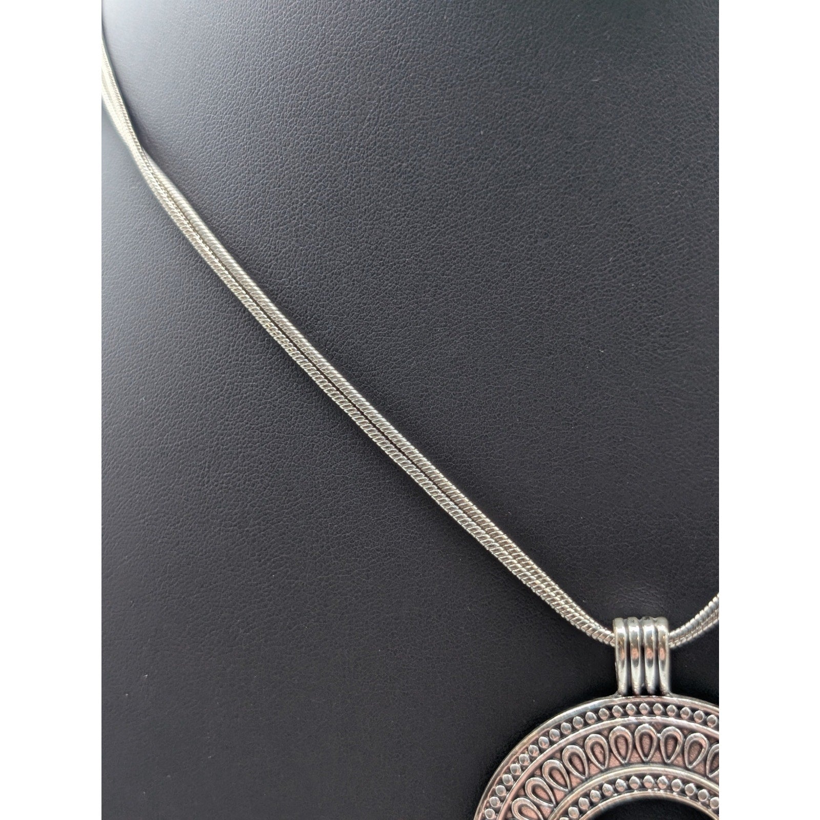 Hallmark 'V' 35"-38" Plus 4" Dangle Pendant Double Chain Silver Tone Necklace. Pre-owned, this necklace is in great condition.