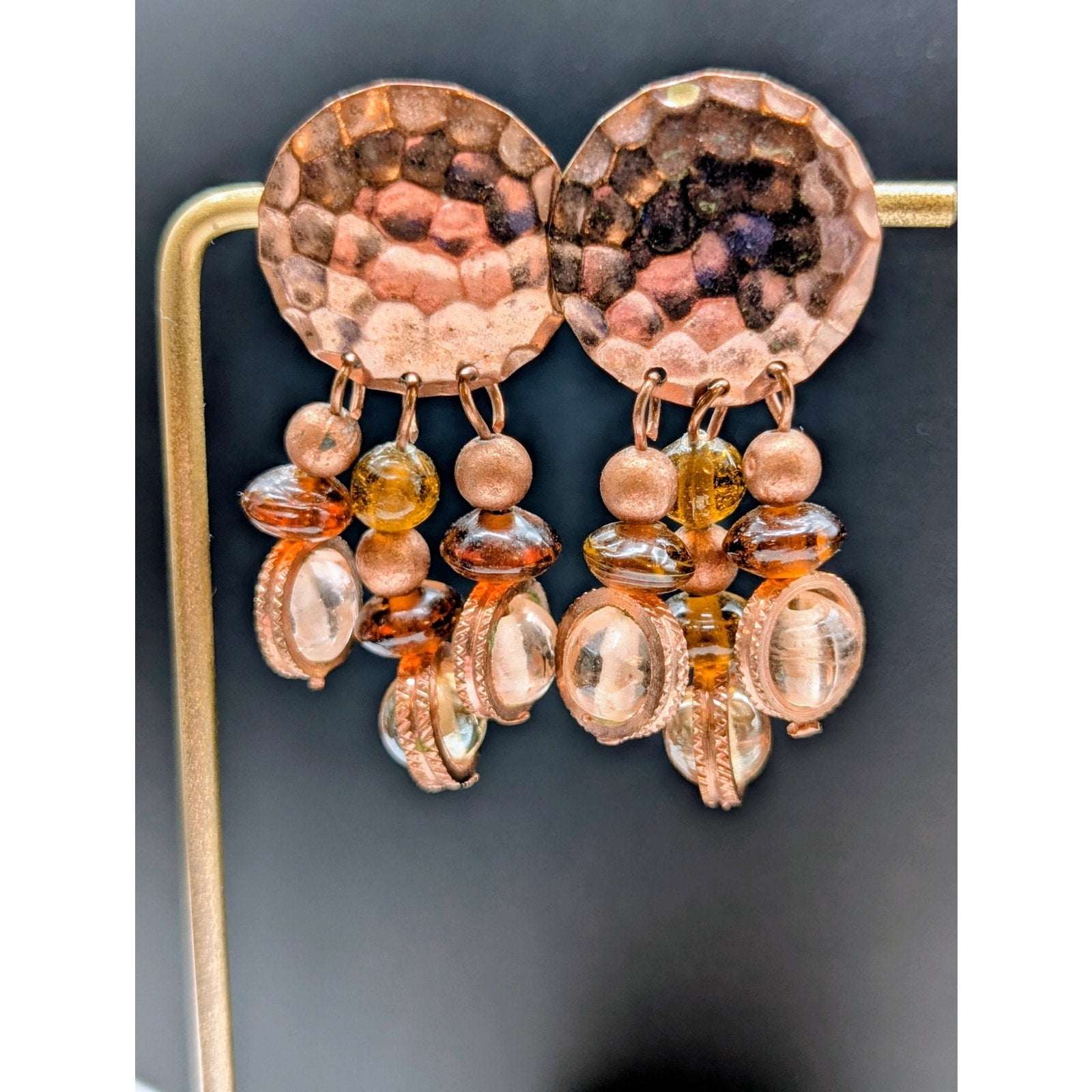 Hammered Copper Glass Bead Dangle Earrings. Pre-owned, these earrings are in good condition. Pierced ears.