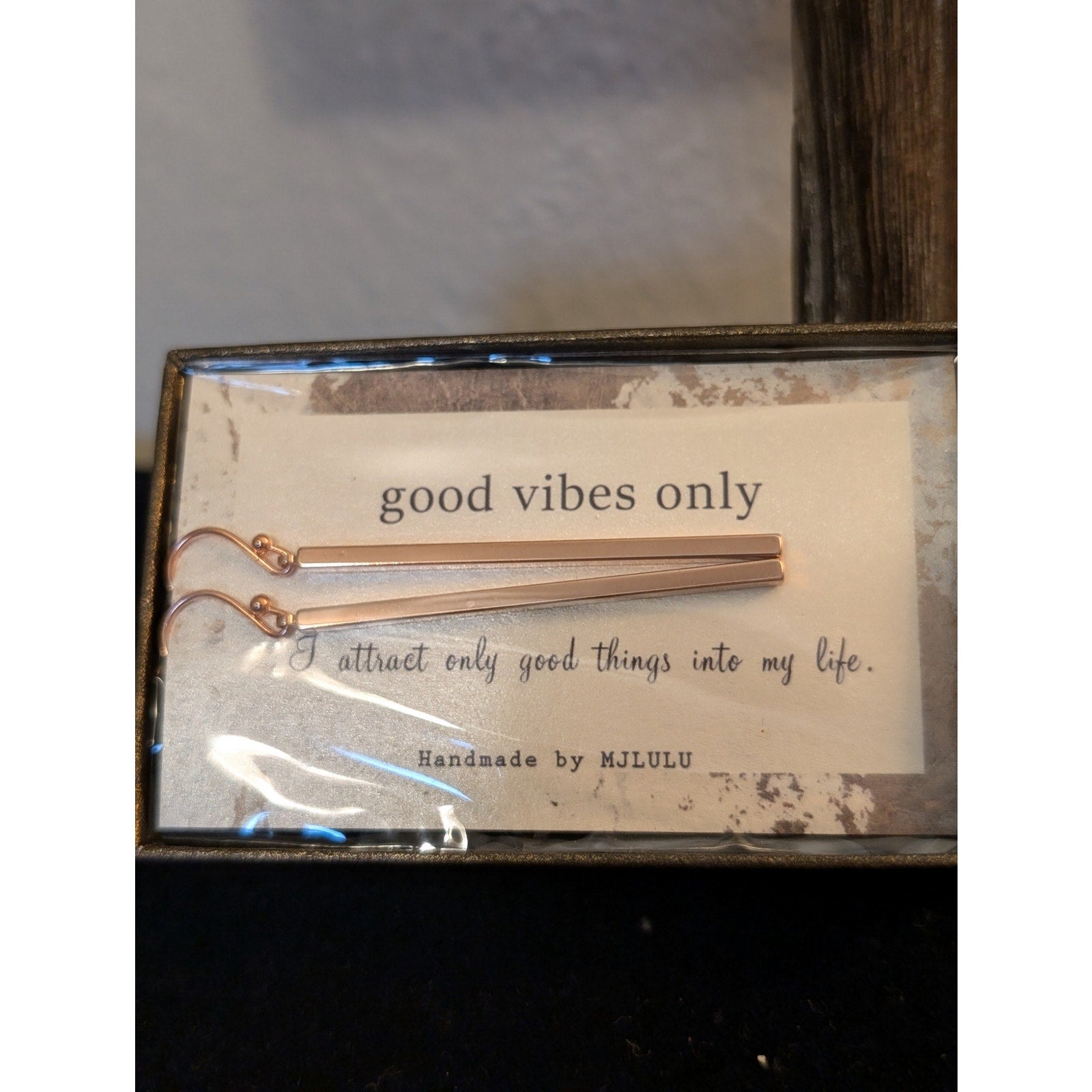 Handmade by MJLULU Rose Tone 2" Bar Dangle Earrings NWT. Pre-owned, these earrings are in NWT in box condition.