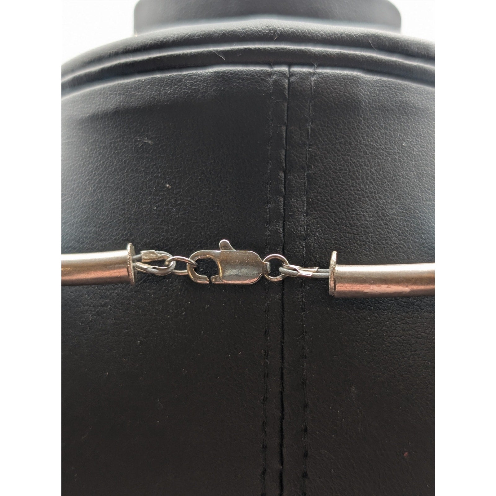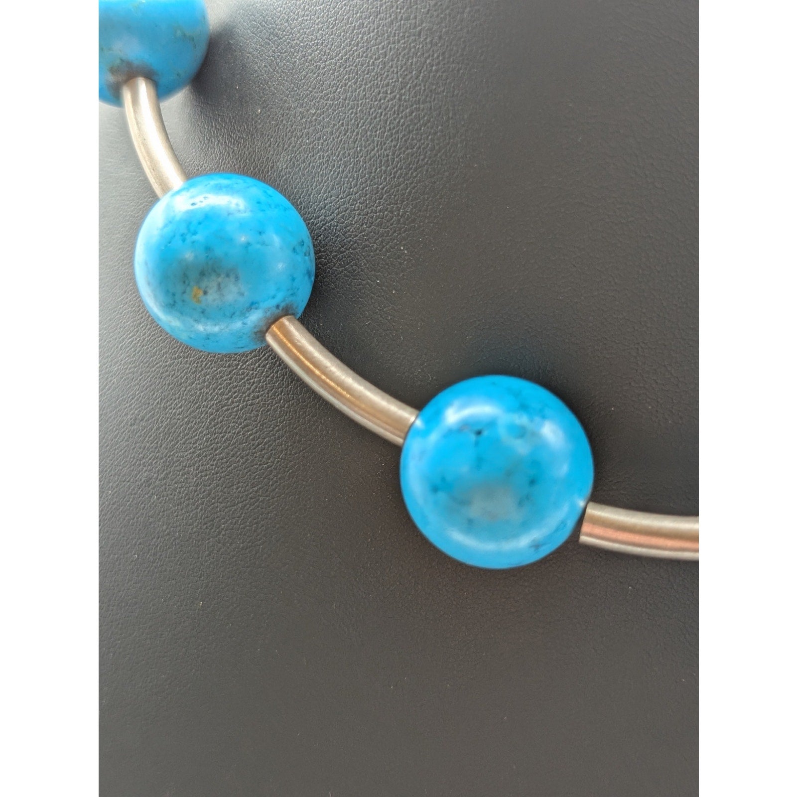 Heavy Blue Stone Bead Curved Silver Tone Rod Bead 17" Necklace. Pre-owned, this necklace is in excellent condition.