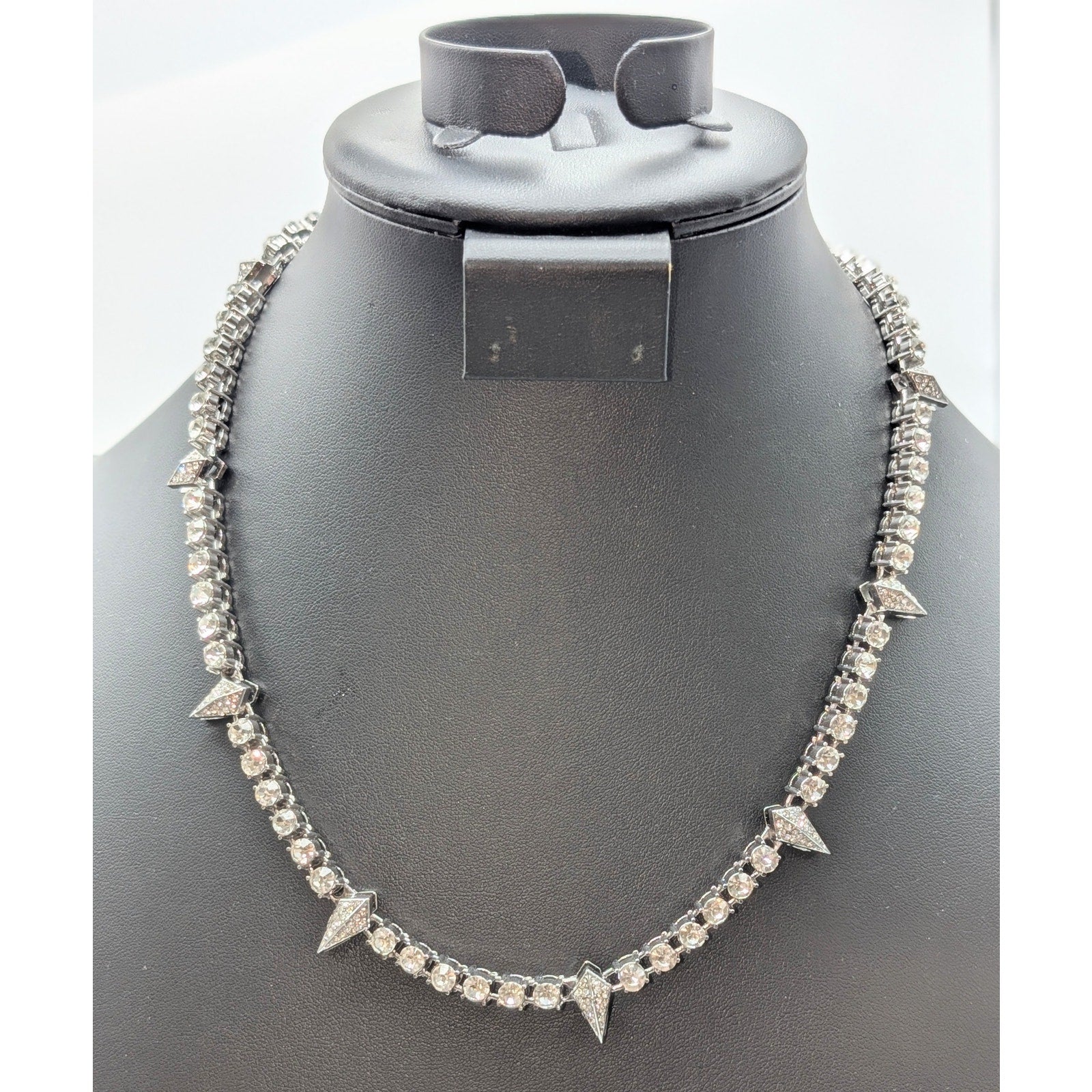 Hip Hop Black Panther CZ Wolf Tooth Silver Tone Fold Over Clasp 19.5" Chain Necklace. Pre-owned, this necklace is in excellent condition.