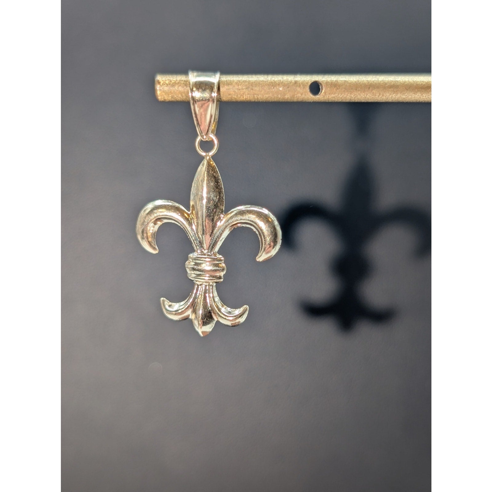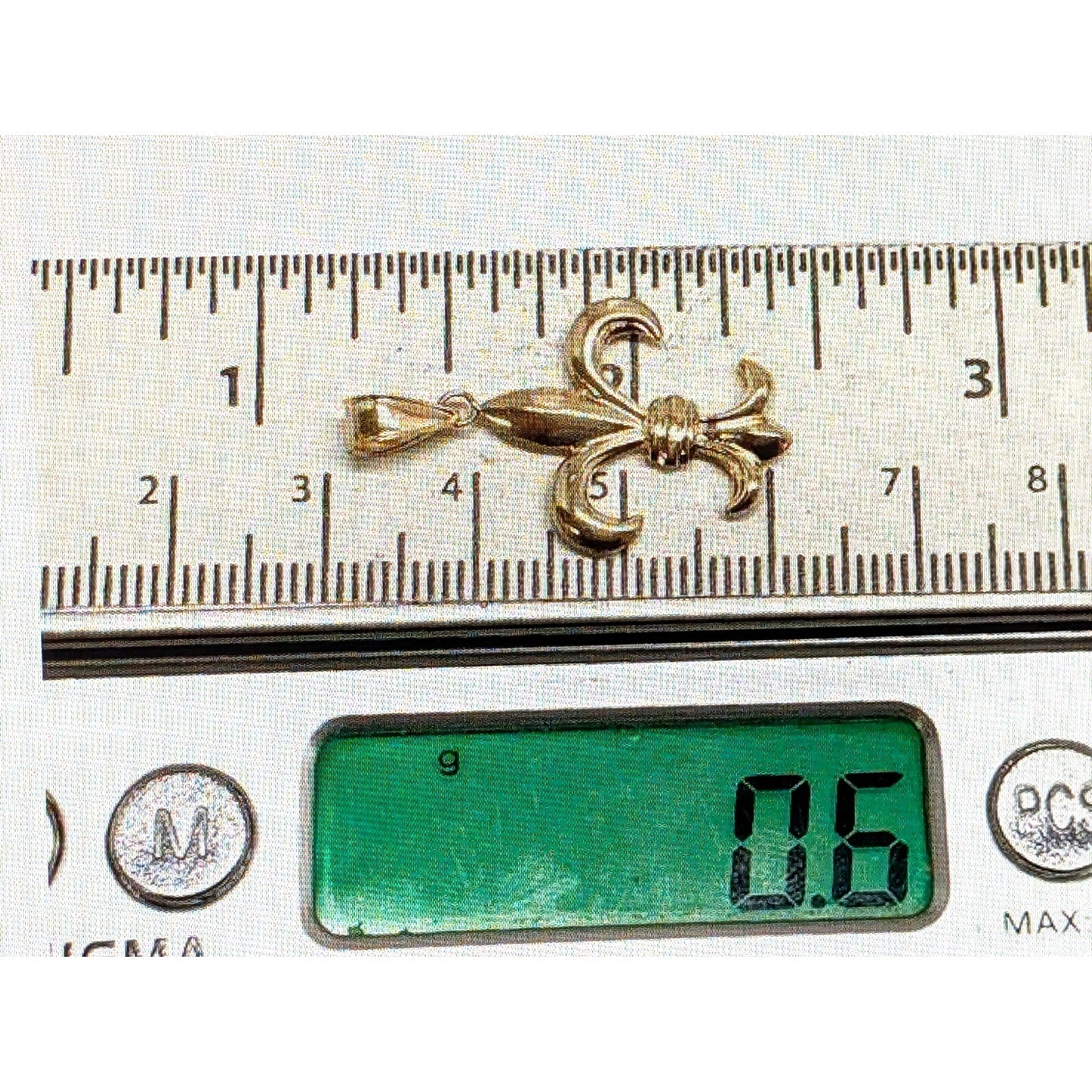 Jacmel 14K Yellow Gold Fleur-de-Lis Pendant .6 Grams. Pre-owned, this pendant is in excellent condition.