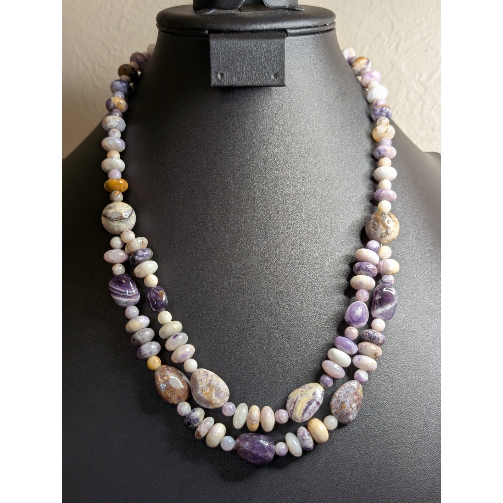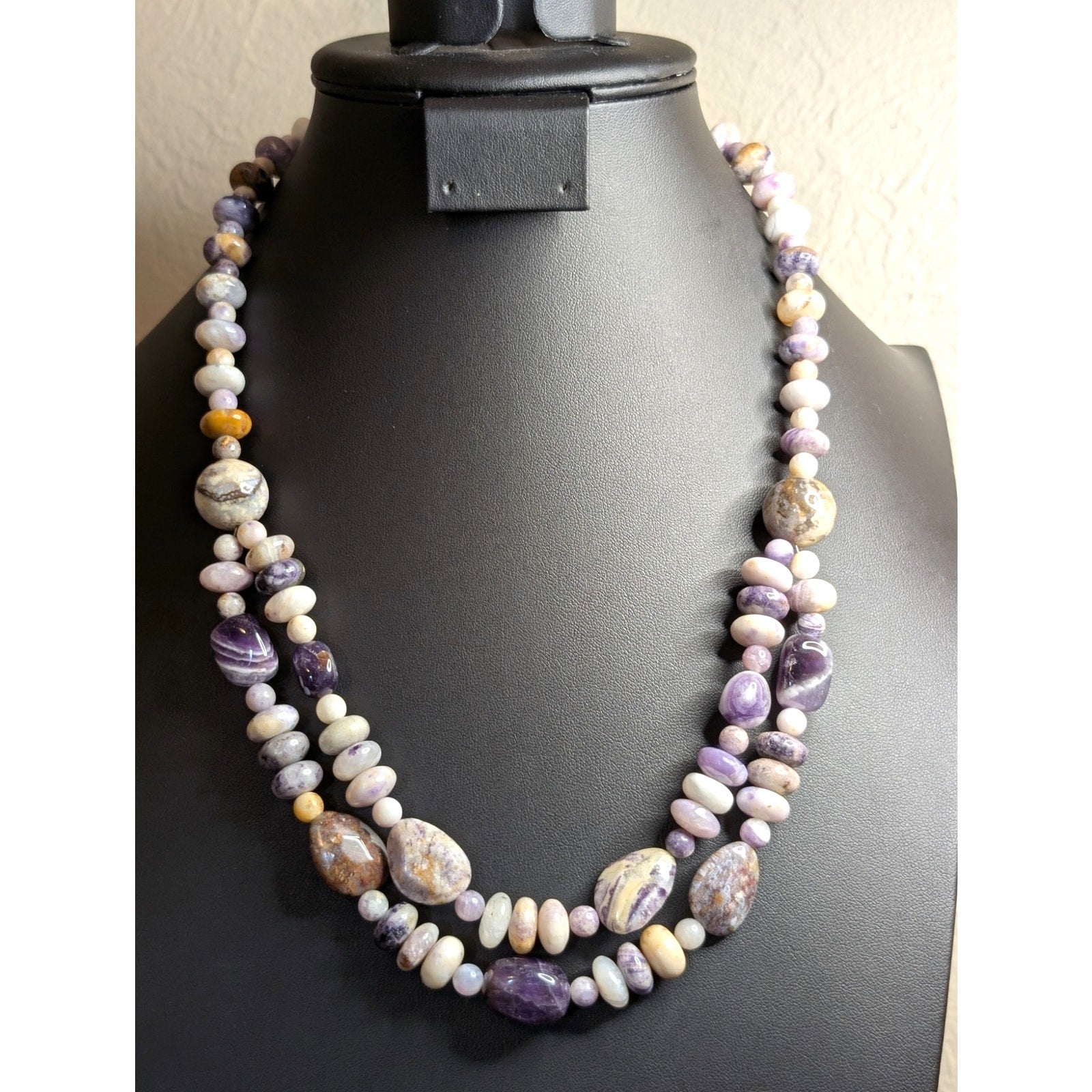 Jay King DTR 925 Sterling Amethyst Jadeite Bead Single to Double Strand Necklace