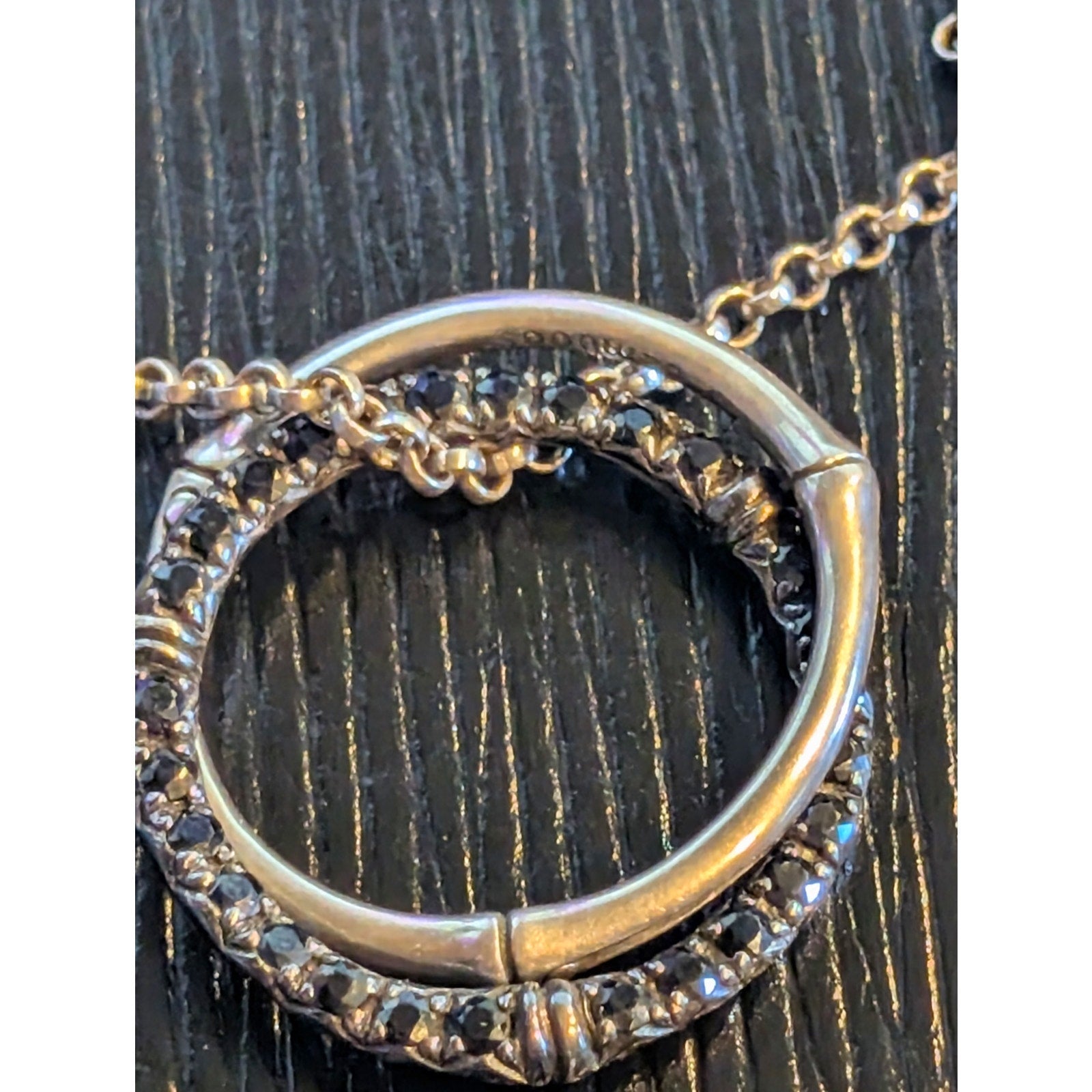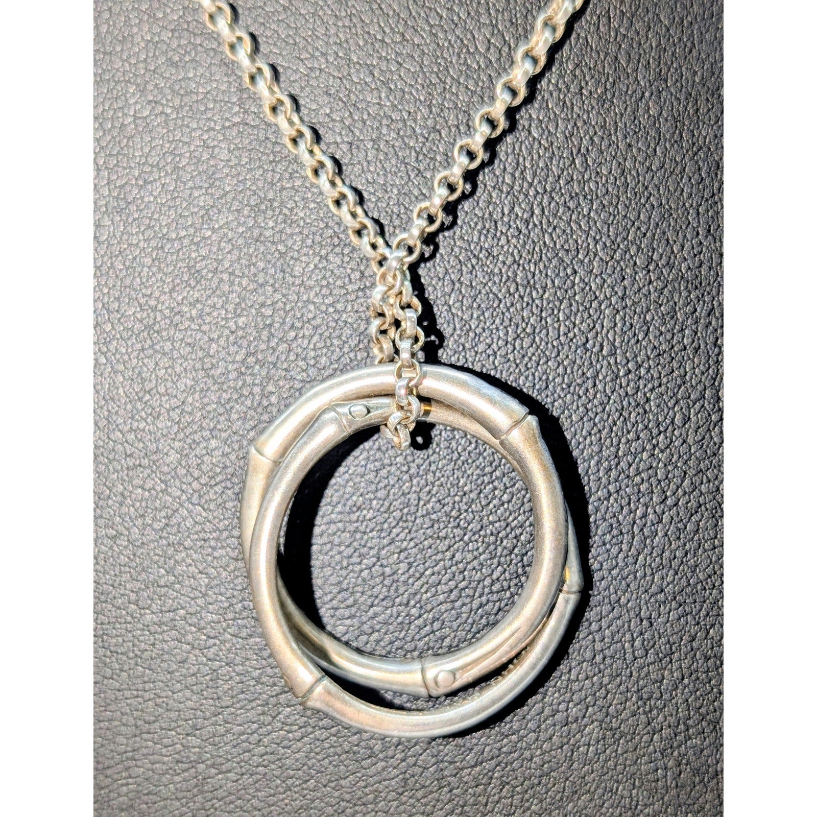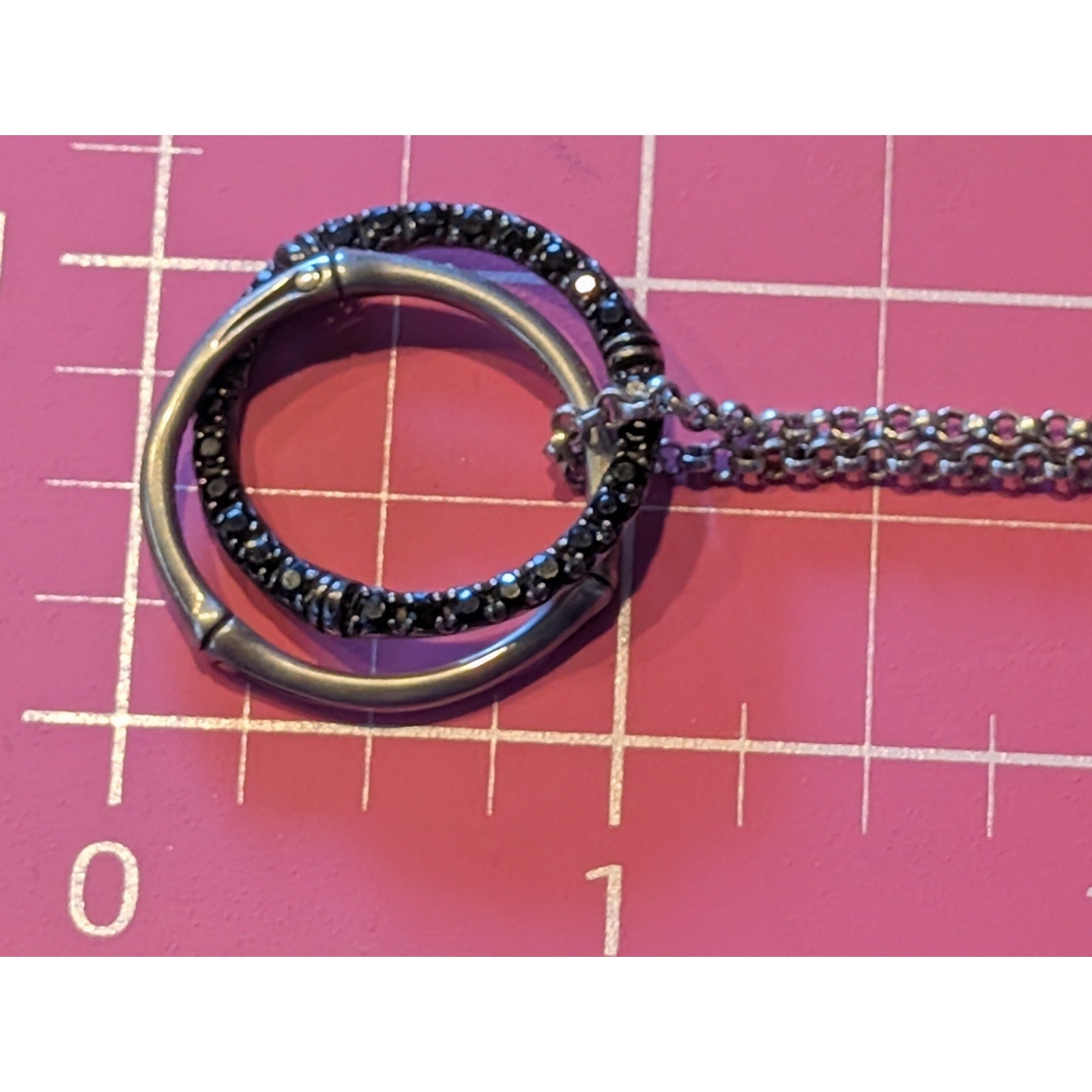 John Hardy Signed Bamboo Collection 925 Sterling Silver Black Sapphire Interlocking Circles Pendant Rolo Chain 19.75" Necklace. Pre-owned, this necklace is in excellent condition. Originally sold for $695. I did not polish and will leave that to the buyer.