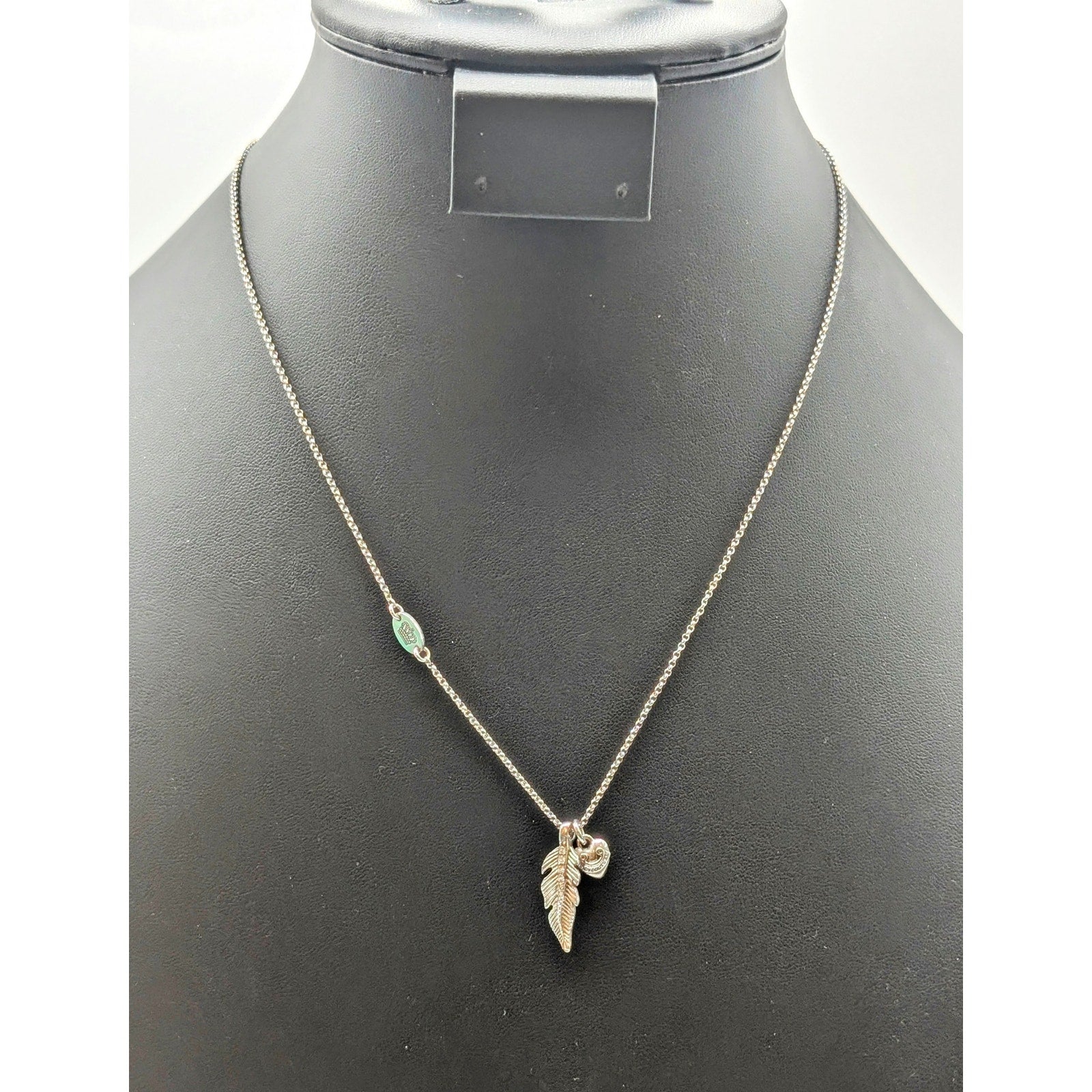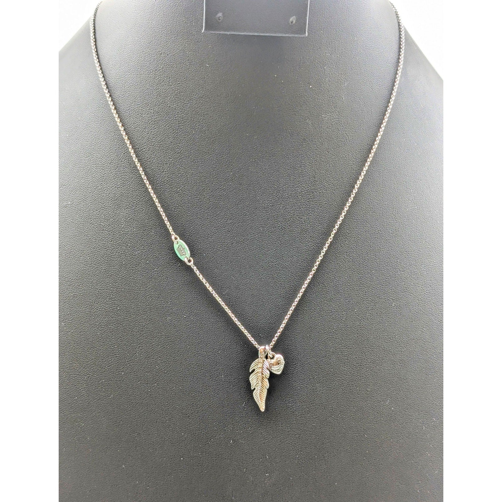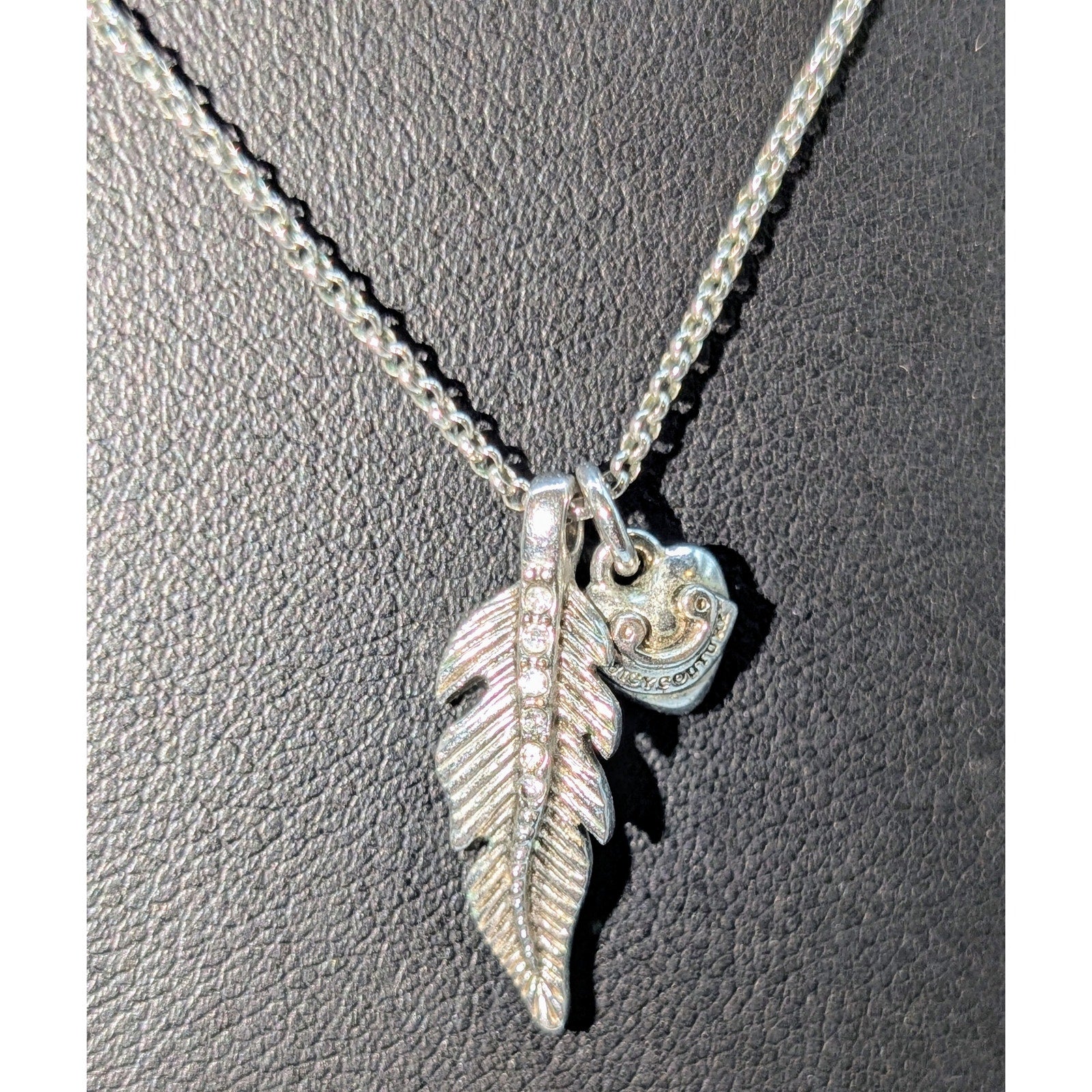Juicy Couture Crystal Feather Heart Charm Silver Tone 16"-19" Necklace. Pre-owned, this necklace is in excellent condition.
