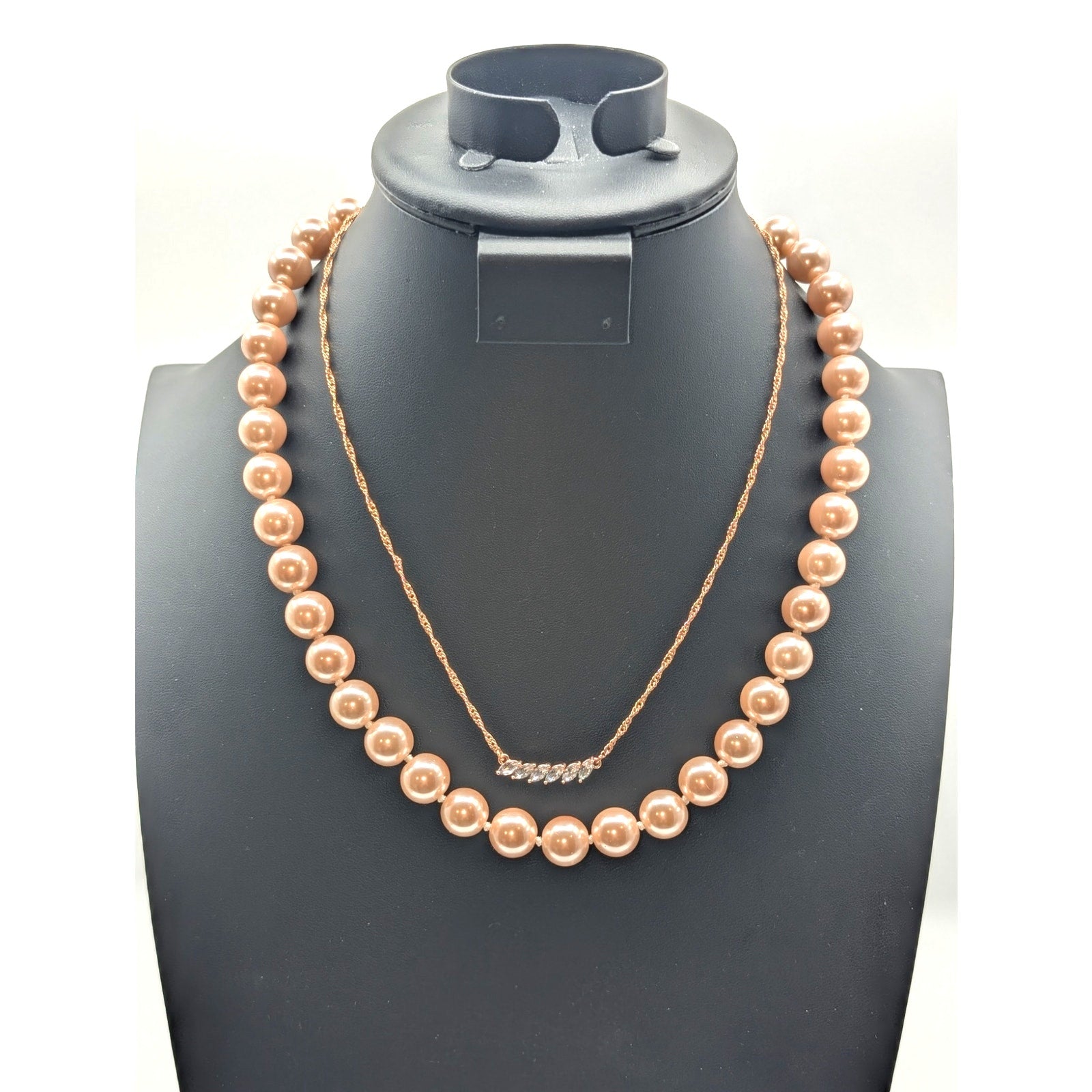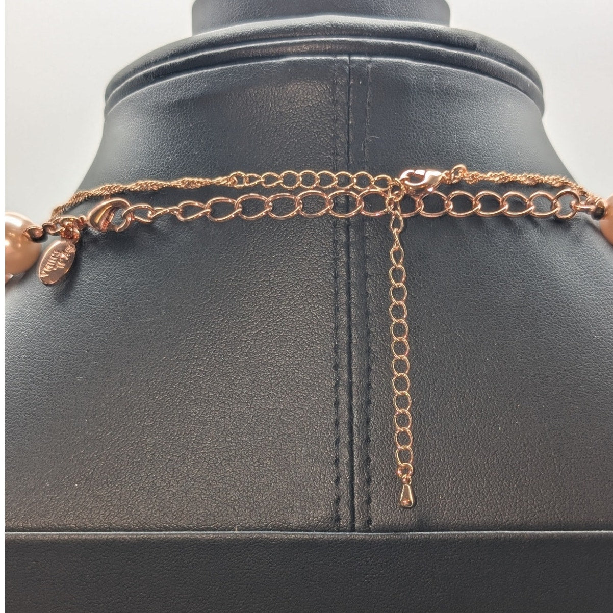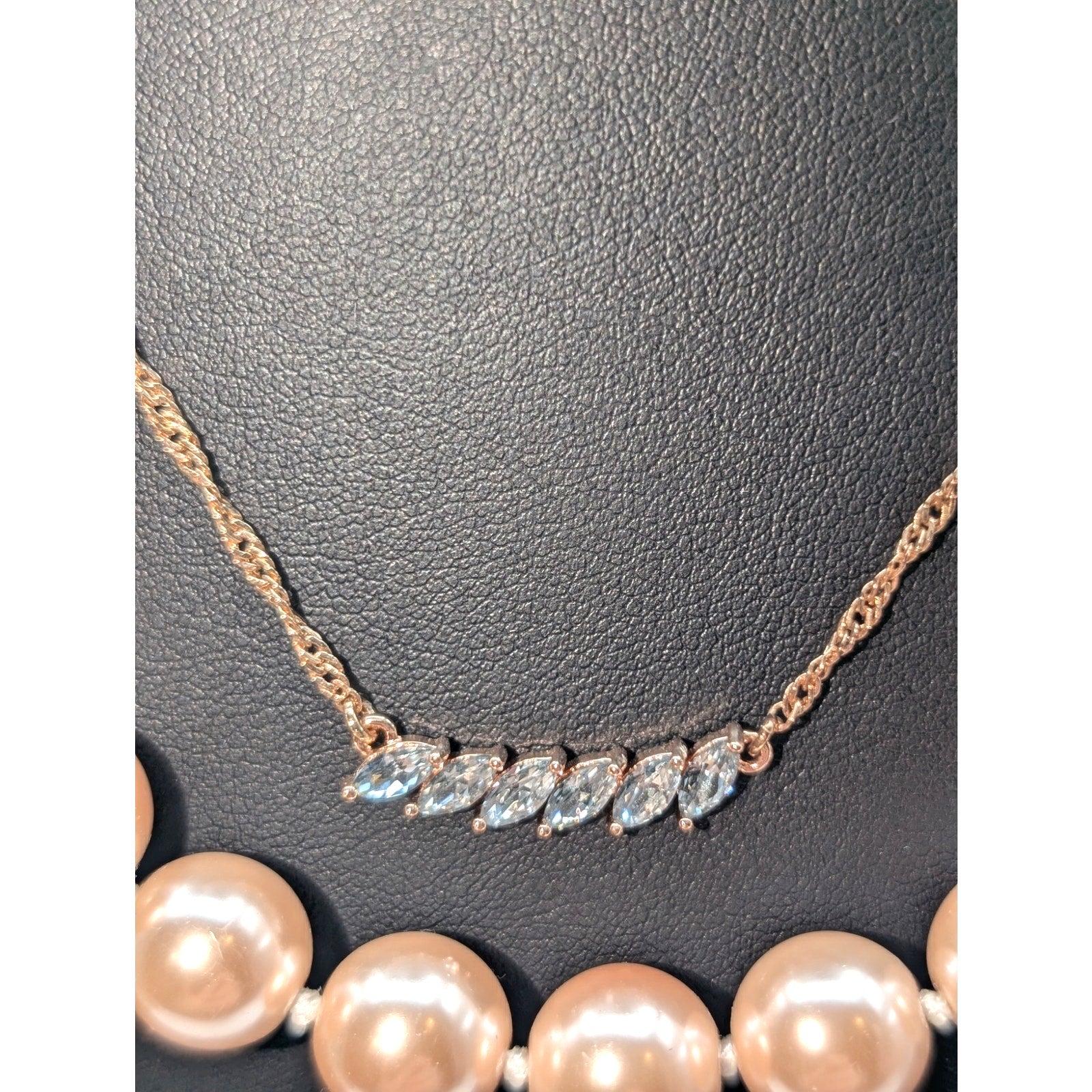 Kenneth Jay Lane 12 mm Pink Faux Pearl & Floating CZ Rose Tone Necklaces