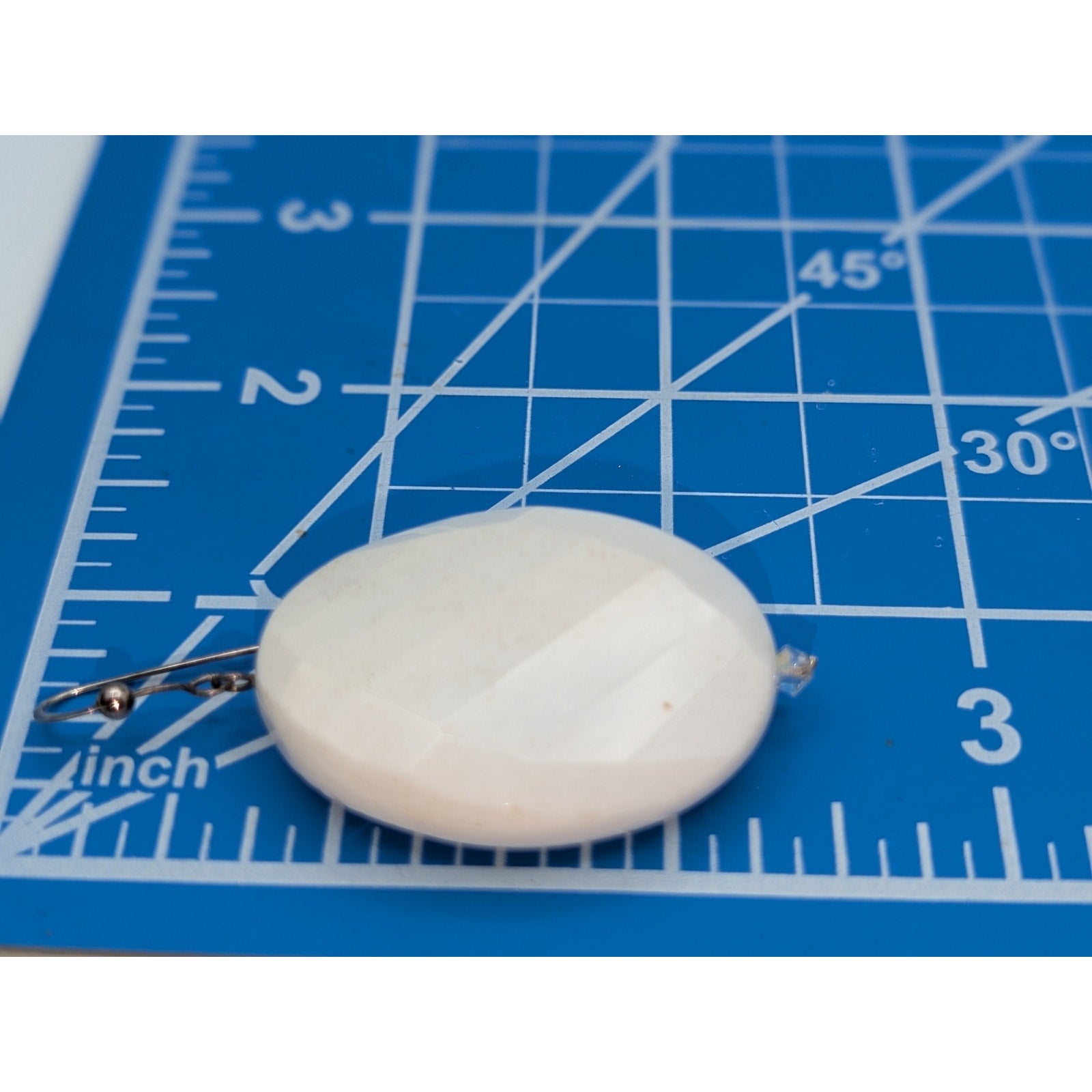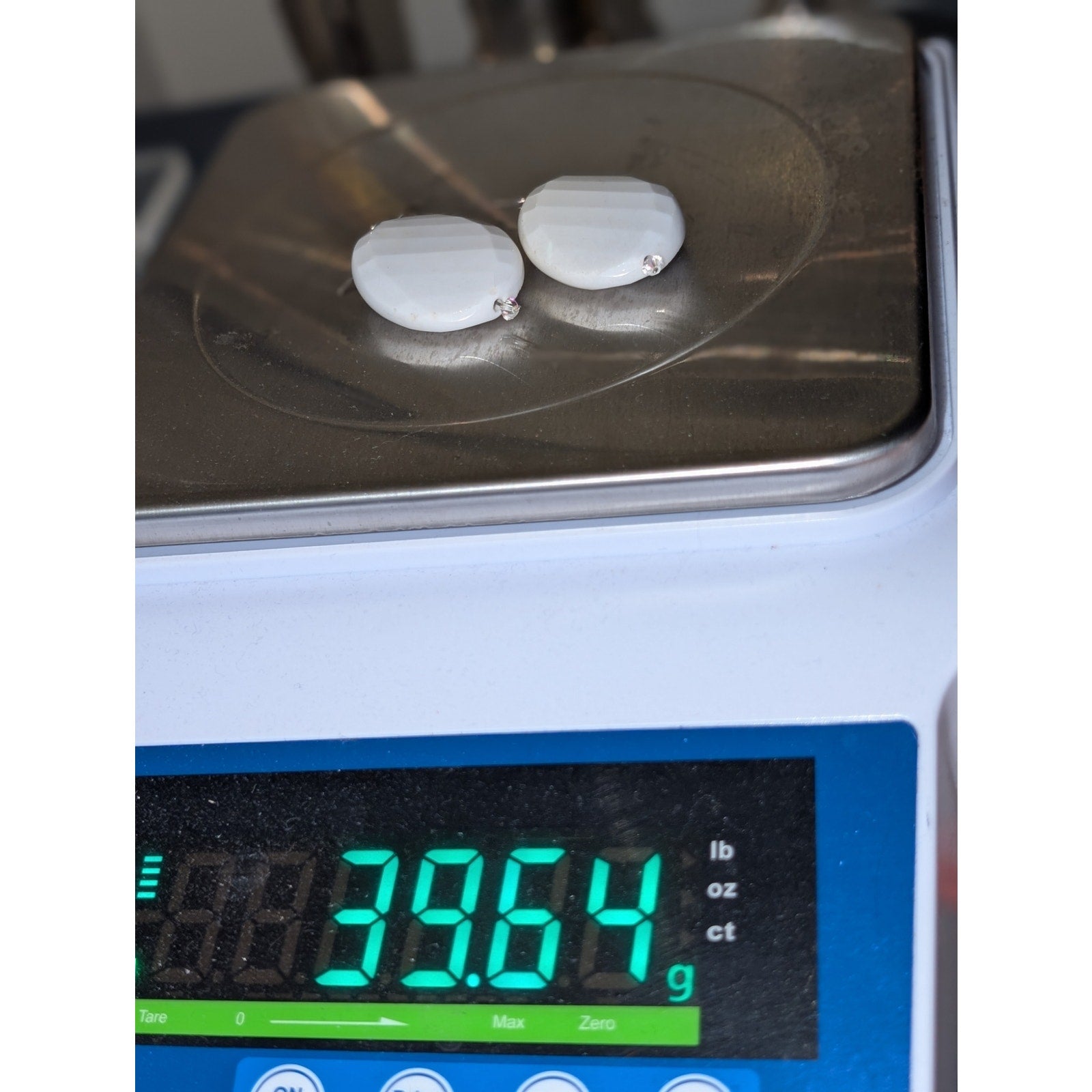 Large Faceted White Gemstone 925 Sterling Silver Dangle Earrings. You can see when you look close the brown flecks and veins of the stone. I'm not positive what the stone is, possibly white quartz or onyx. Crystal on the bottom to finish them off. Pre-owned, these earrings are in great condition.
