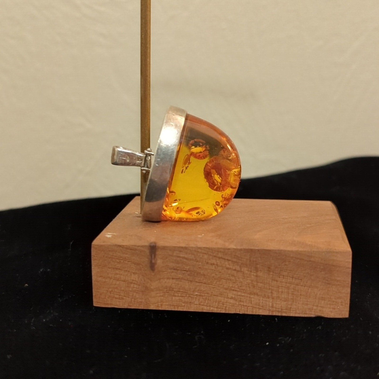 Large Vintage Natural Baltic Amber Pendant In a 925 Silver Cap Setting With Large Bale. I'm not sure what the chain is, so I'm just throwing it in. It is marked something, but I can't read it. This pendant is large. It would look better on a larger chain. Pre-owned, it is in excellent condition.