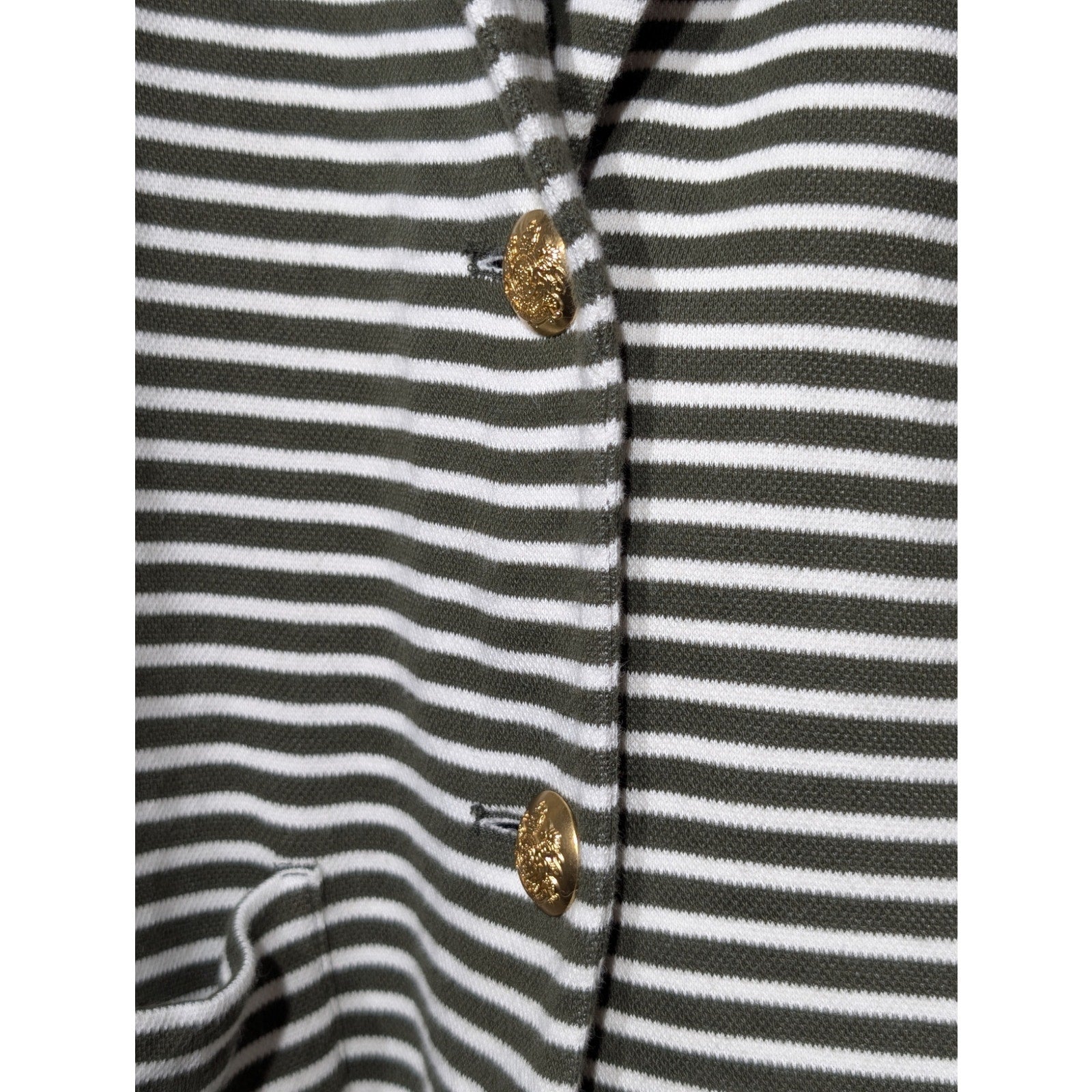 Lauren Ralph Lauren Olive Striped Pique Knit Gold Button Blazer Womens' Sz XL