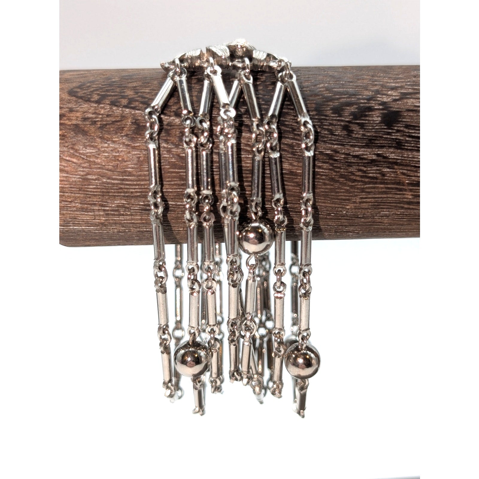 Lisner Vintage Eight Strand Bar Bead Chain Fold Over Shell Clasp Bracelet
