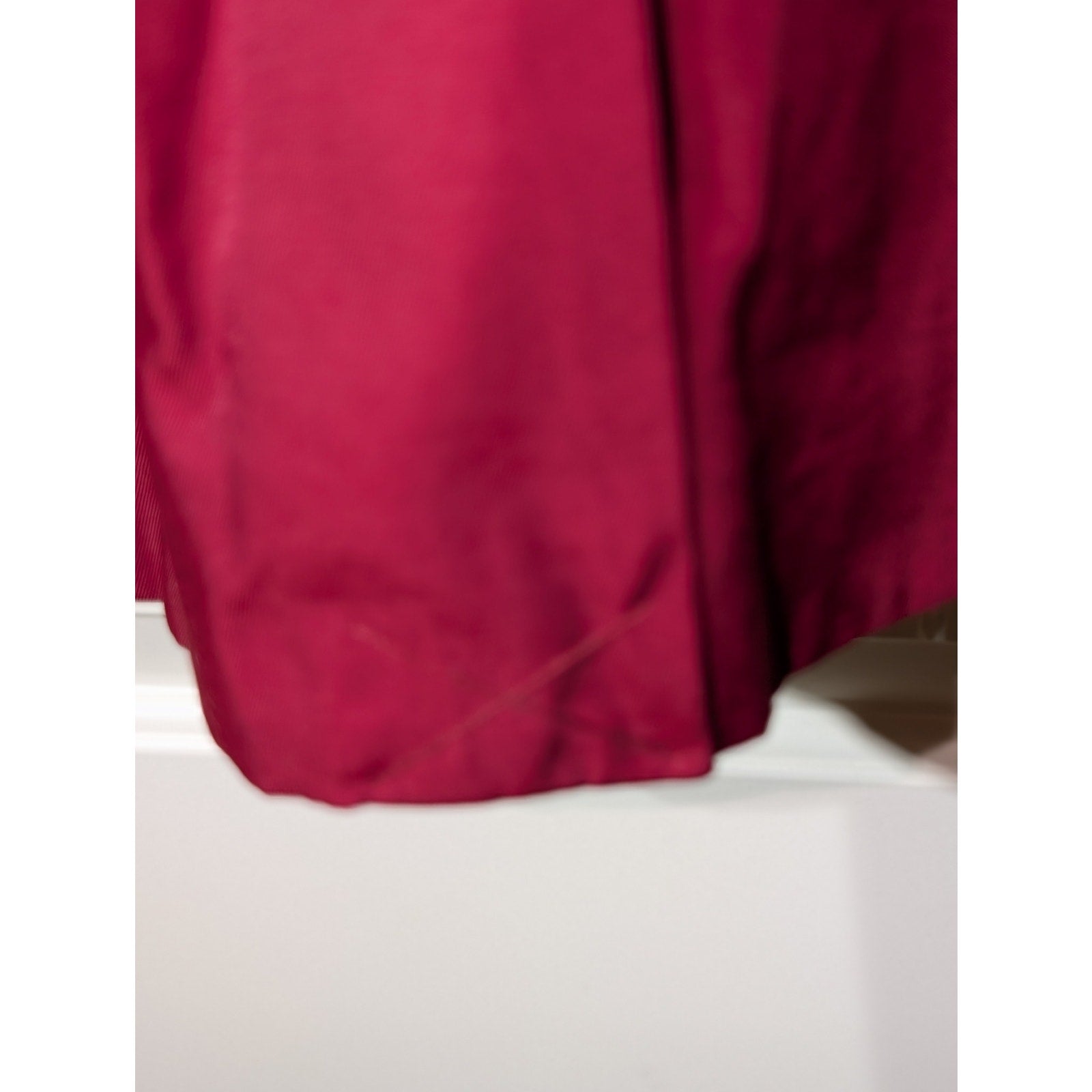 London Fog Double Collar Red Removable Hood Belted Classic Trench Coat Womens' Sz M. Pre-owned, this red trench coat is in excellent condition. Worn once. Back kick pleat not cut yet. A good idea of color is seen in photos 3 and 4. It is a deeper red than what shows up in the other photos. Measures approximately 33" long.