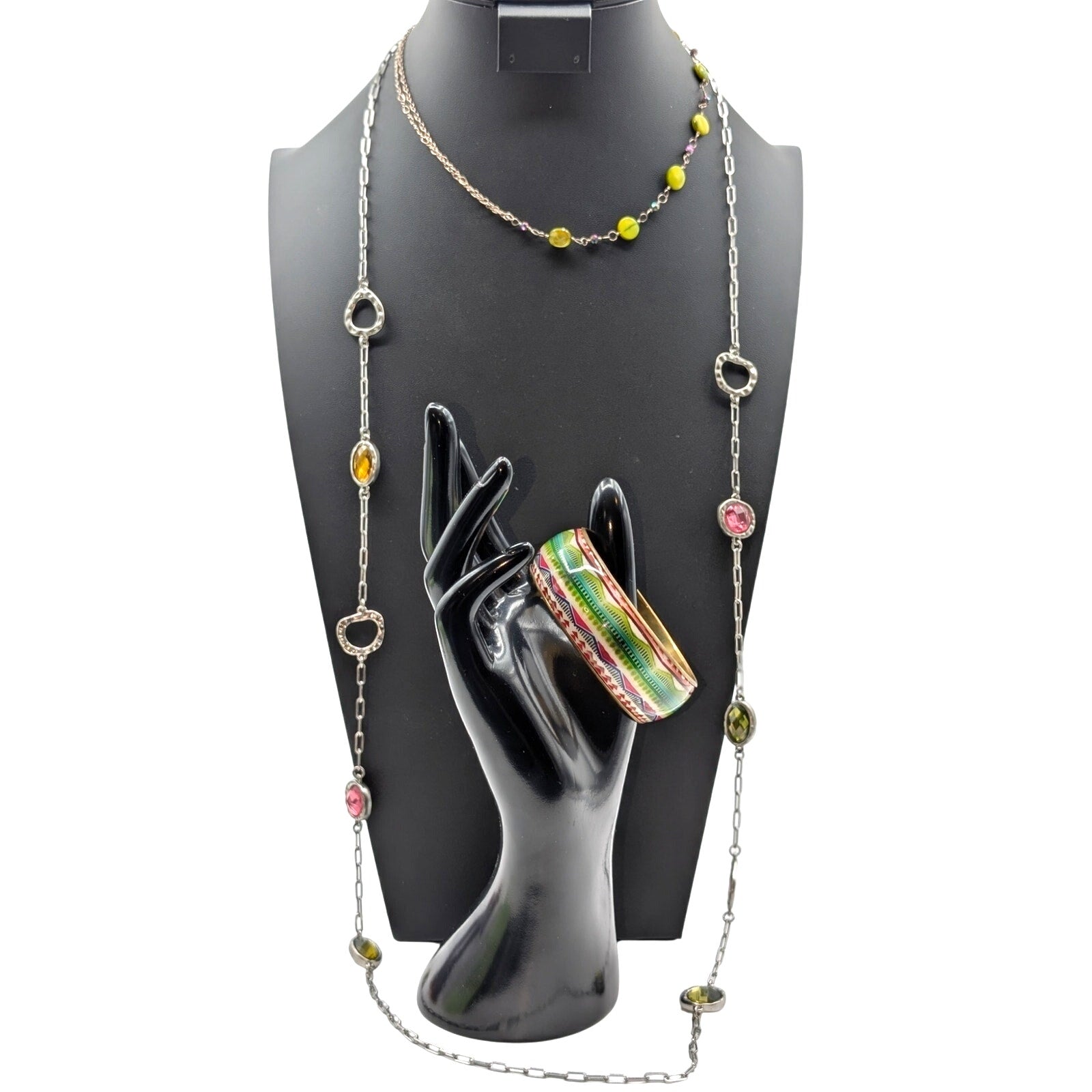 Long Lia Sophia & 925 Sterling Shell Necklaces & Colorful Brass Bangle Bracelet