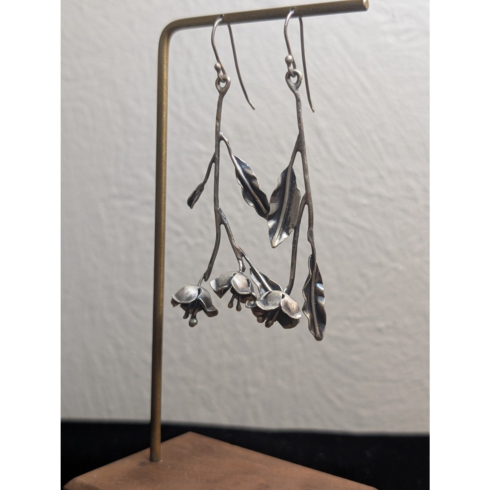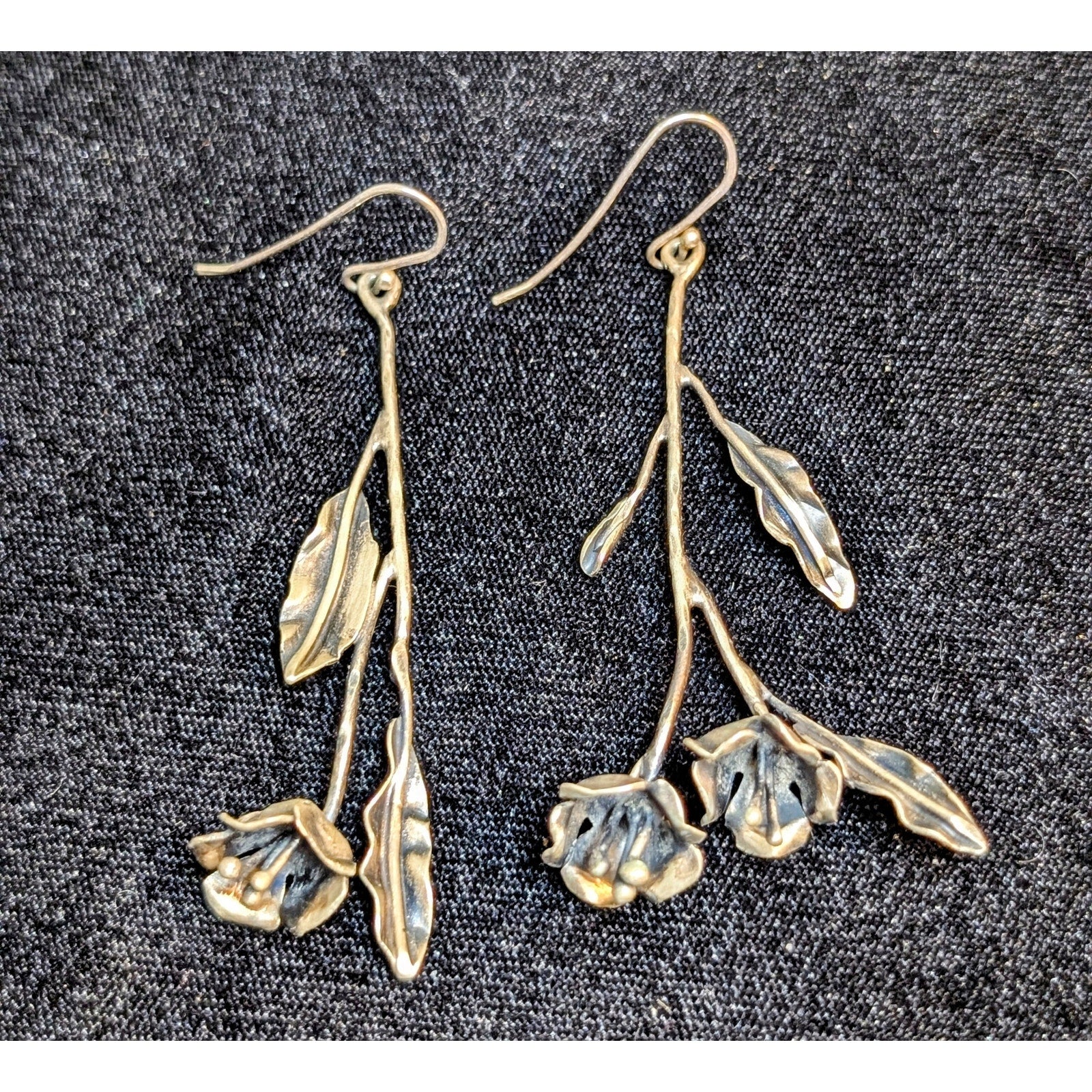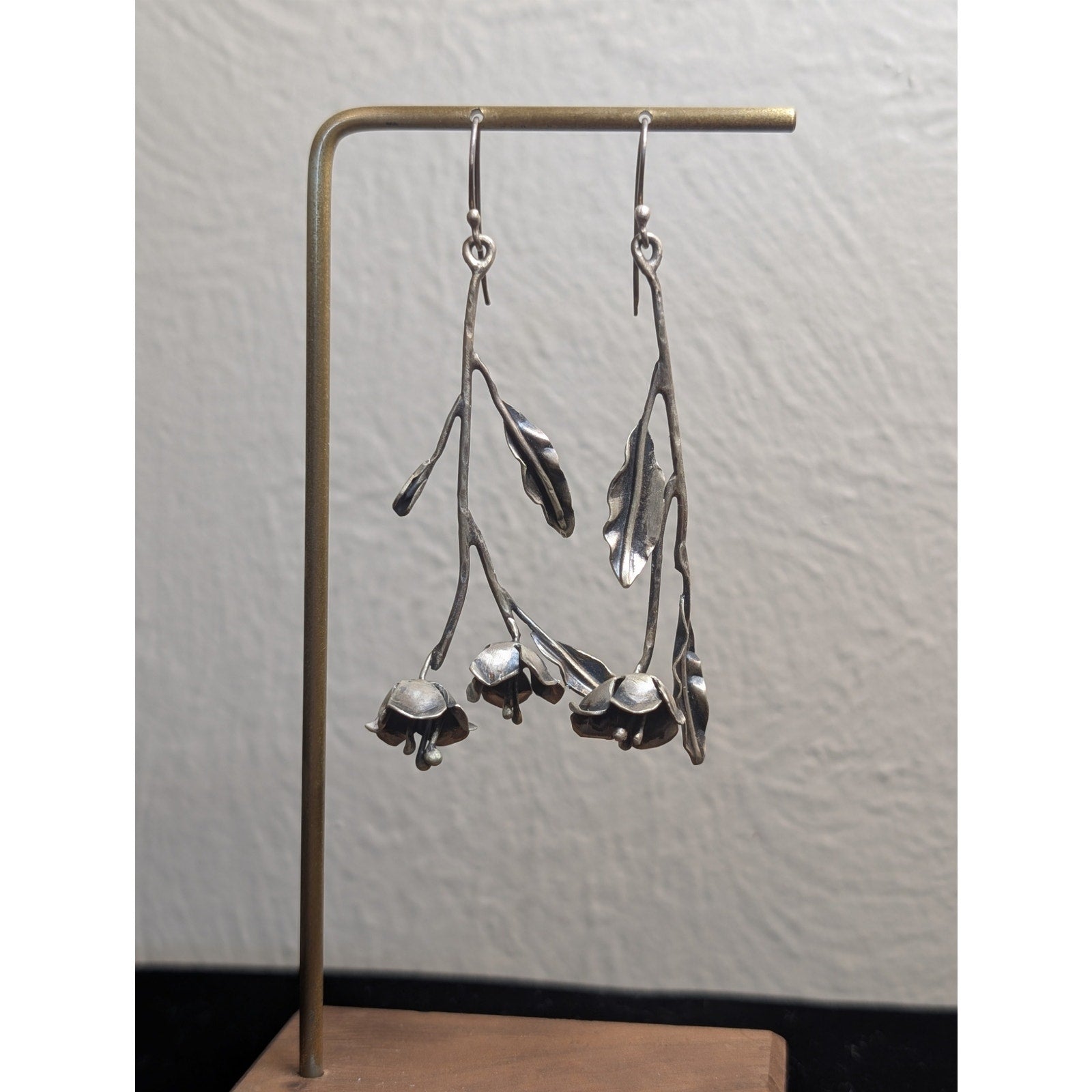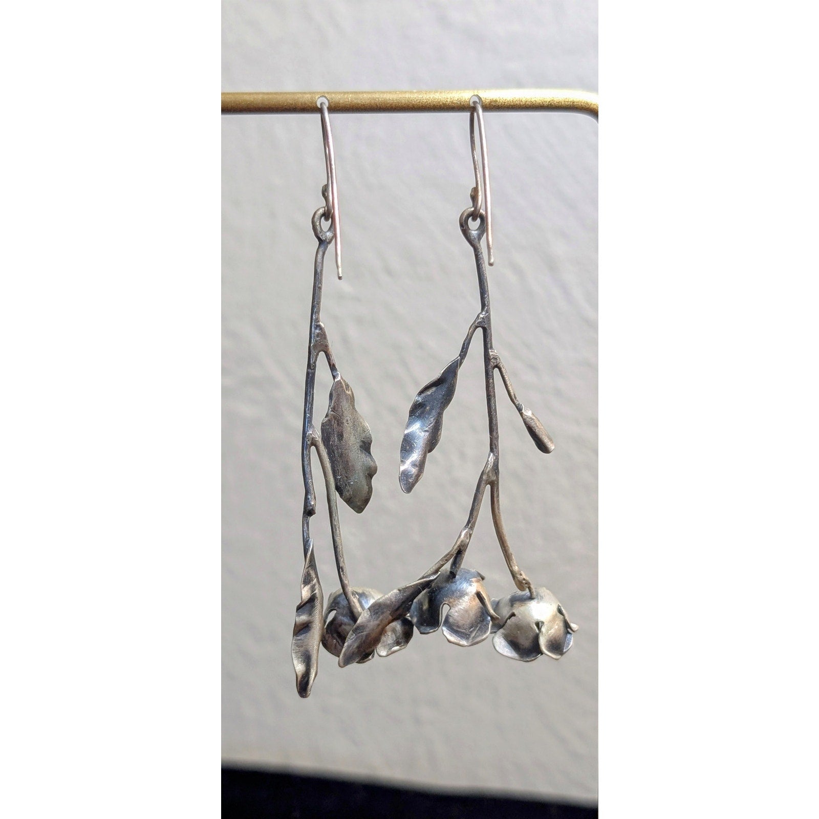 Long Stem Flower Artisan Designed Argentium Sterling Earrings