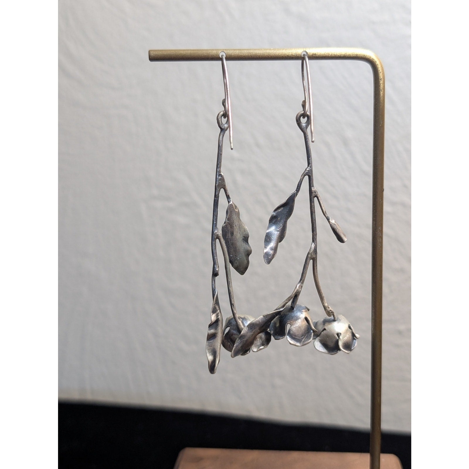 Long Stem Flower Artisan Designed Argentium Sterling Earrings. Pre-owned, these earrings are in excellent condition. . One earring has two flowers and the other has one stem. Designed to be as unique as the one who wears them.