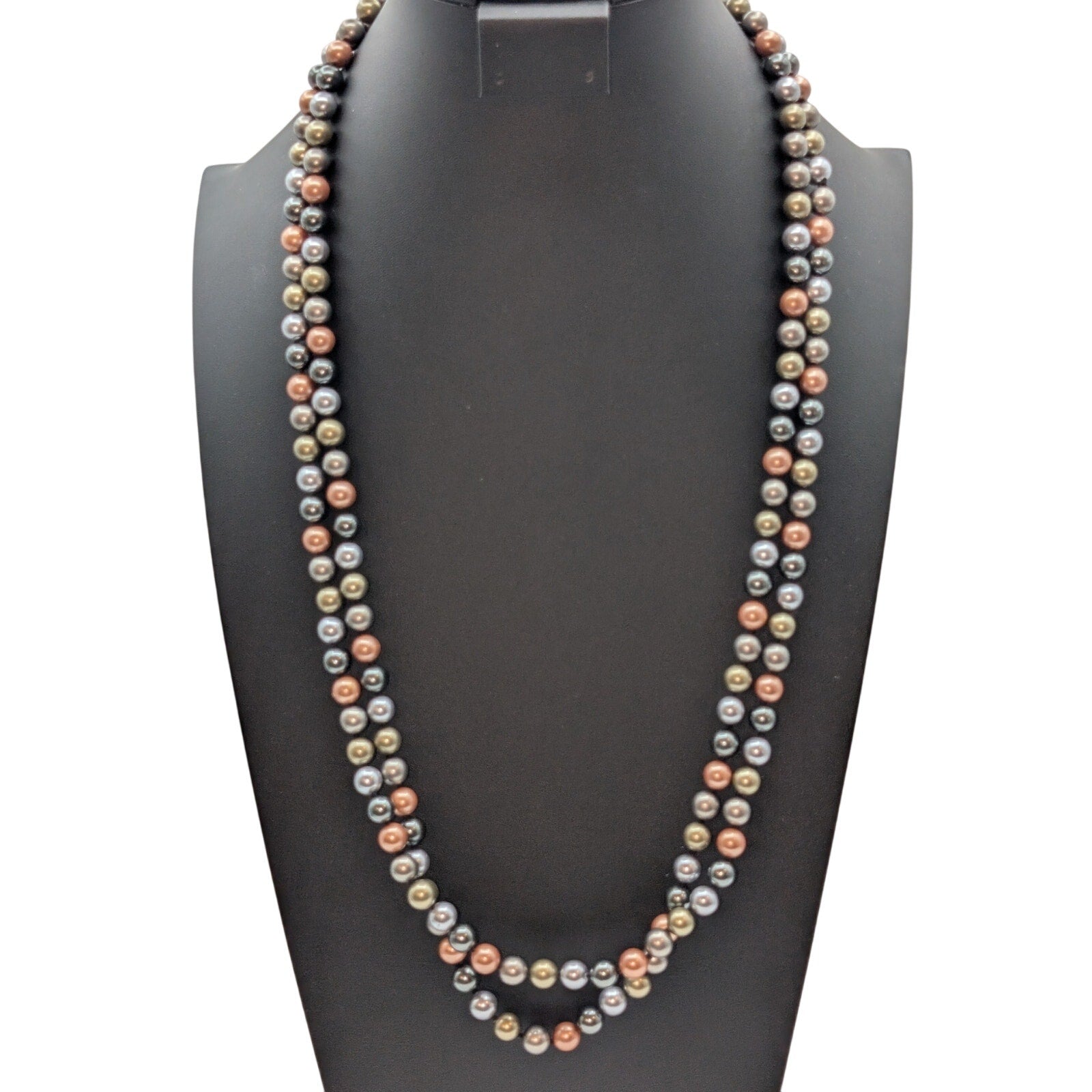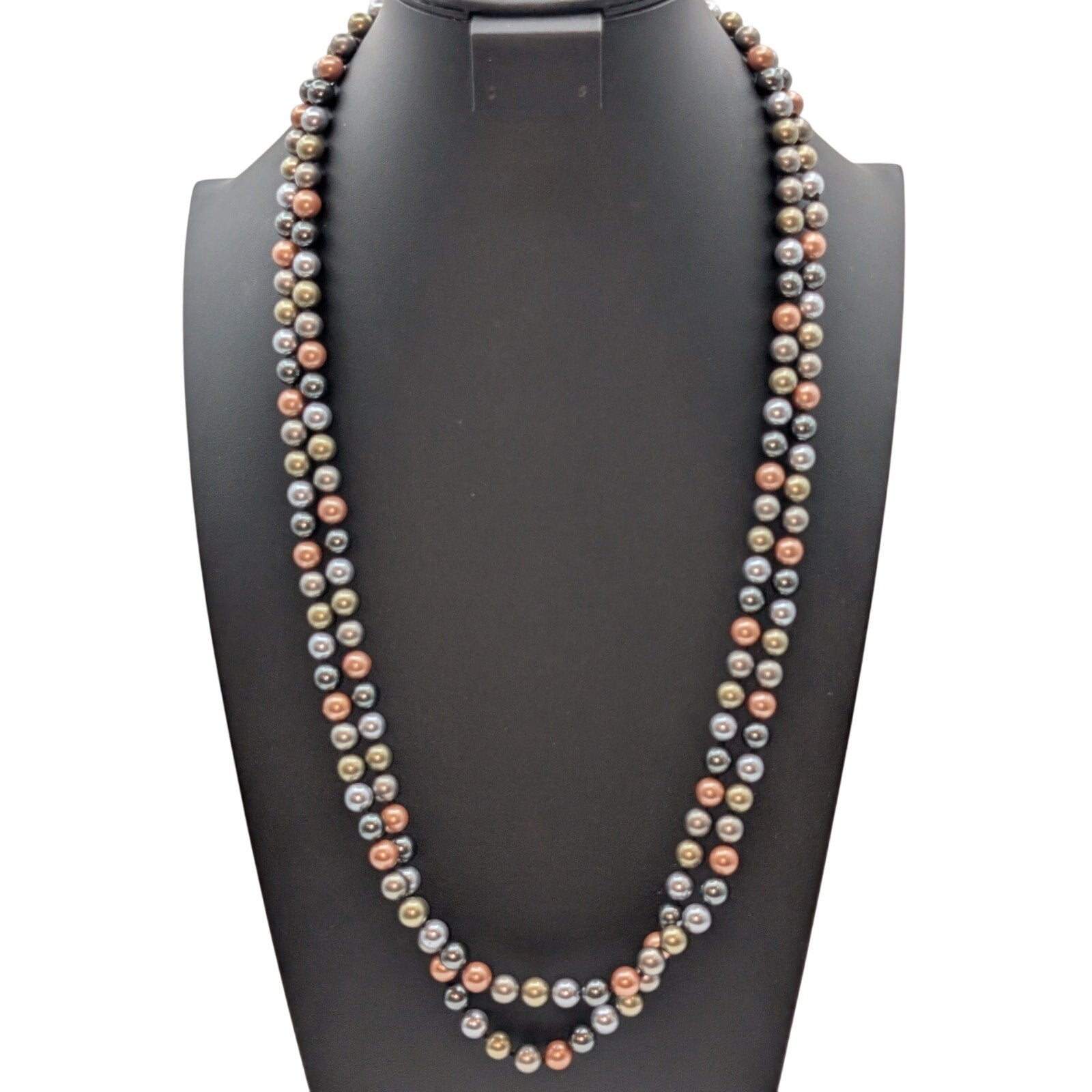 Long Strand Multi-Color Hand Knotted Glass Pearl Approximately 60" Necklace