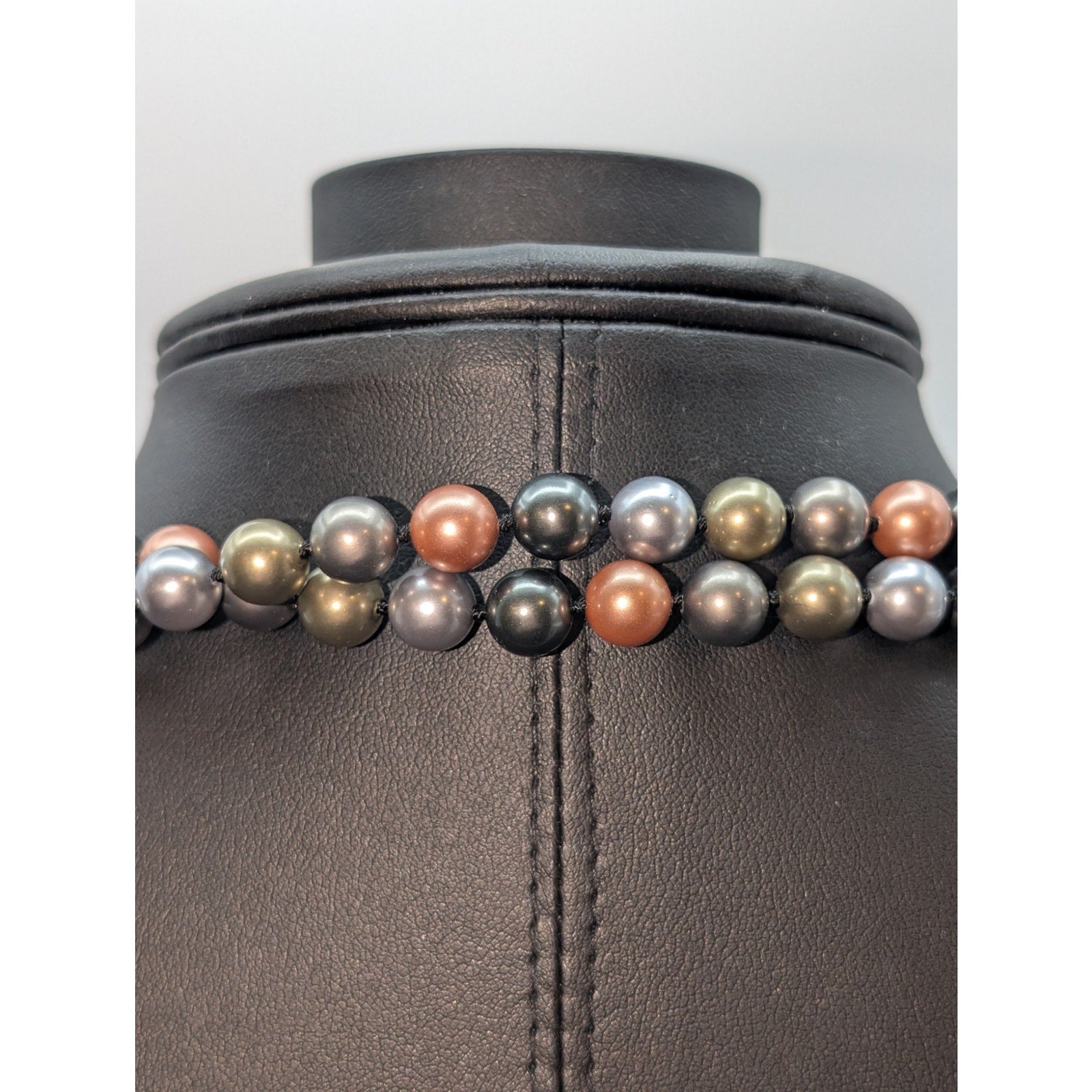 Long Strand Multi-Color Hand Knotted Glass Pearl Approximately 60" Necklace. Pre-owned, this necklace is in excellent condition.