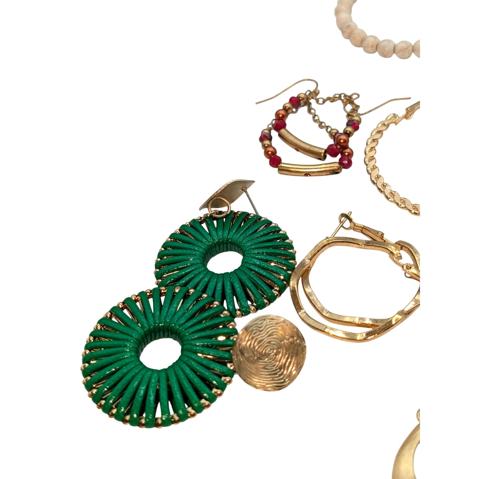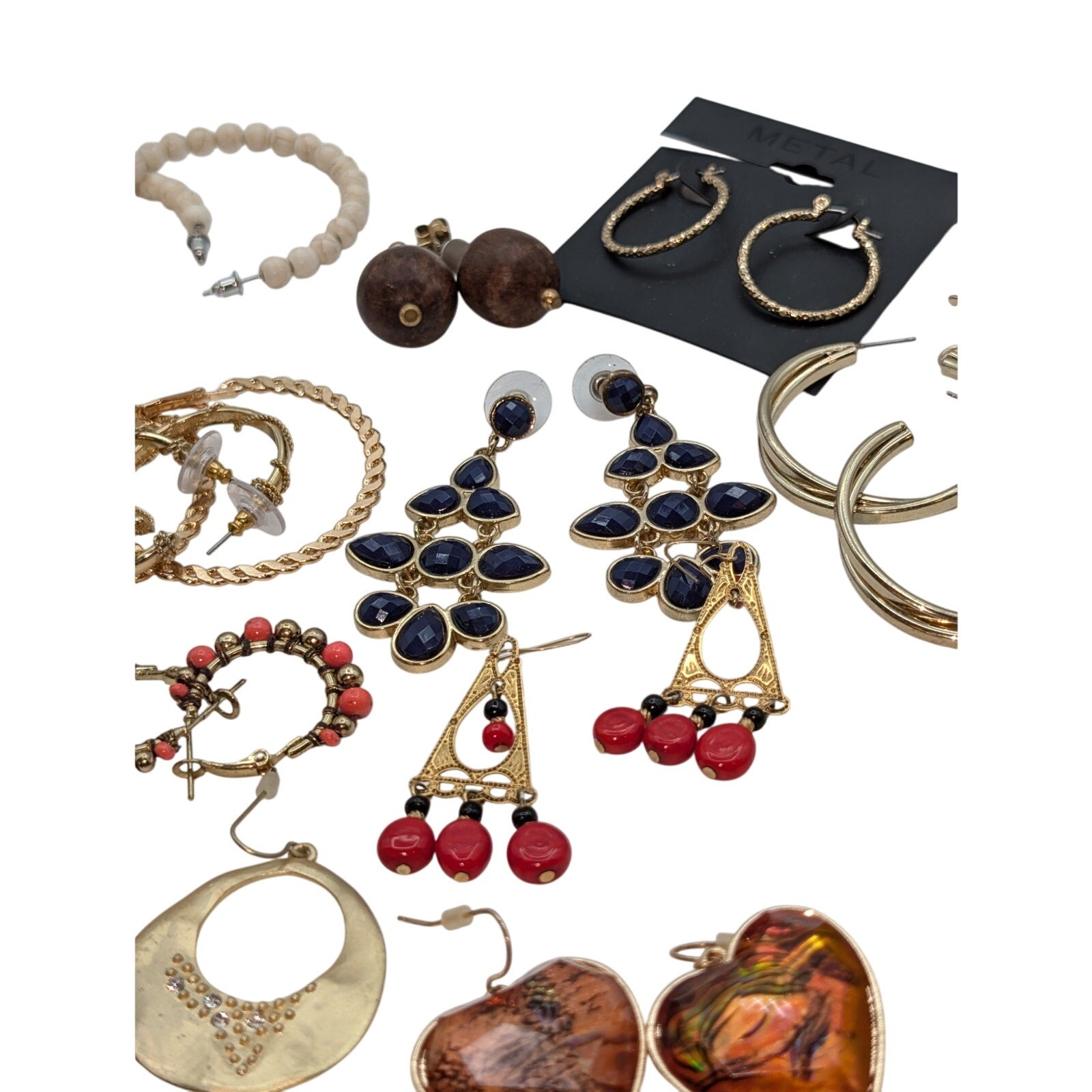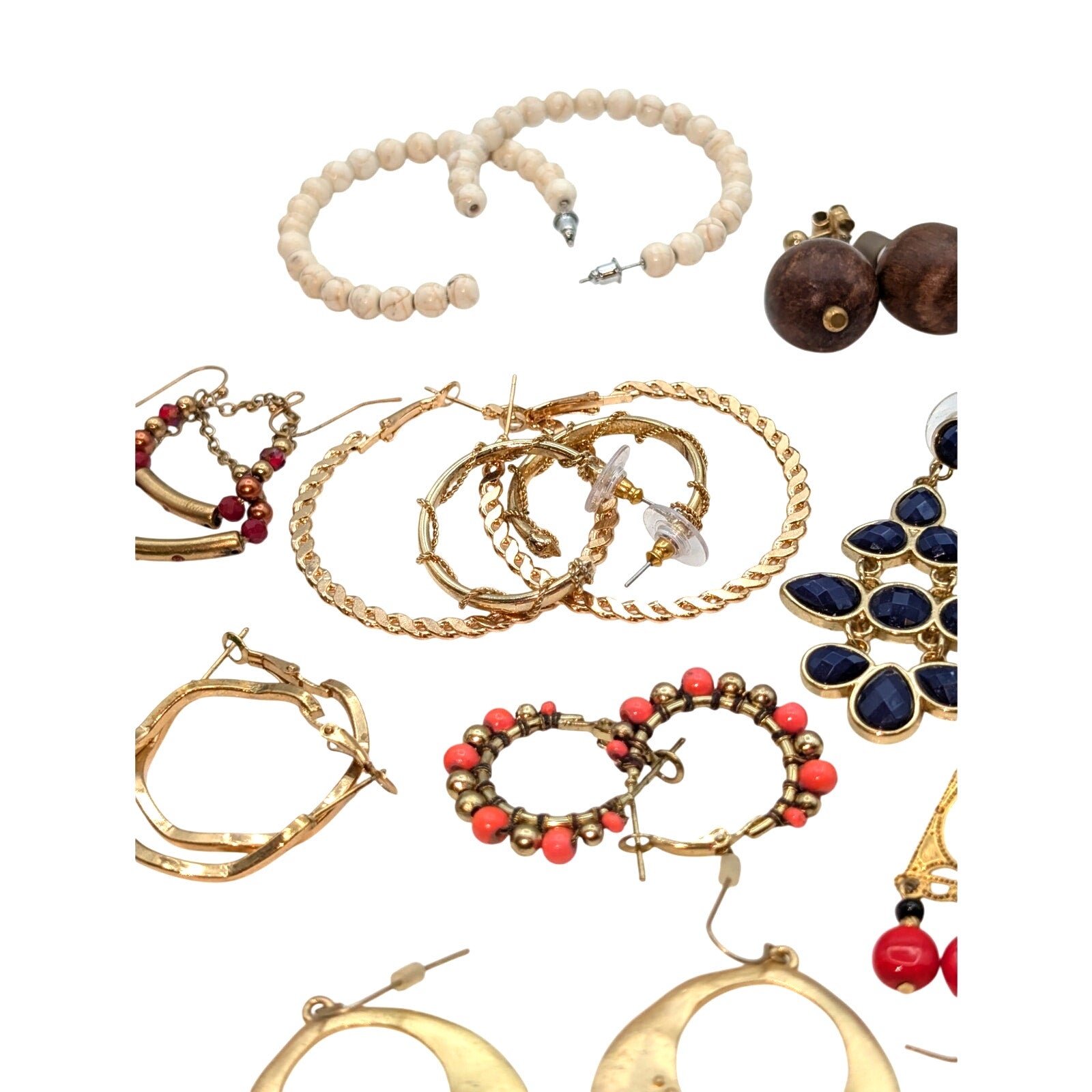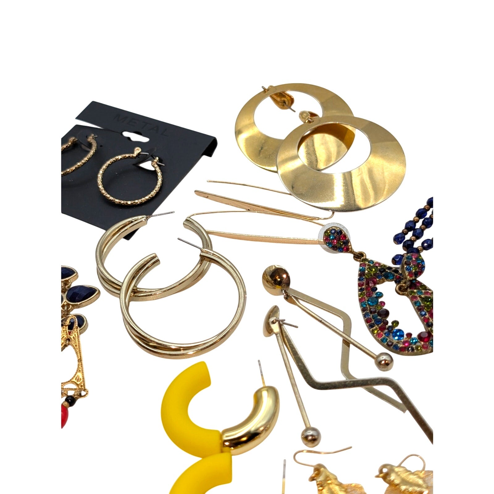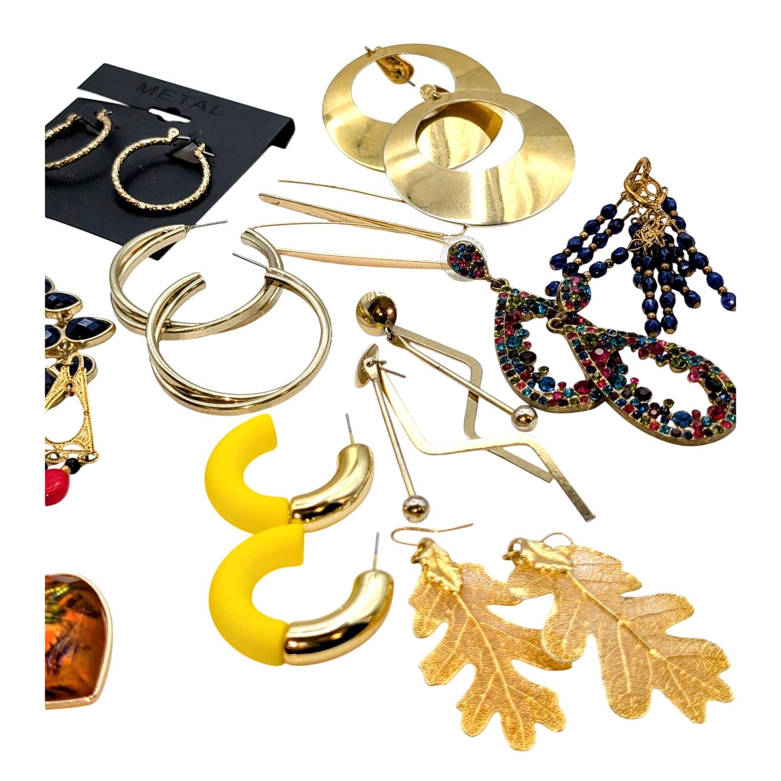 Lot of 21 Pair of Boho Gold Tone Pierced Earrings. Pre-owned, this lot of earrings is in various conditions and being sold as is. The items chosen for my lots are items I previously had set aside to sell but decided to lot up due to a high volume of inventory. All wearable.