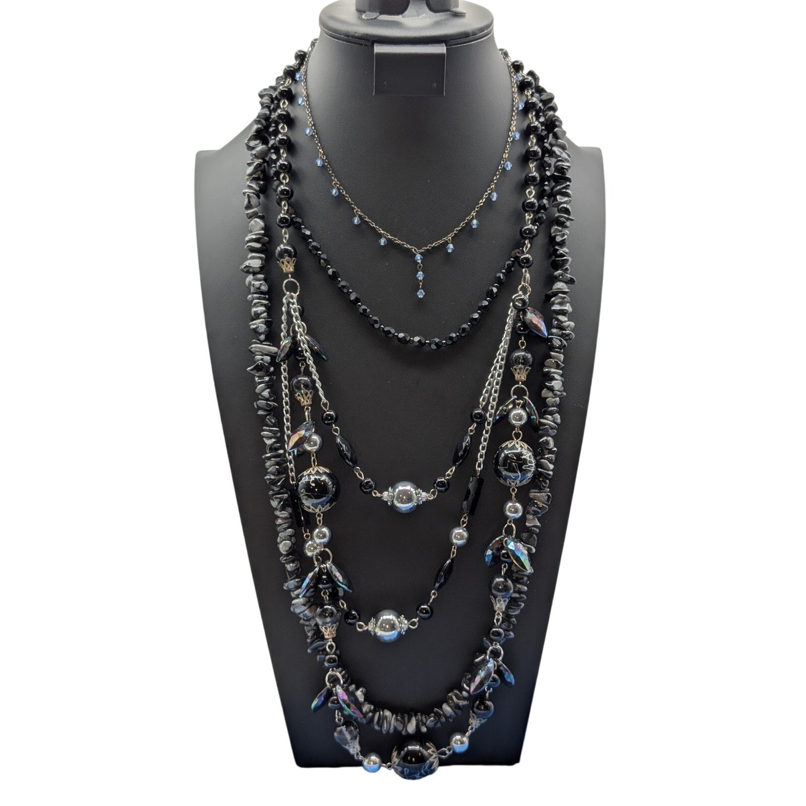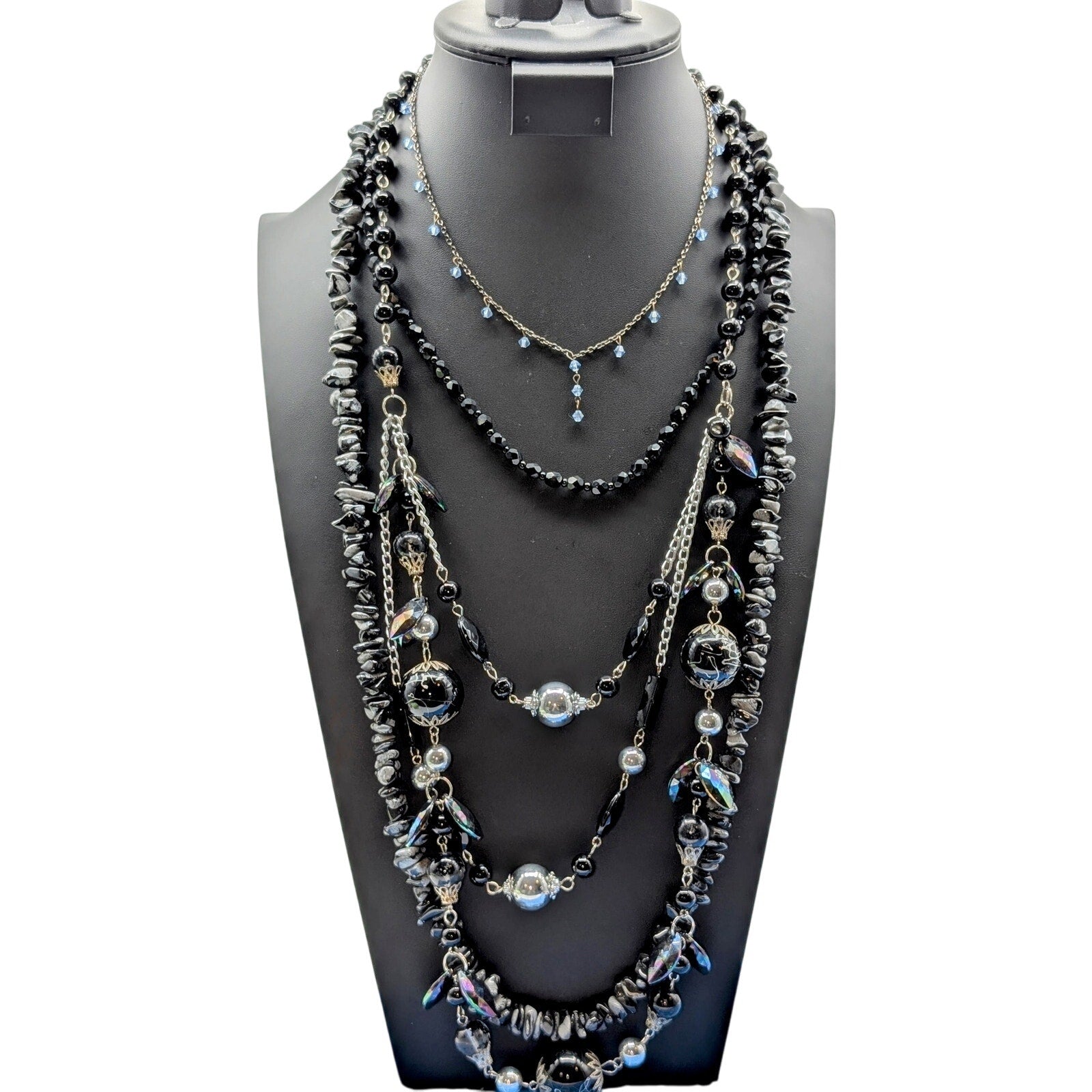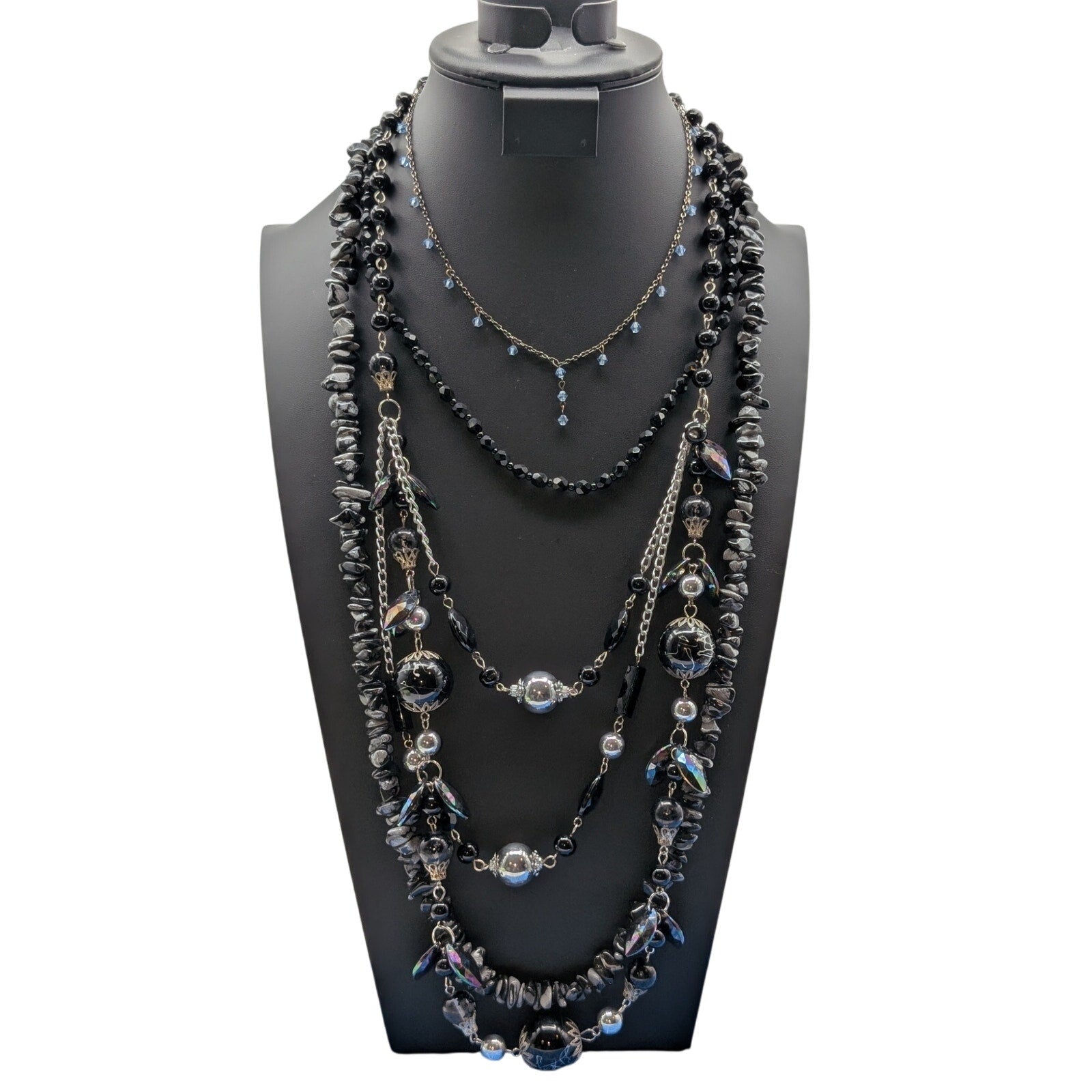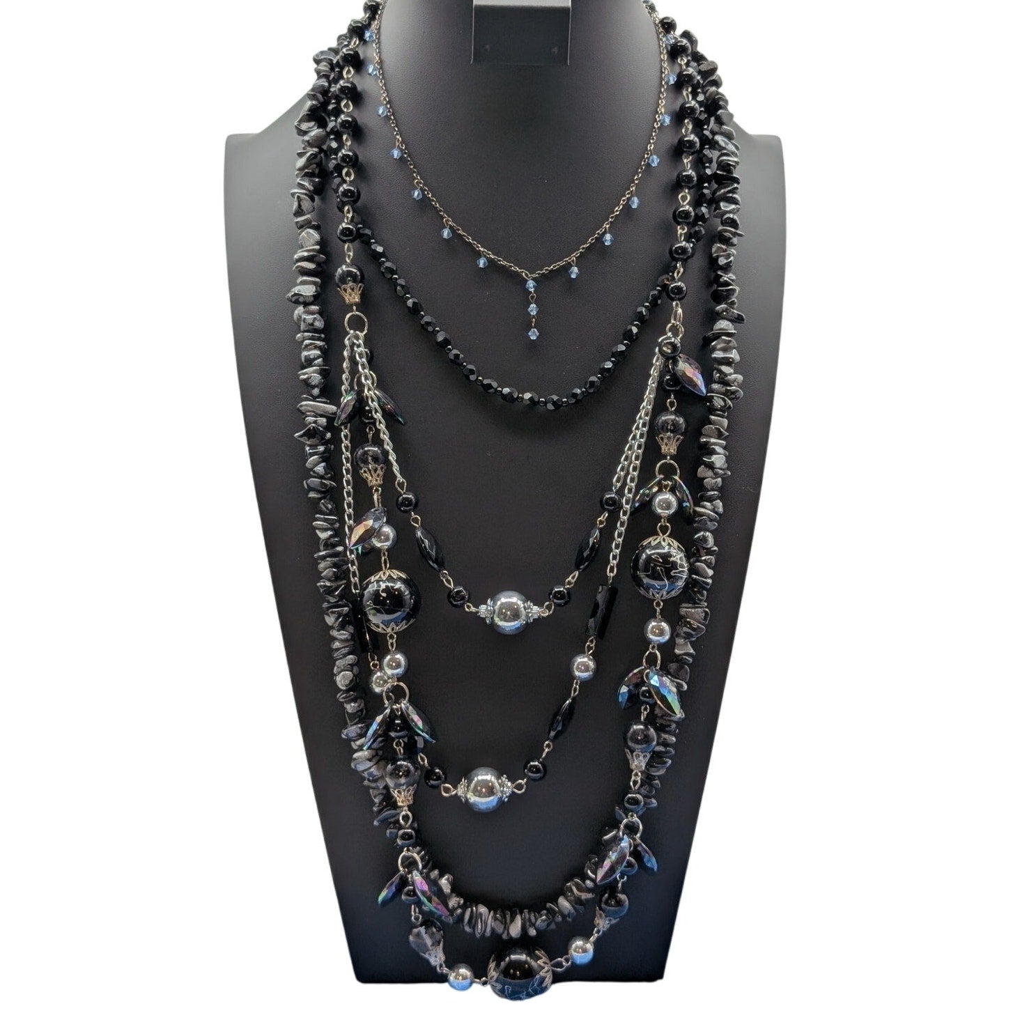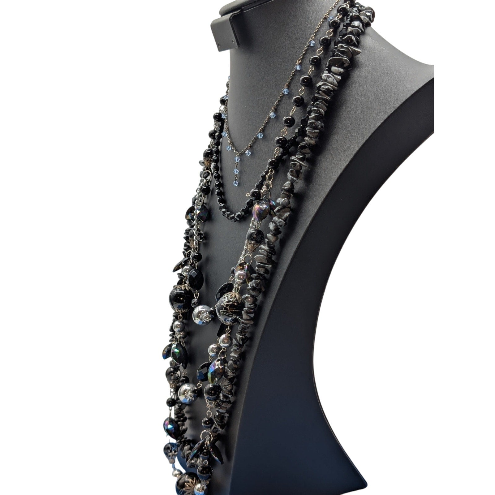 Lot of 4 Black Gray Silver Tone Stone Glass Crystal & Acrylic Beaded Necklaces. Pre-owned, these necklaces are in excellent condition. Layer, wear separately or mix and match with other pieces in your jewelry wardrobe for all kinds of different looks.