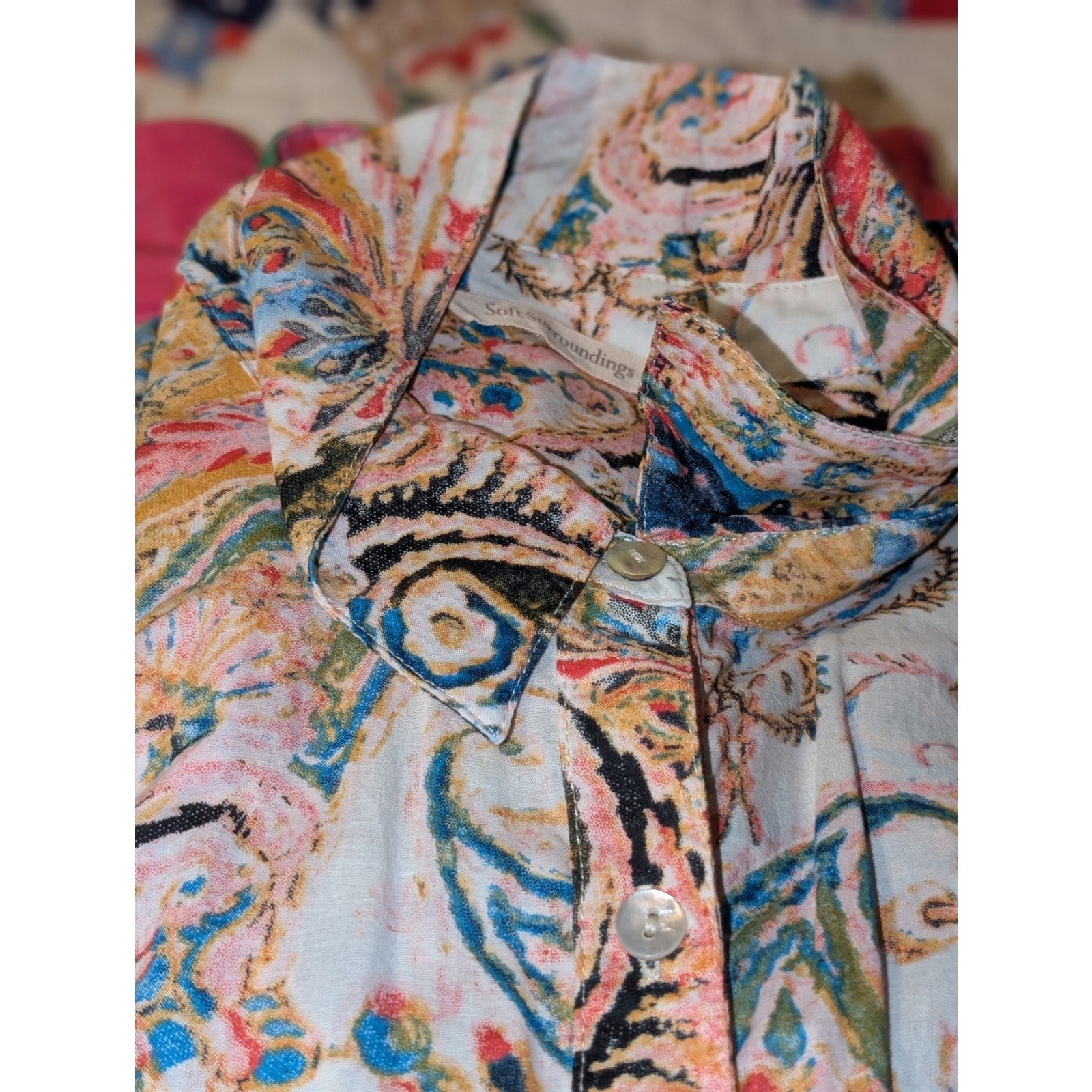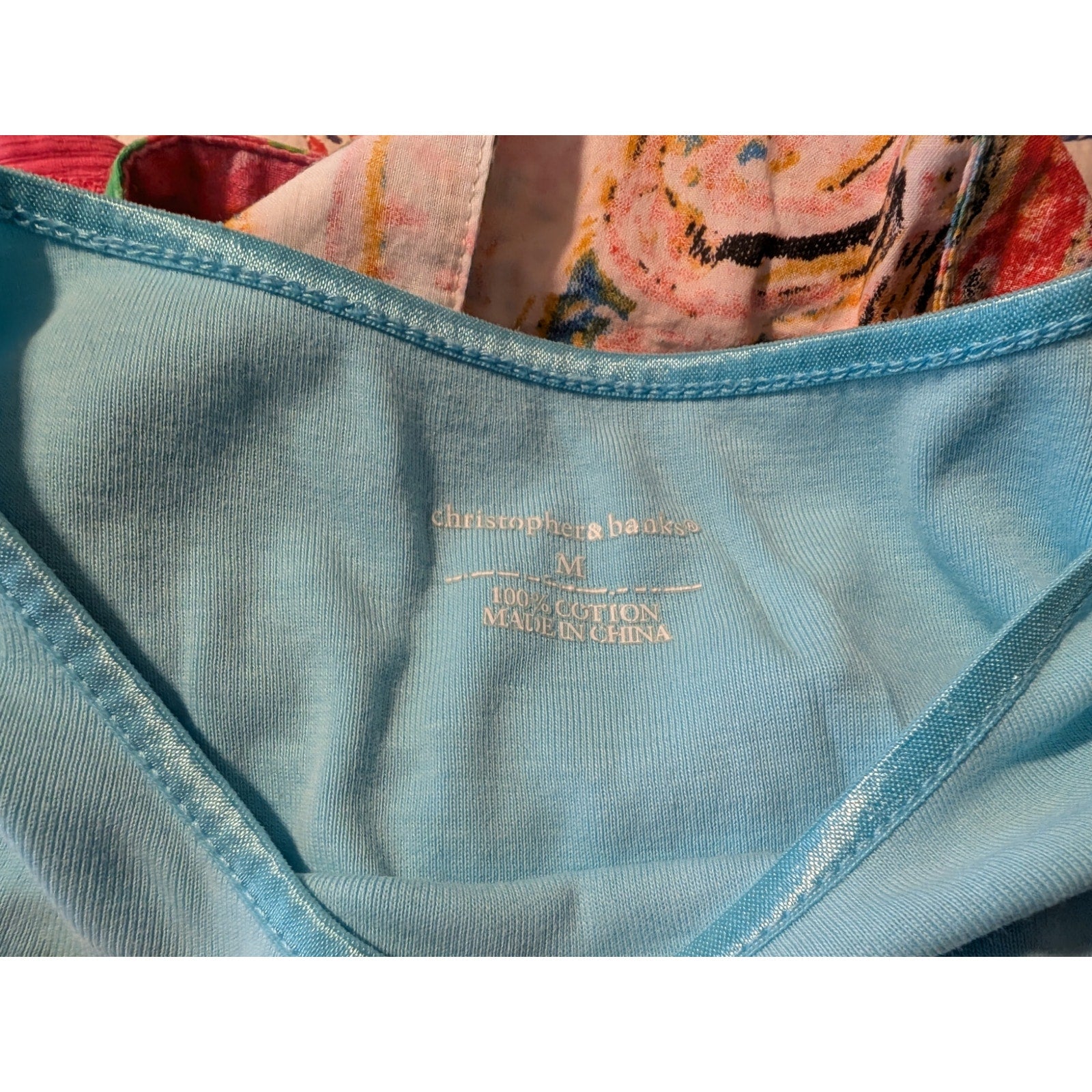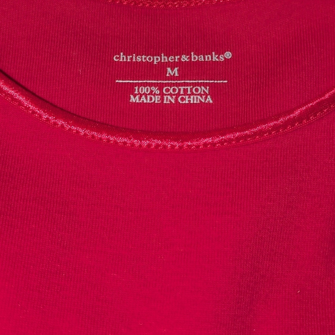 Lot of 6 Pink Red Blue T-Shirts Zip Track Jacket & Button Up Shirts. All from the same lady. Pre-owned, these shirts are in good condition. Christopher Banks, T by Talbots, Soft Surroundings. Jacket is Large Petite.