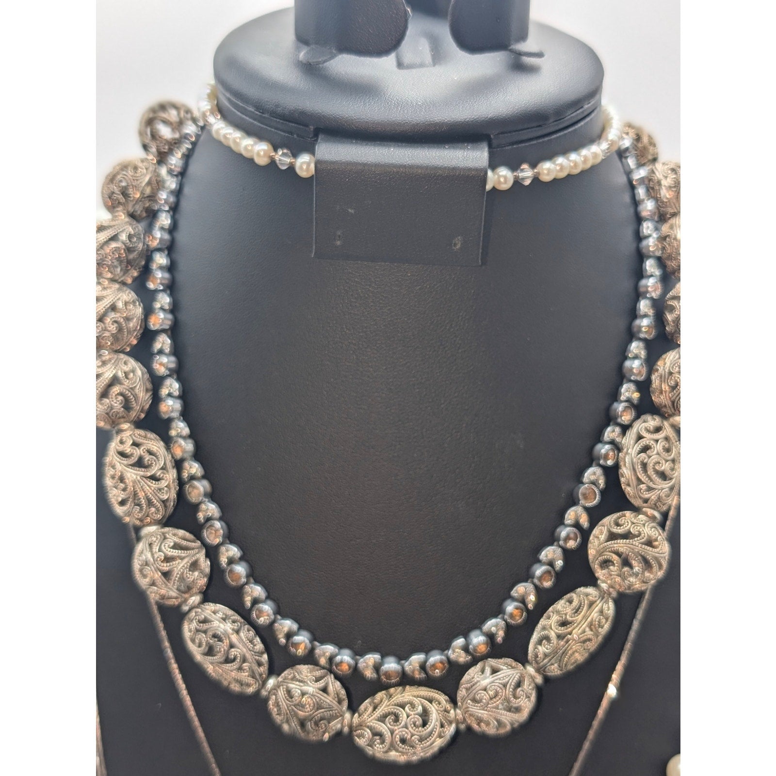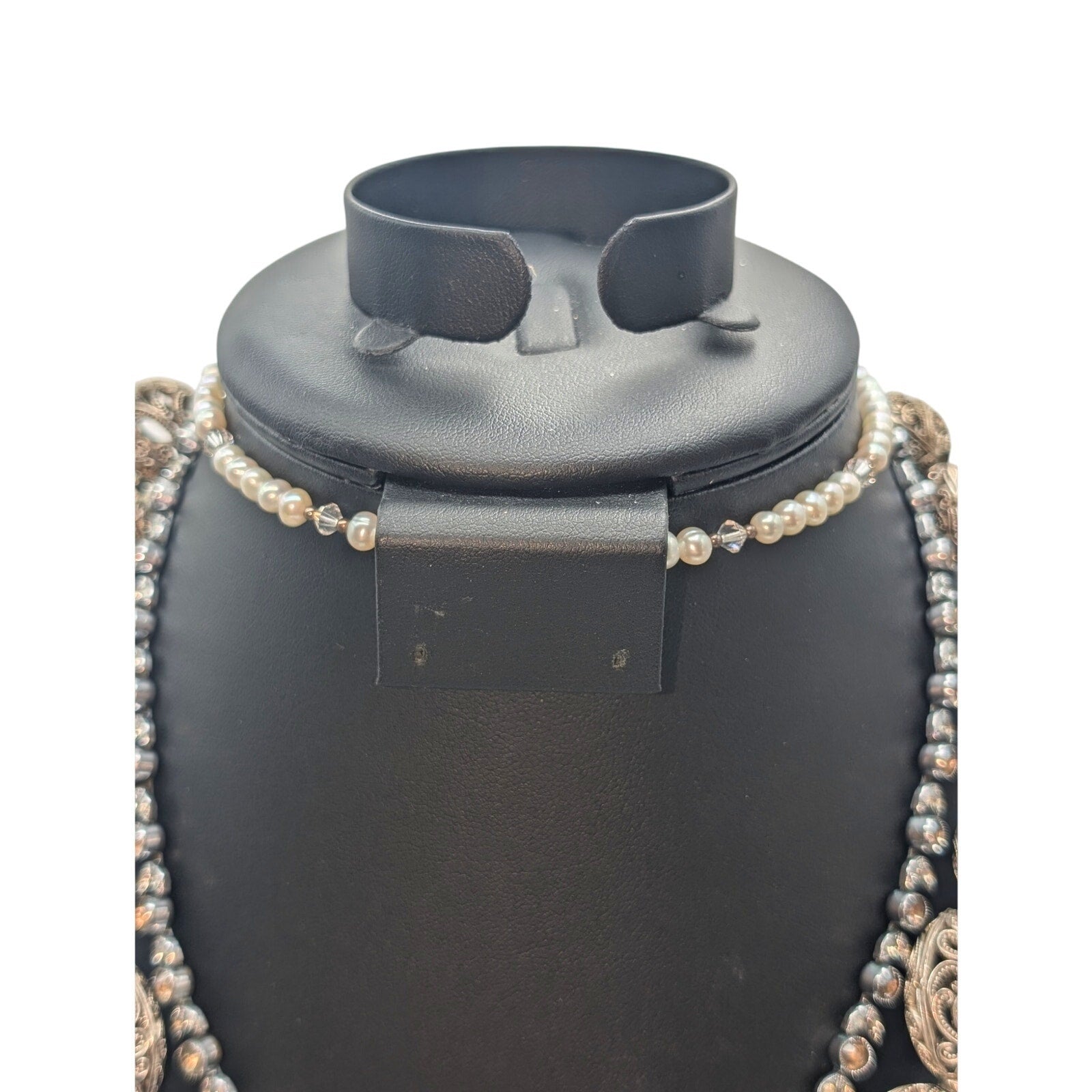 Lot of 9 Pcs of Faux Pearl Rhinestone Chain & Filigree Silver Tone Metal Jewelry