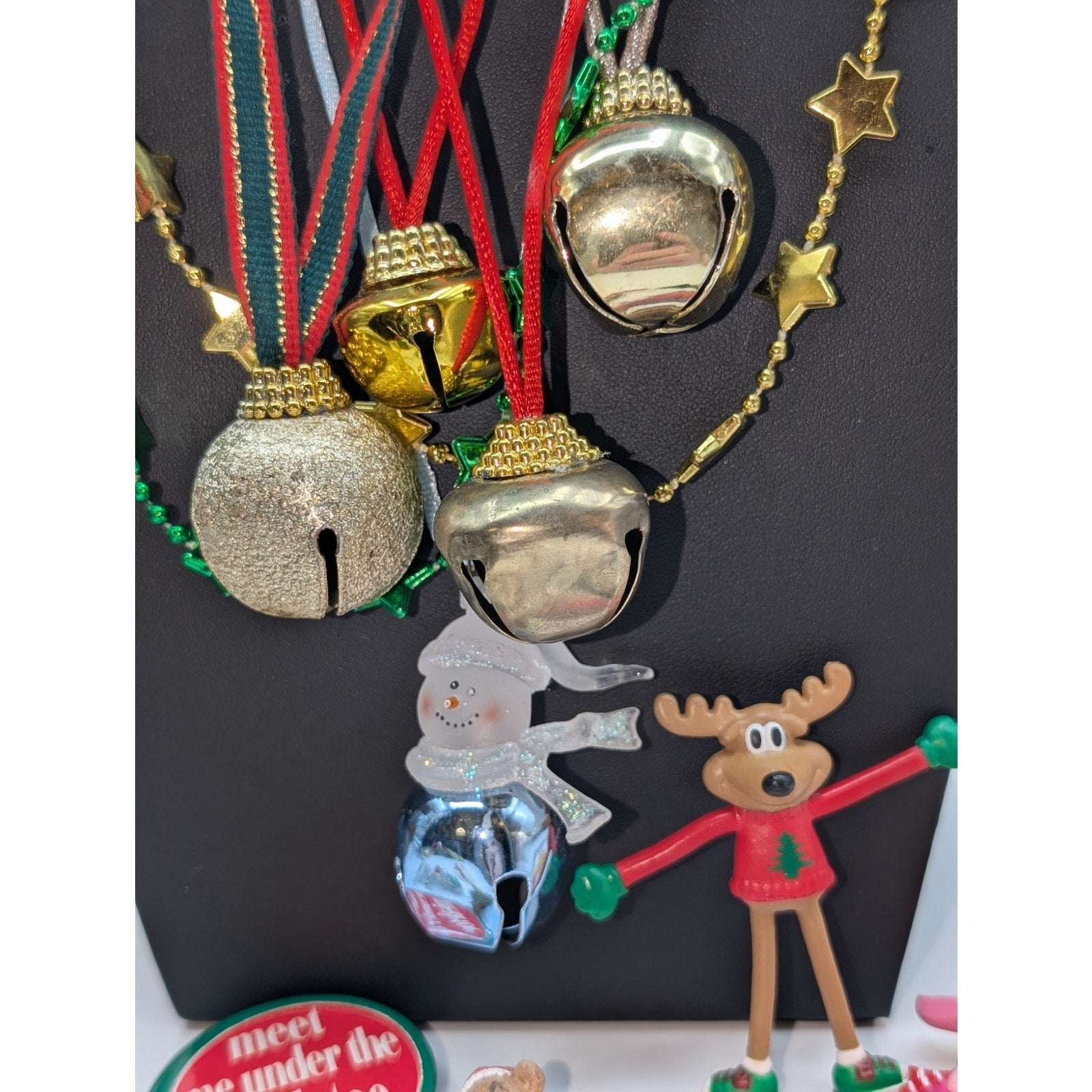 Lot of Christmas Fun Bells & Pins. Pre-owned, these Christmas pieces are in various conditions and being sold as is.