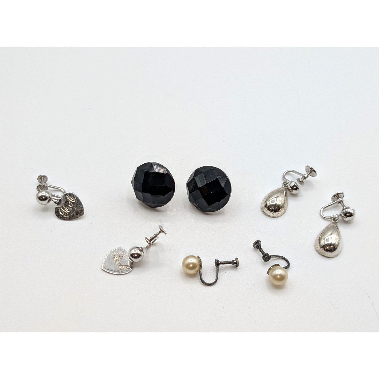 Lot of Four Pair Vintage Sterling Silver Screw Back Earrings Including Forstner. Pre-owned, this lot of four pair vintage sterling screw back earrings is in various conditions and is being sold as is.
