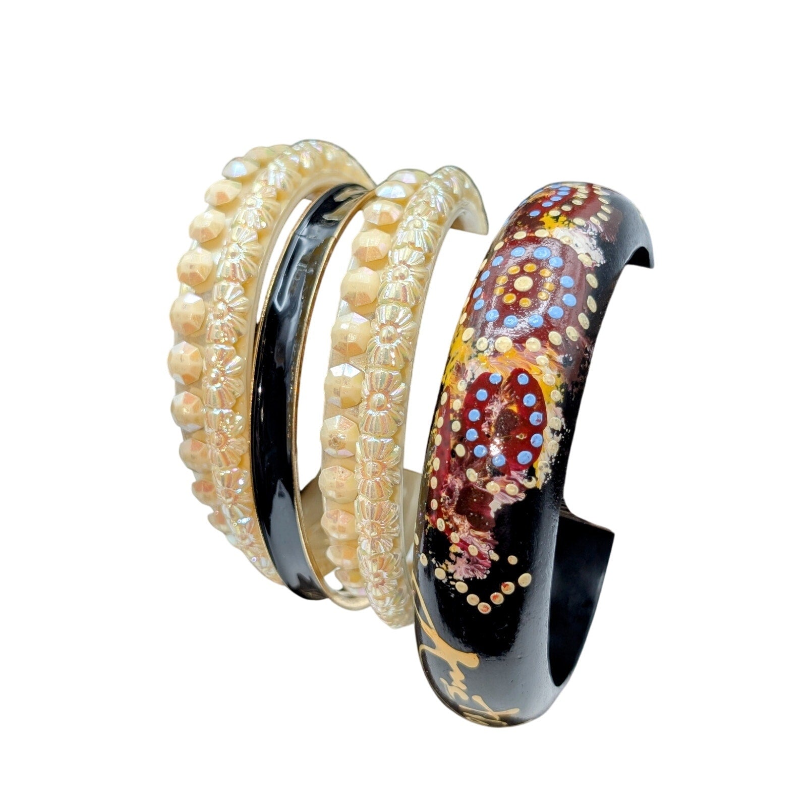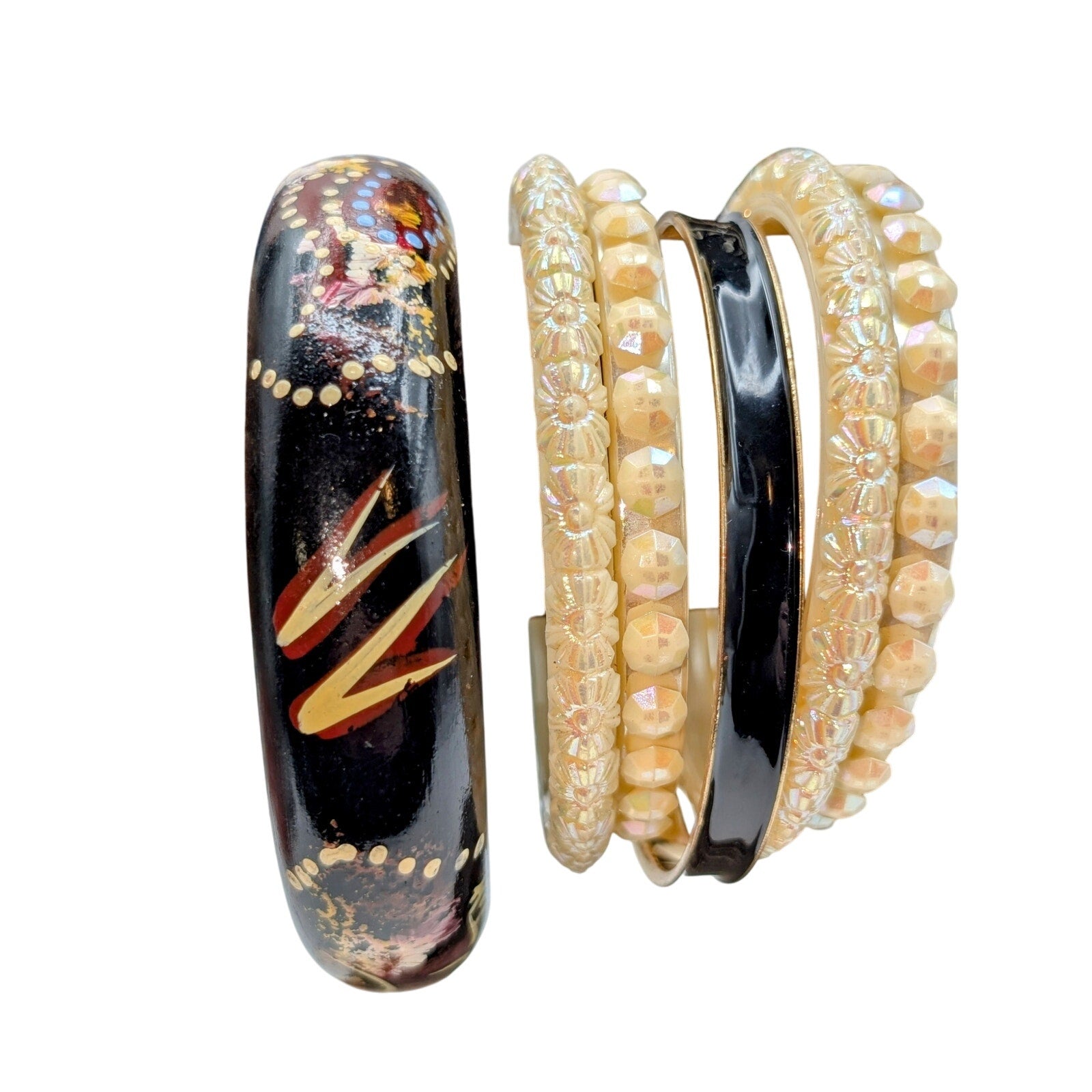 Lot of Ten Cream Black Jewelry Pieces -- Four Necklaces & Six Bracelets. Pre-owned, this lot of necklaces and bracelets is in various conditions and being sold as is. The items chosen for my lots are items I previously had set aside to sell but decided to lot up due to a high volume of inventory. Because they are lotted up and at a reduced price, I have not taken the time to clean them.