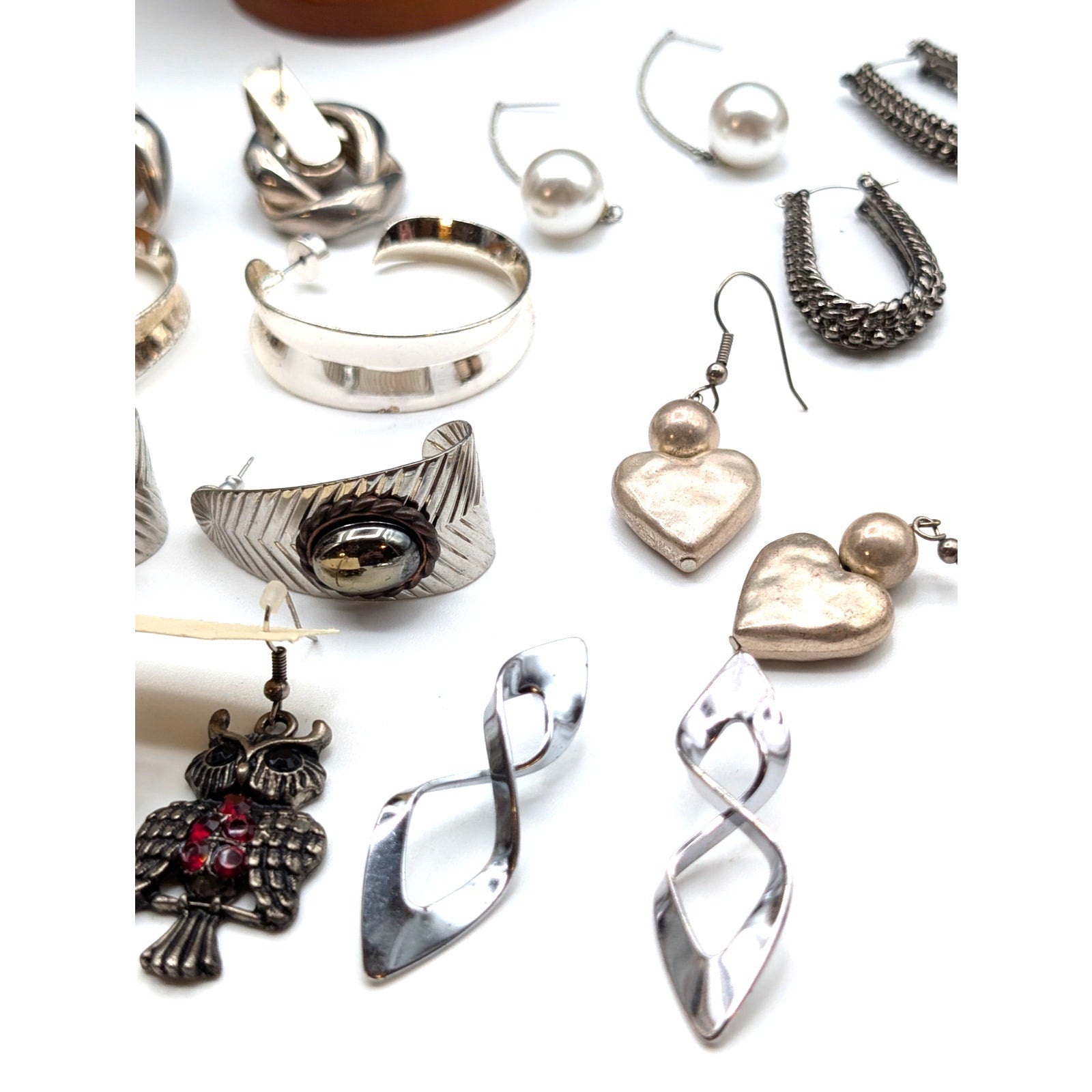 Lot of Ten Pair Silver Tone Pierced Earrings.Pre-owned, this lot of earrings is in various conditions and being sold as is. All wearable to excellent condition. The items chosen for my lots are items I previously had set aside to sell but decided to lot up due to a high volume of inventory. Because they are lotted up and at a reduced price, I have not taken the time to clean them or closely inspect them.
