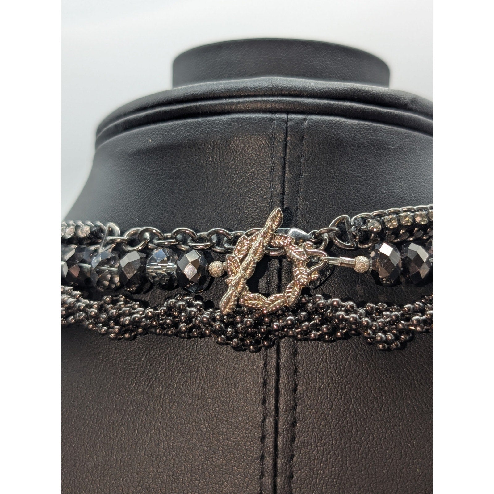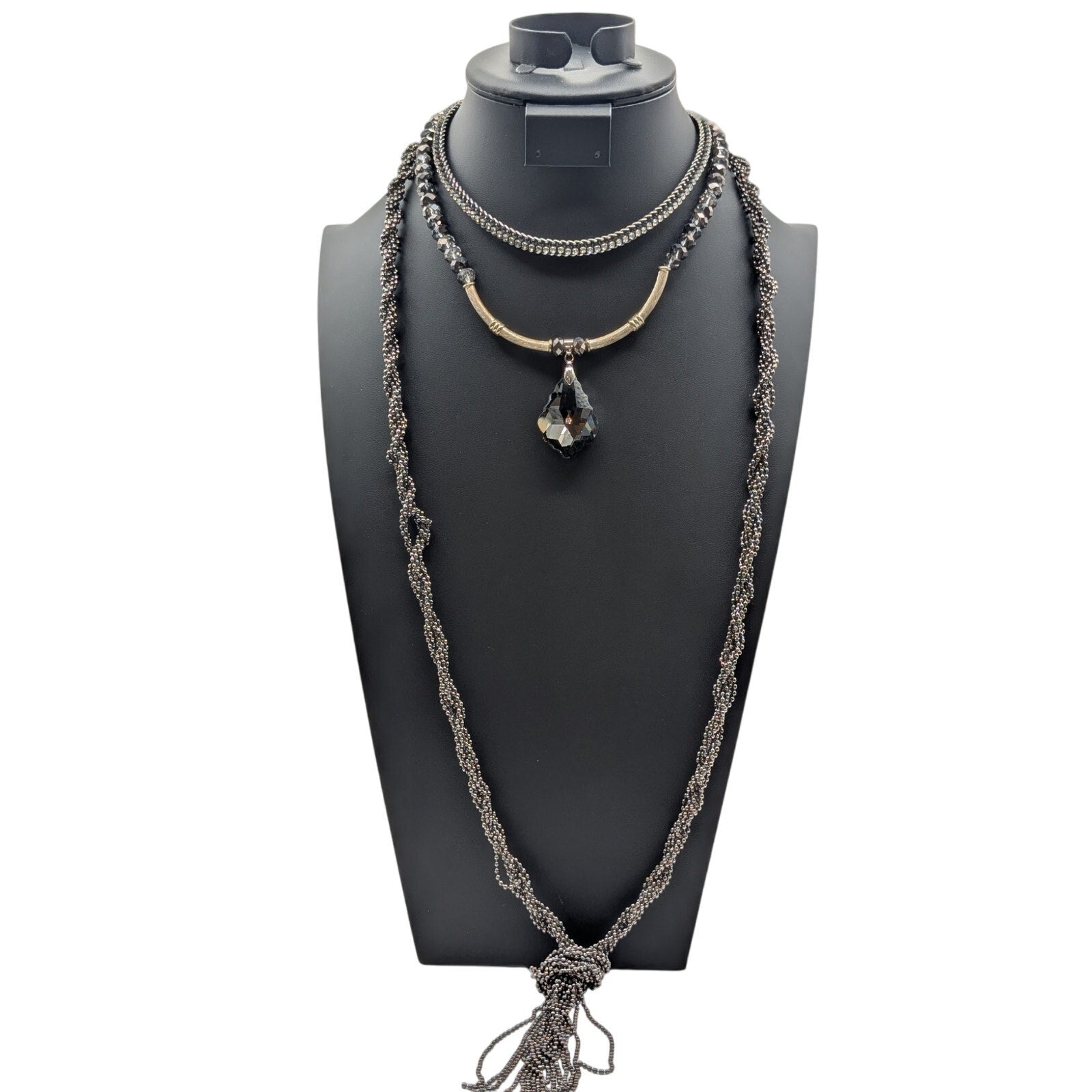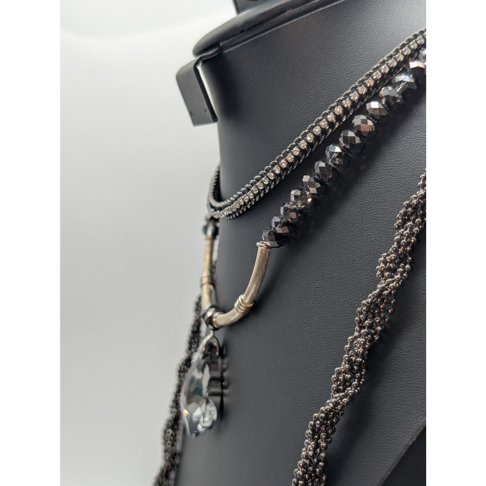 Lot of Three Crystal Bead & Pendant Rhinestone Twisted Metallic Bead Necklaces