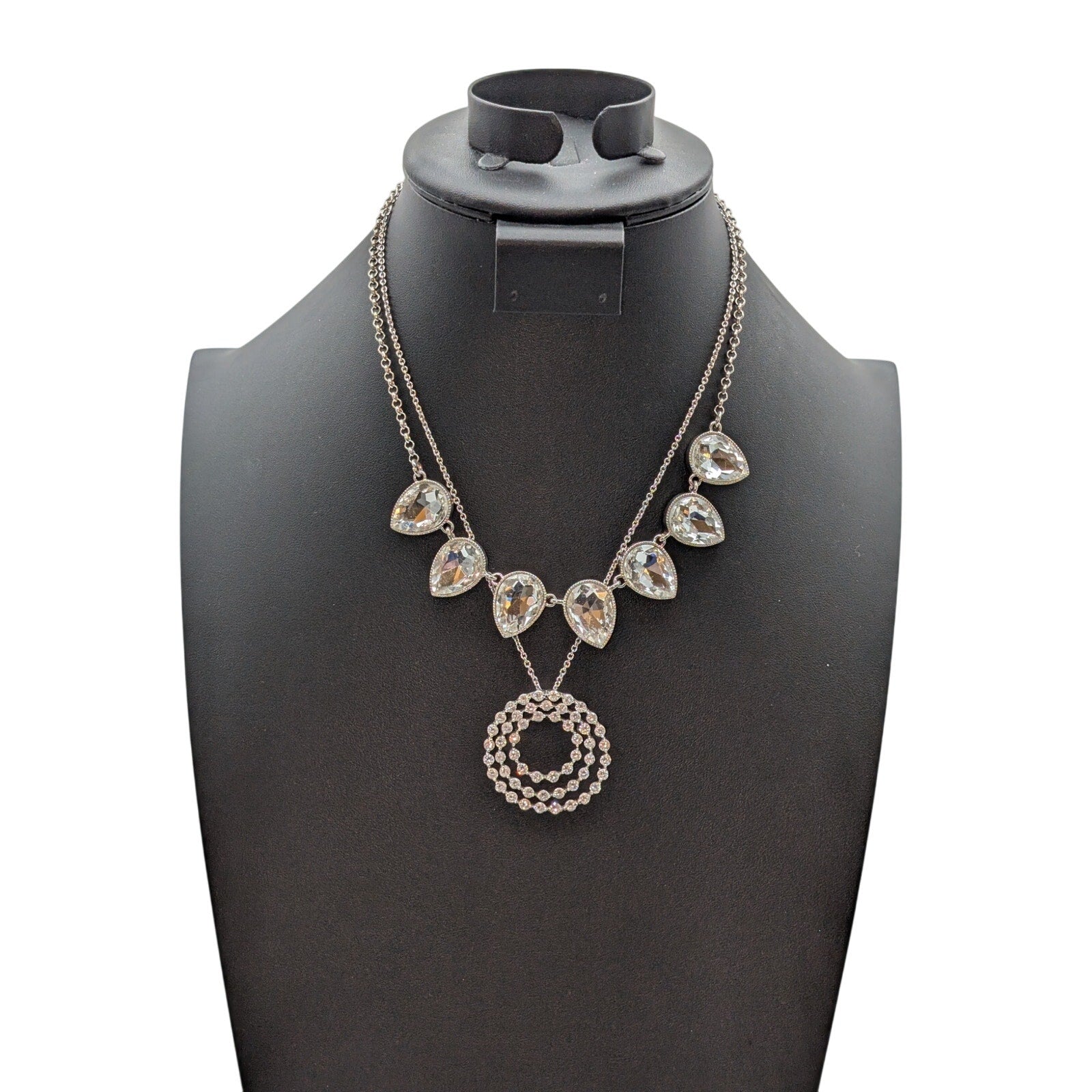 Lot of Three Faux Pearl Rhinestone Silver Tone Necklaces To Layer or Wear Alone. Pre-owned, these necklaces are in various conditions and being sold as is. All wearable.