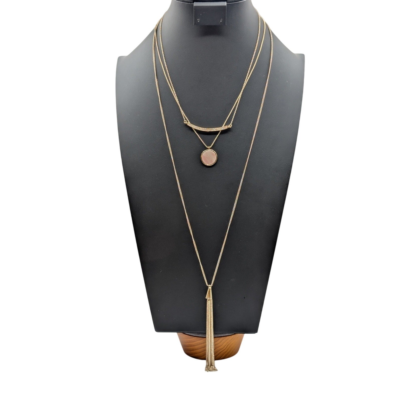 Lot of Three Gold Tone Layered Necklaces. Pre-owned, these necklaces are in excellent condition. From Banana Republic, Loft and Demdaco.