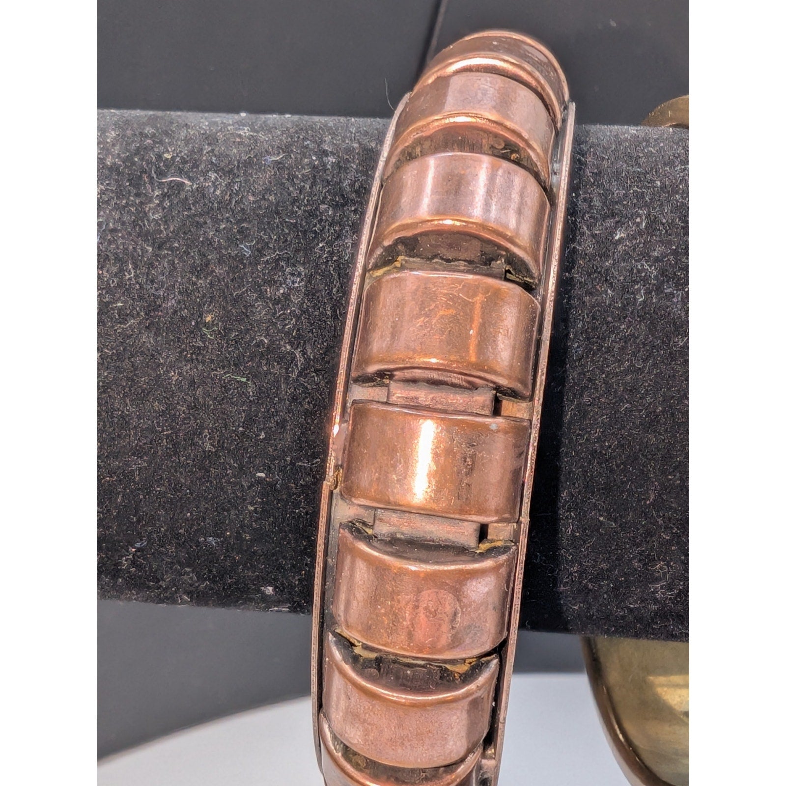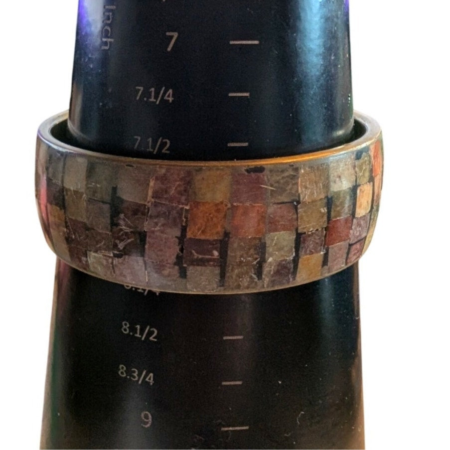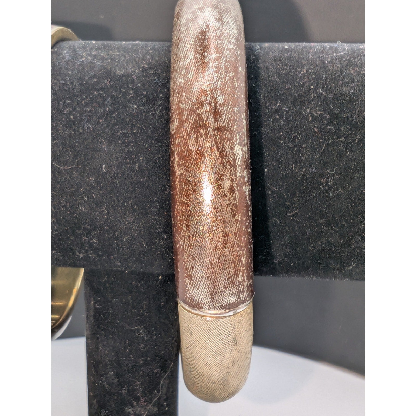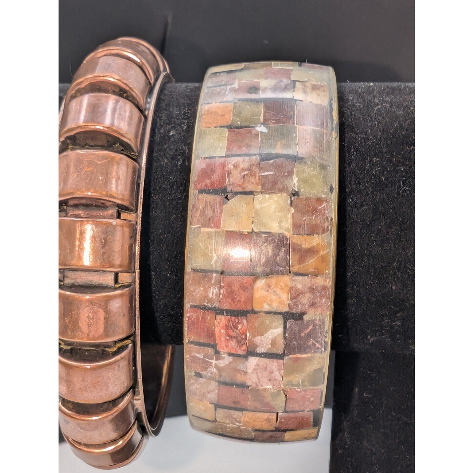 Lot of Three Vintage Metal Stone Inlay Bangle Bracelets. Pre-owned, these bangle bracelets are in various conditions and being sold as is. (All wearable to excellent.)