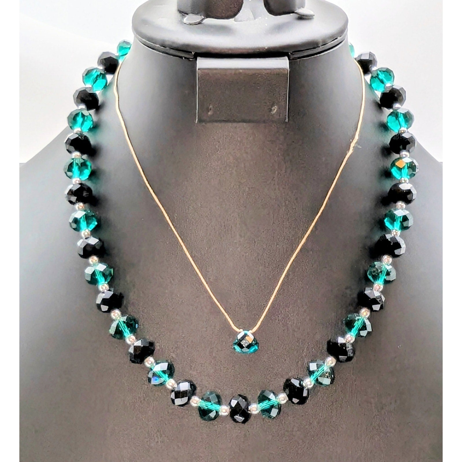 Lot of Two Glass Crystal Necklaces -- Black & Green Glass Crystal