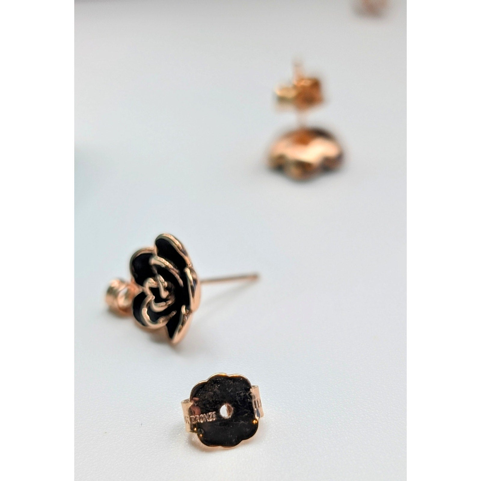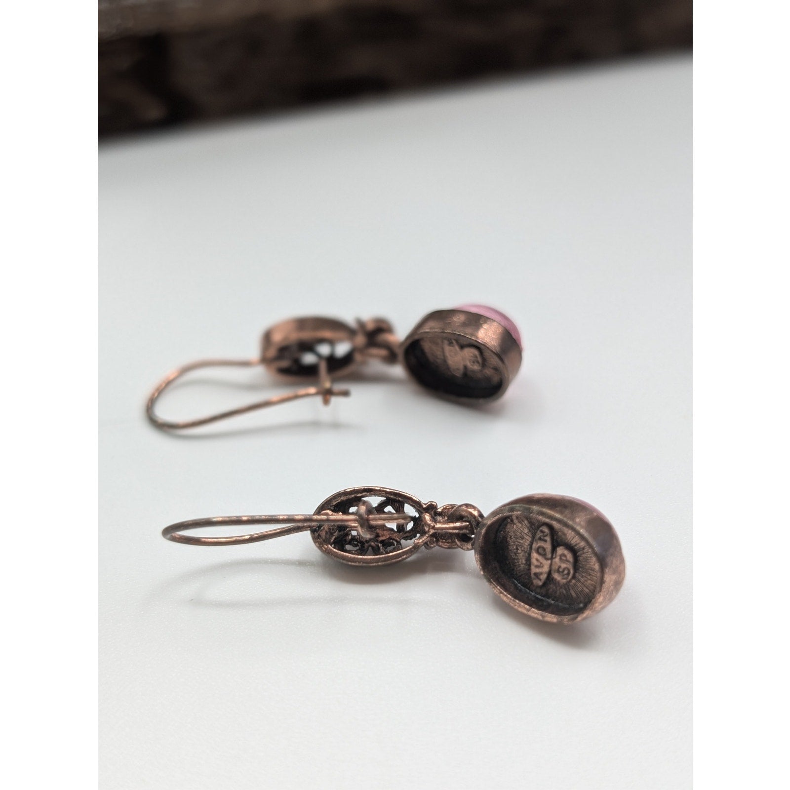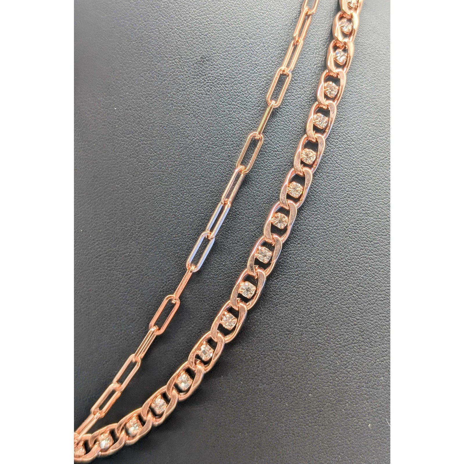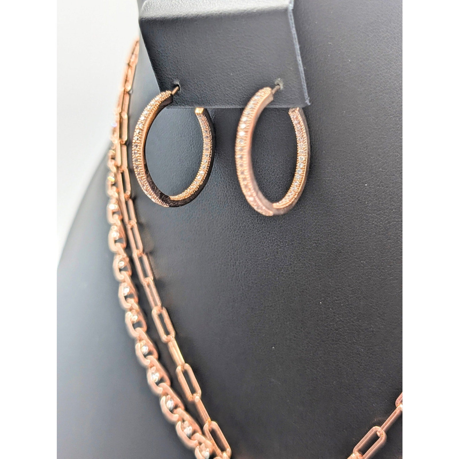 Lot of Two Necklaces Two Bracelets & Three Pair Earrings Rose Tone Metal