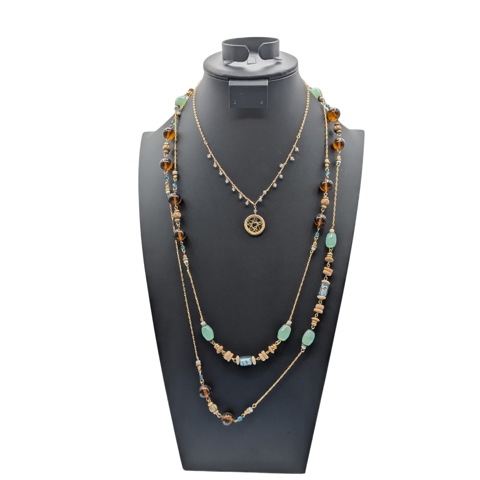 Lot of Two Vintage Boho Glass Beaded Gold Tone Necklaces
