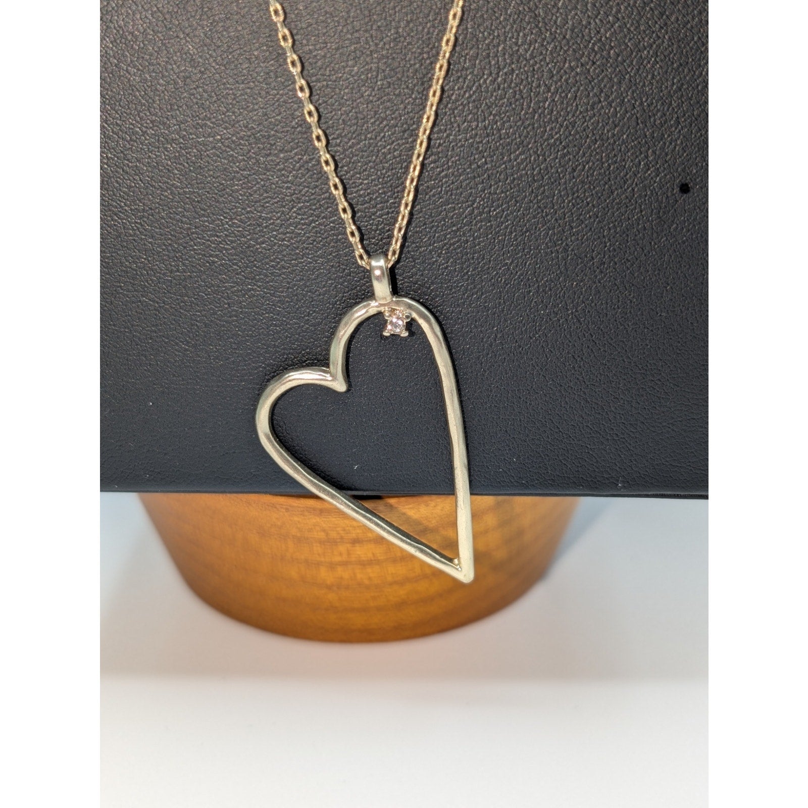 Lucky Brand Gold Tone Side Hanging CZ Heart 32"-34" Long Chain Necklace. Pre-owned, this necklace is in excellent condition.