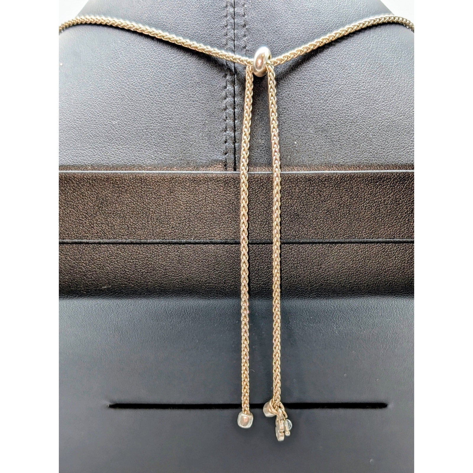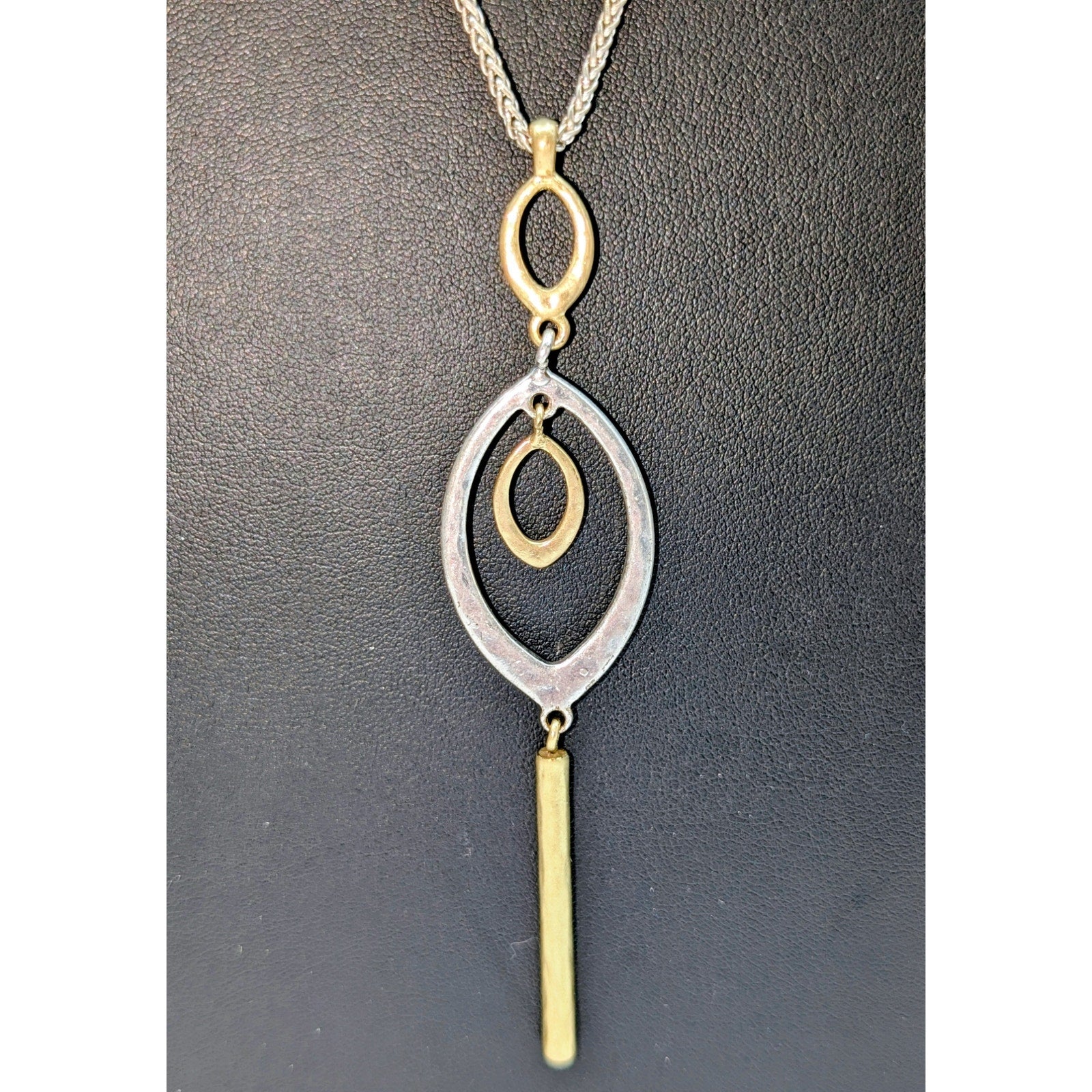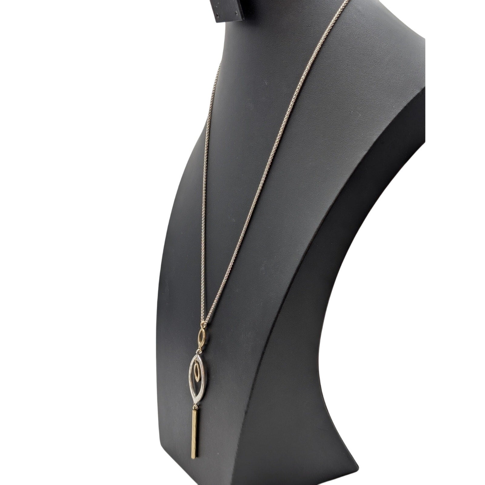 Lucky Brand Two Tone Double Bar Drop Pendant Adjustable Chain Necklace. Pre-owned, this necklace is in great condition. Often, photos are enlarged to show detail. Photos are part of the description.