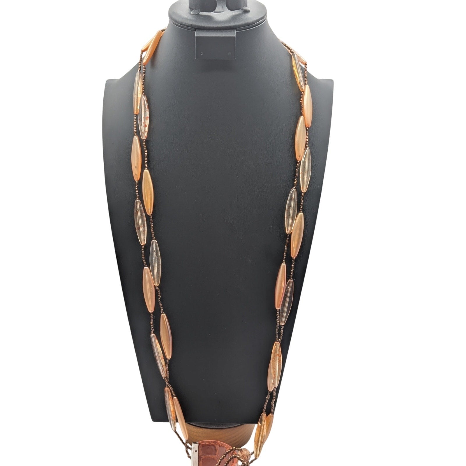 M. Haskell NWT Double Strand Elongated Bead Coordinating Bead & Cuff Jewelry Lot. Pre-owned, this lot of two necklaces that look like they were made for each other and the embossed cuff bracelet are in great to NWT condition.