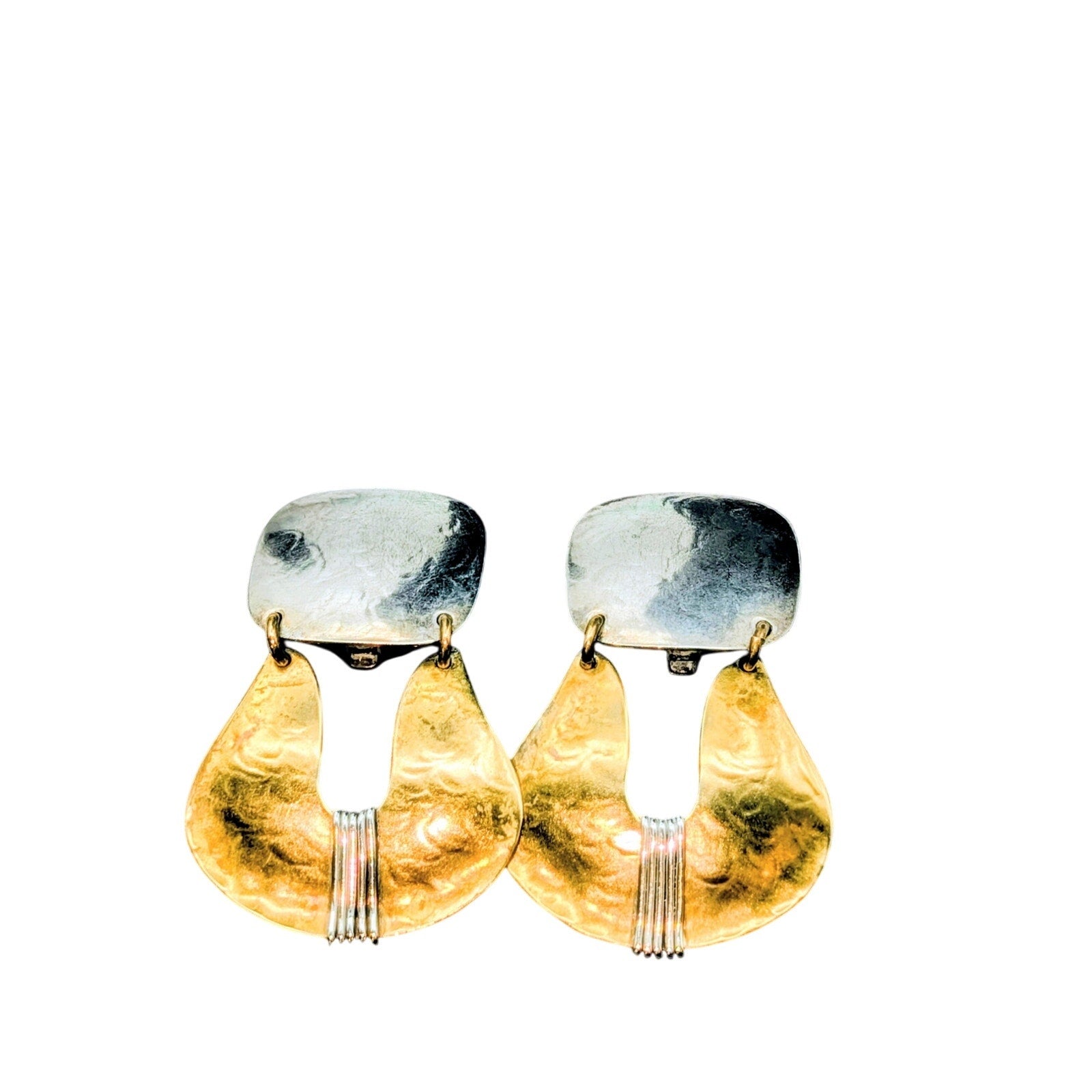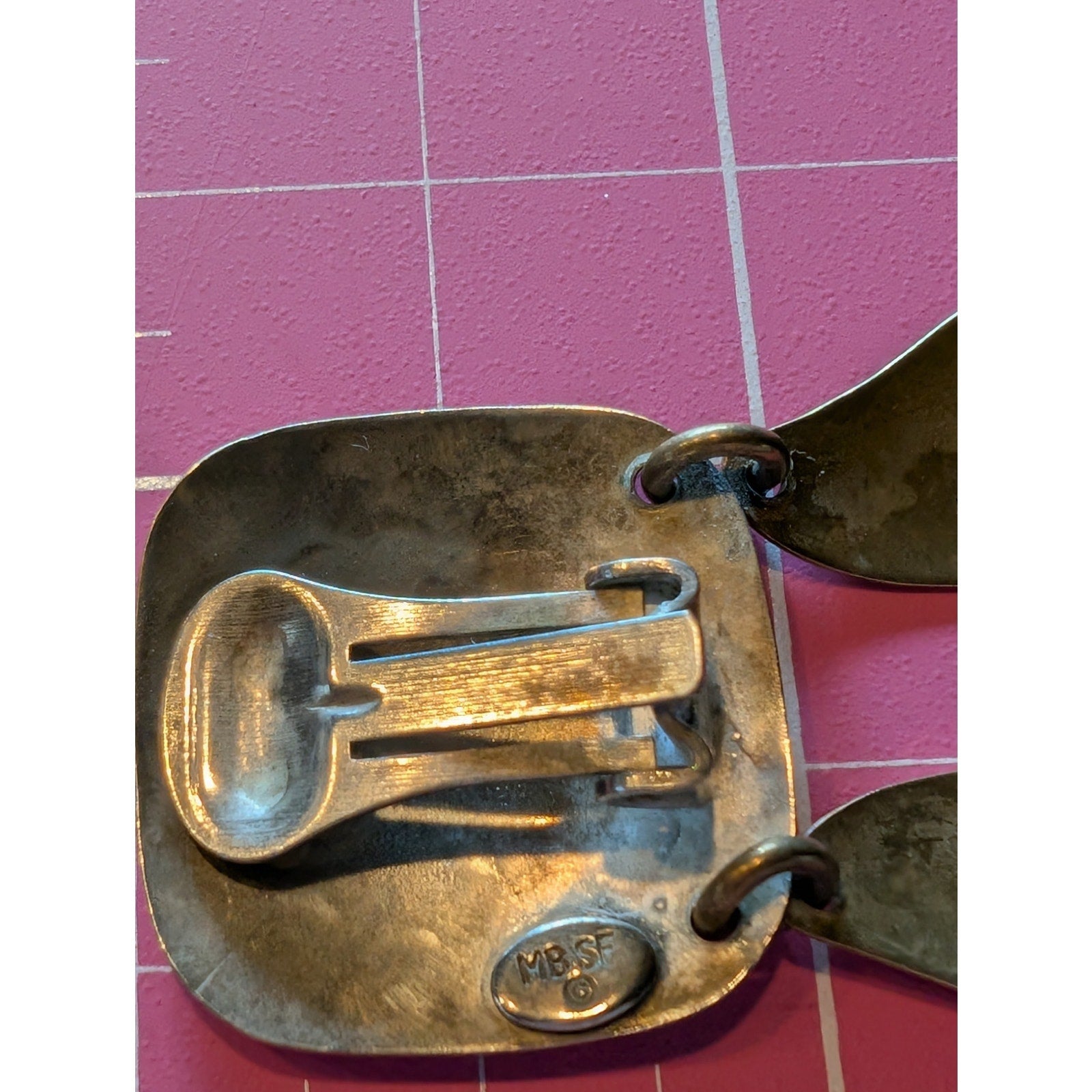 Marjorie Baer SF Signed Brass Mixed Metal Modern Dangle Drop Clip On Earrings. Pre-owned, these earrings are in great condition.