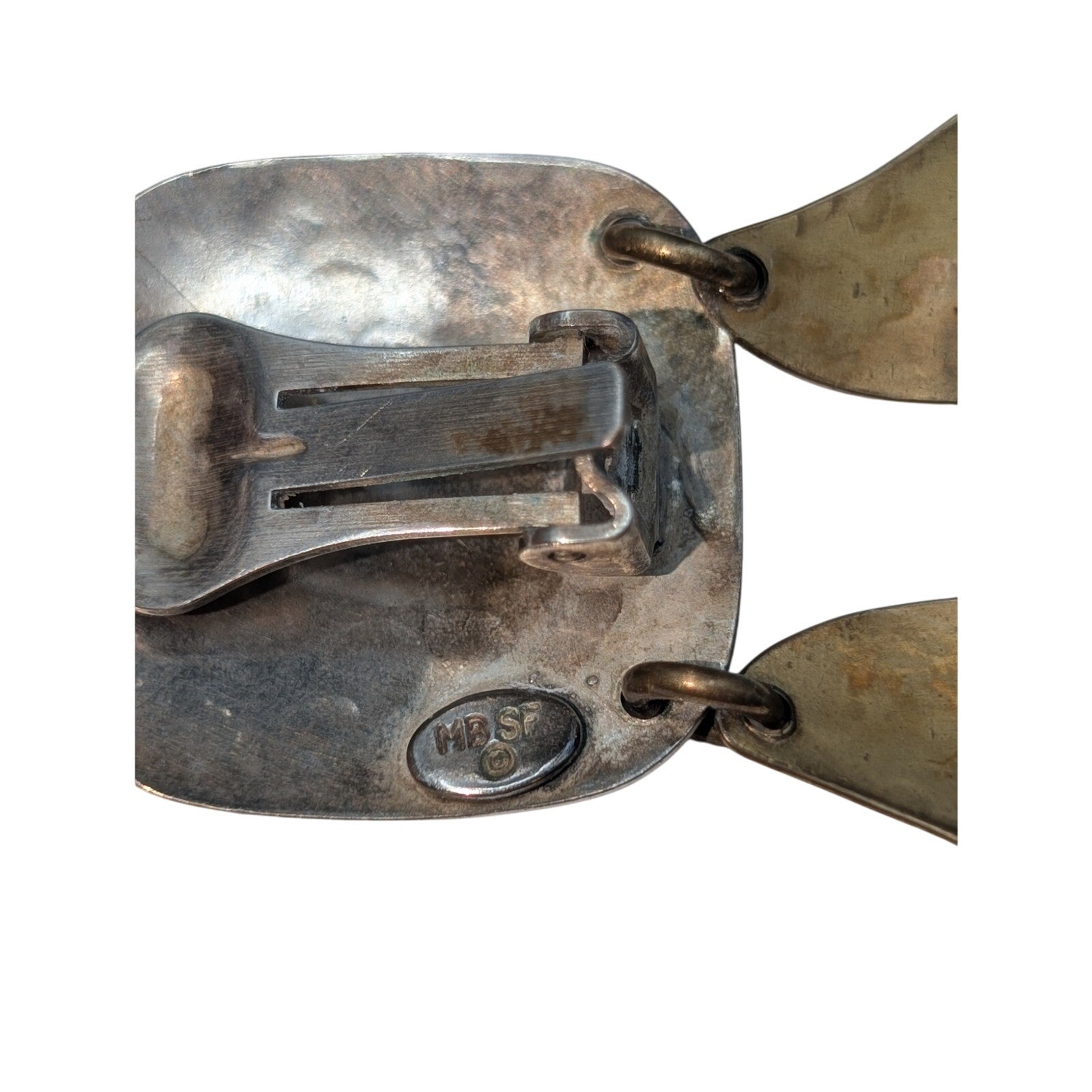 Marjorie Baer SF Signed Brass Mixed Metal Modern Dangle Drop Clip On Earrings