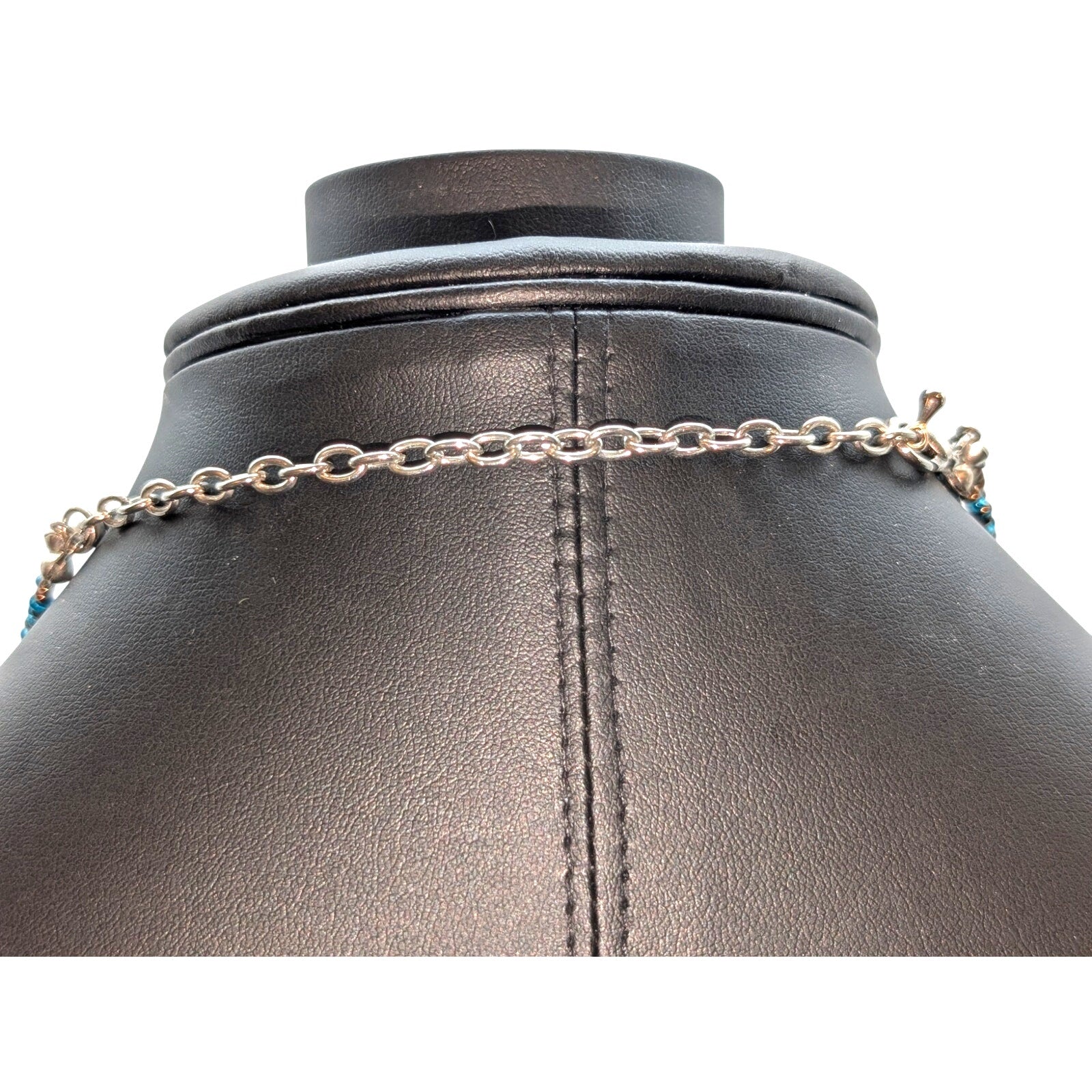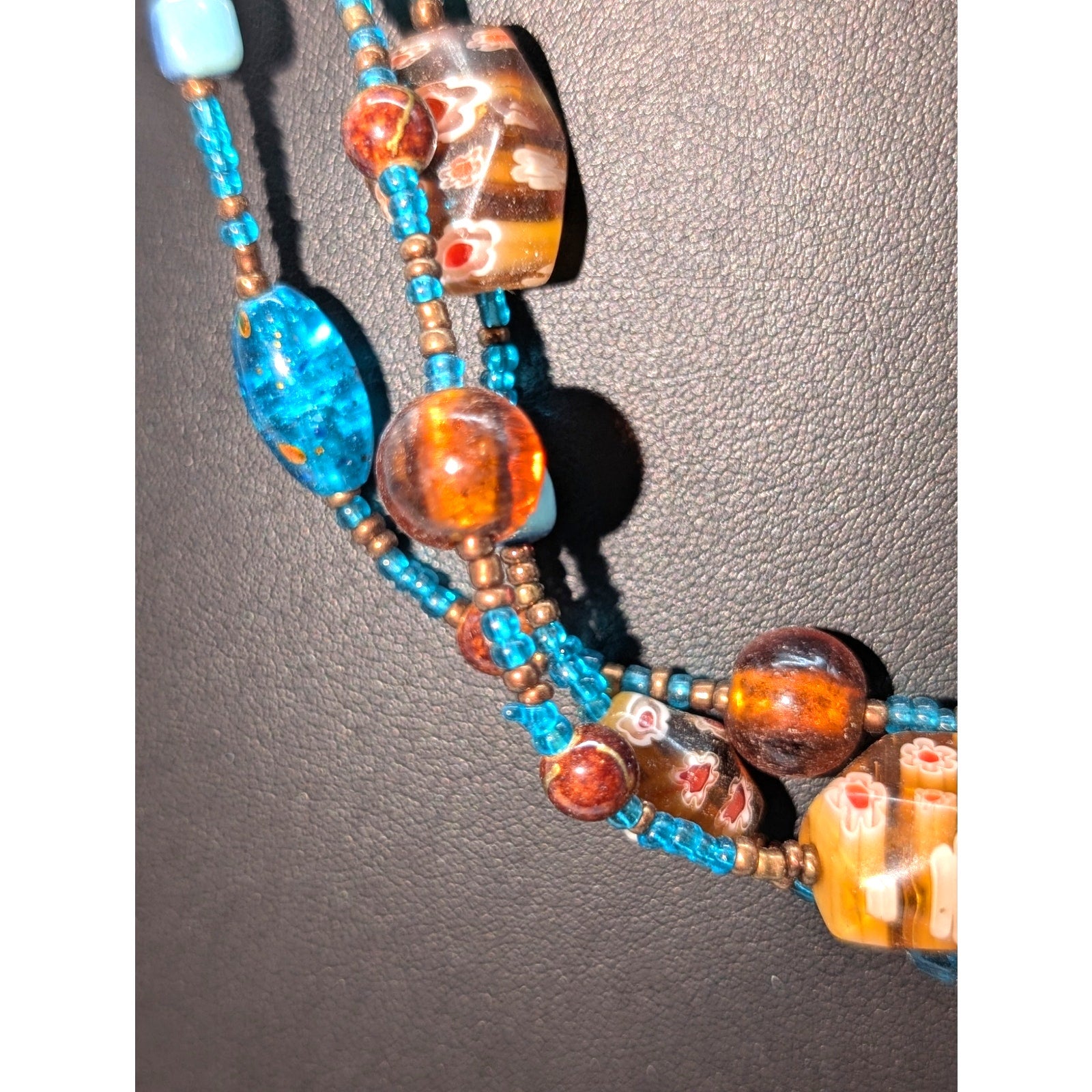 Millefiori Glass Lampwork Aqua Brown Bead Multi-Strand 17"-21" Necklace. Pre-owned, this necklace is in excellent condition.