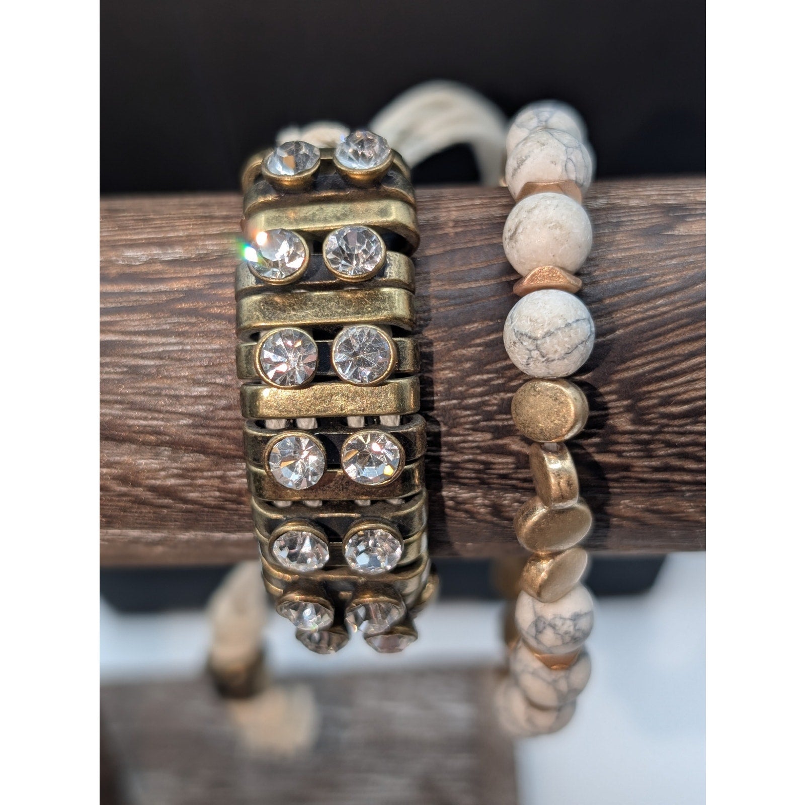 Mixed Lot Clear Pink Rhinestones Howlite 2 Necklaces & 2 Coordinating Bracelets. Pre-owned, this mixed lot of two necklaces and two bracelets is in various conditions and being sold as is (all wearable to excellent). The items chosen for my lots are items I previously had set aside to sell but decided to lot up due to a high volume of inventory. Because they are lotted up and at a reduced price, I have not taken the time to clean them.