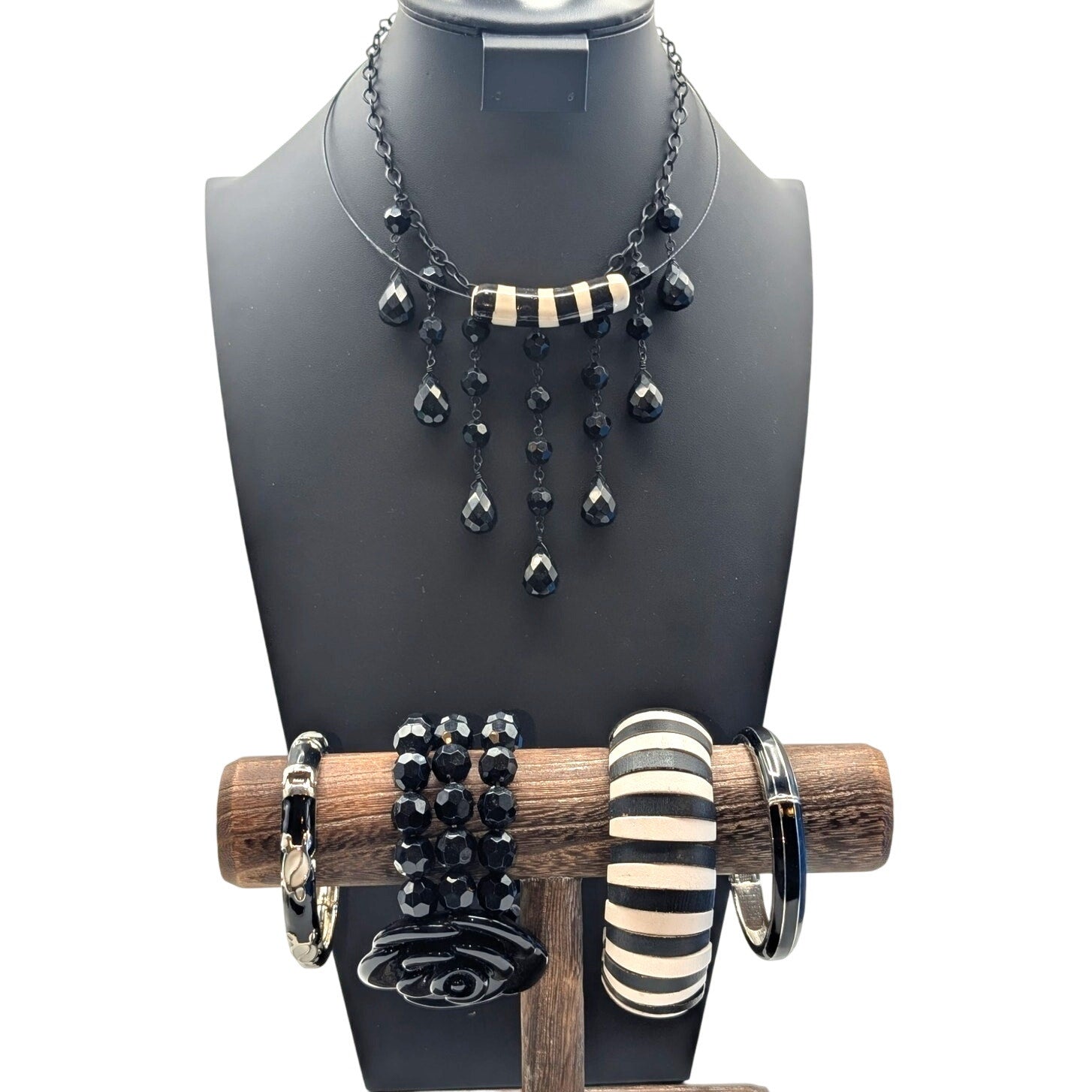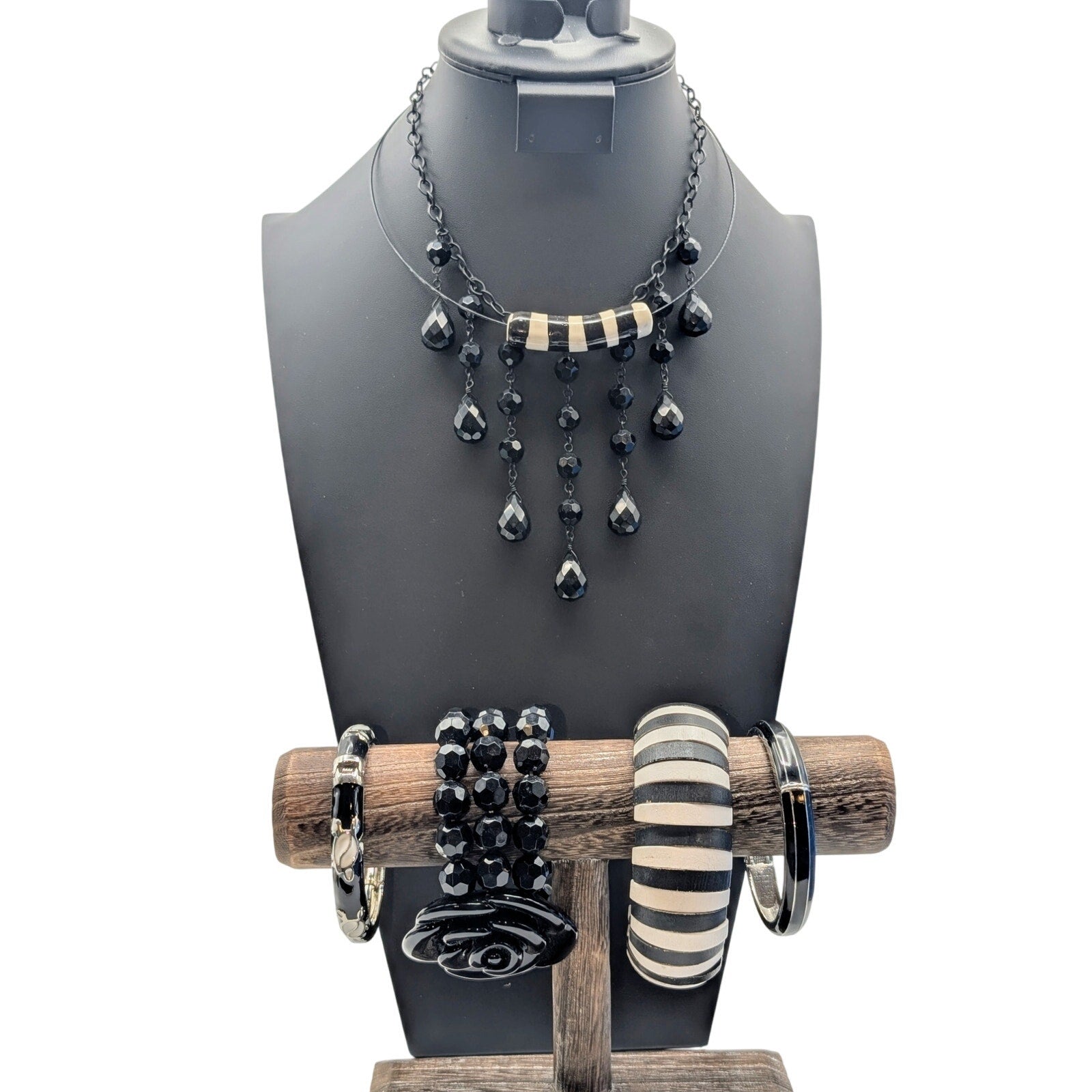 Mixed Lot of Black & White Jewelry--Two Necklaces & Four Bracelets -- Two Looks
