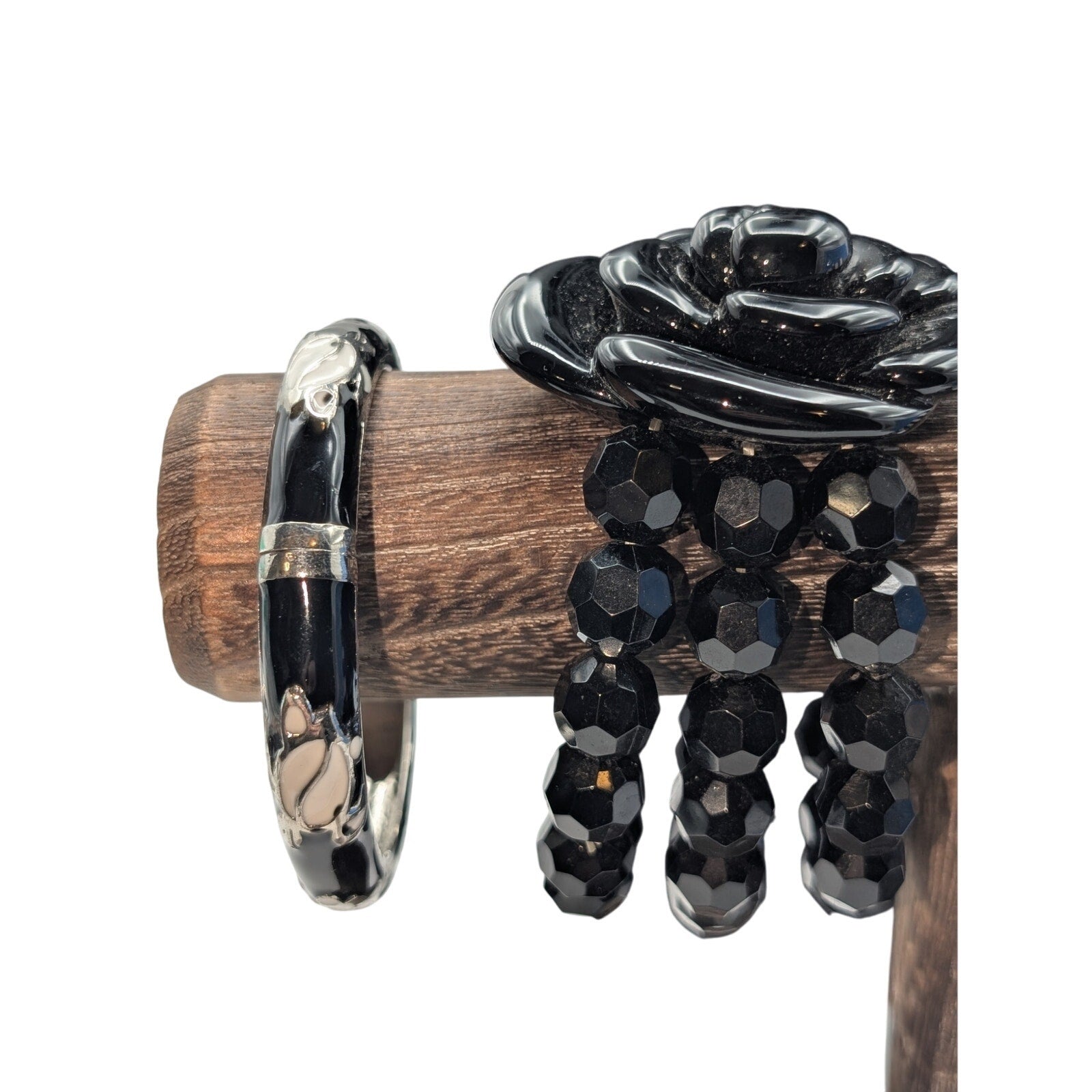 Mixed Lot of Black & White Jewelry -- Two Necklaces & Four Bracelets. Funky casual look and dressed up elegance. Pre-owned, this lot of mixed jewelry is in various conditions and being sold as is. All wearable to excellent condition. The items chosen for my lots are items I previously had set aside to sell but decided to lot up due to a high volume of inventory. Because they are lotted up and at a reduced price, I have not taken the time to clean them. Great to wear individually or together or with other pieces. Also great for the reseller to get 10 items for a reduced price if otherwise sold separately.