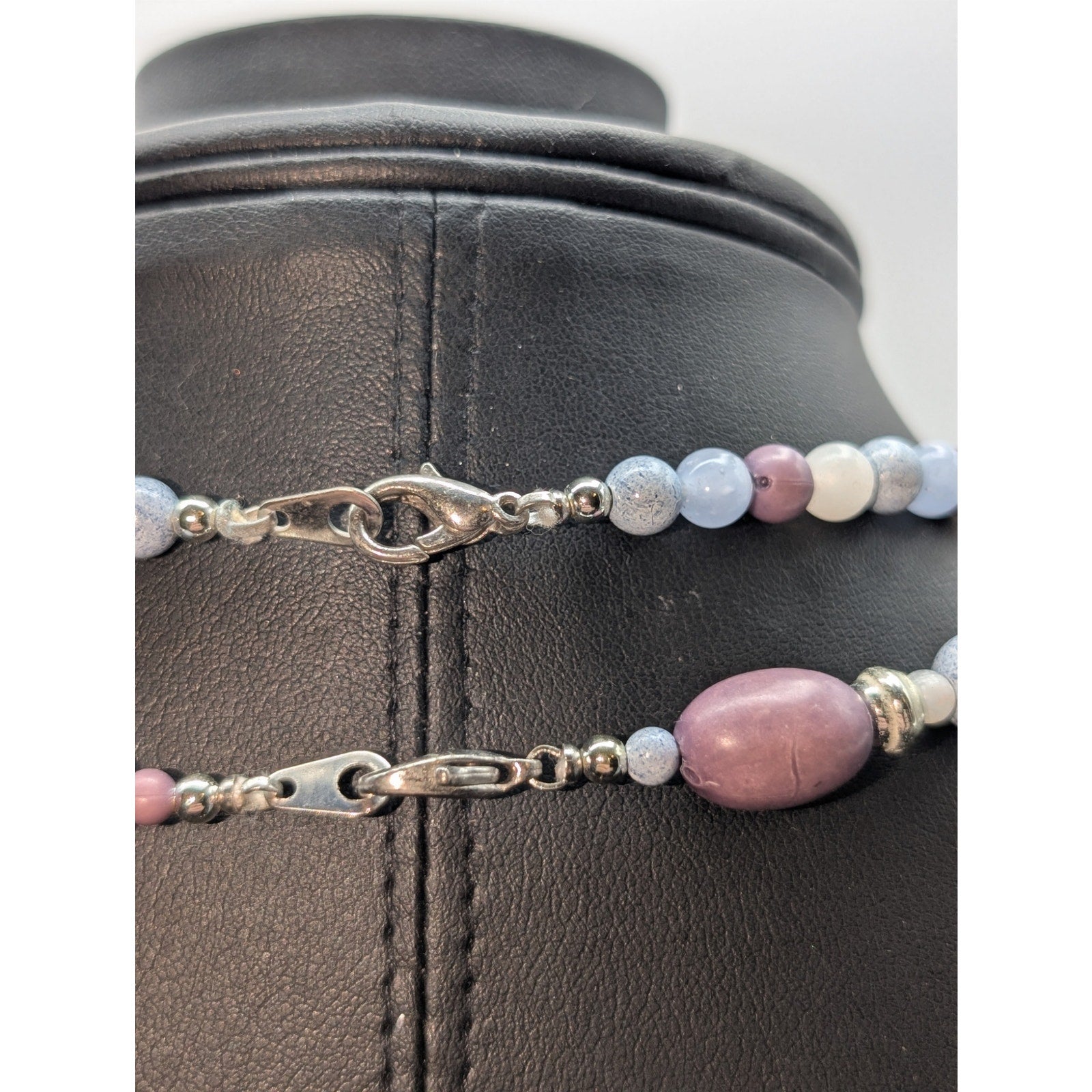 Mixed Lot of Two Blue Lavender Silver Tone Necklaces & Matching Clip On Earrings