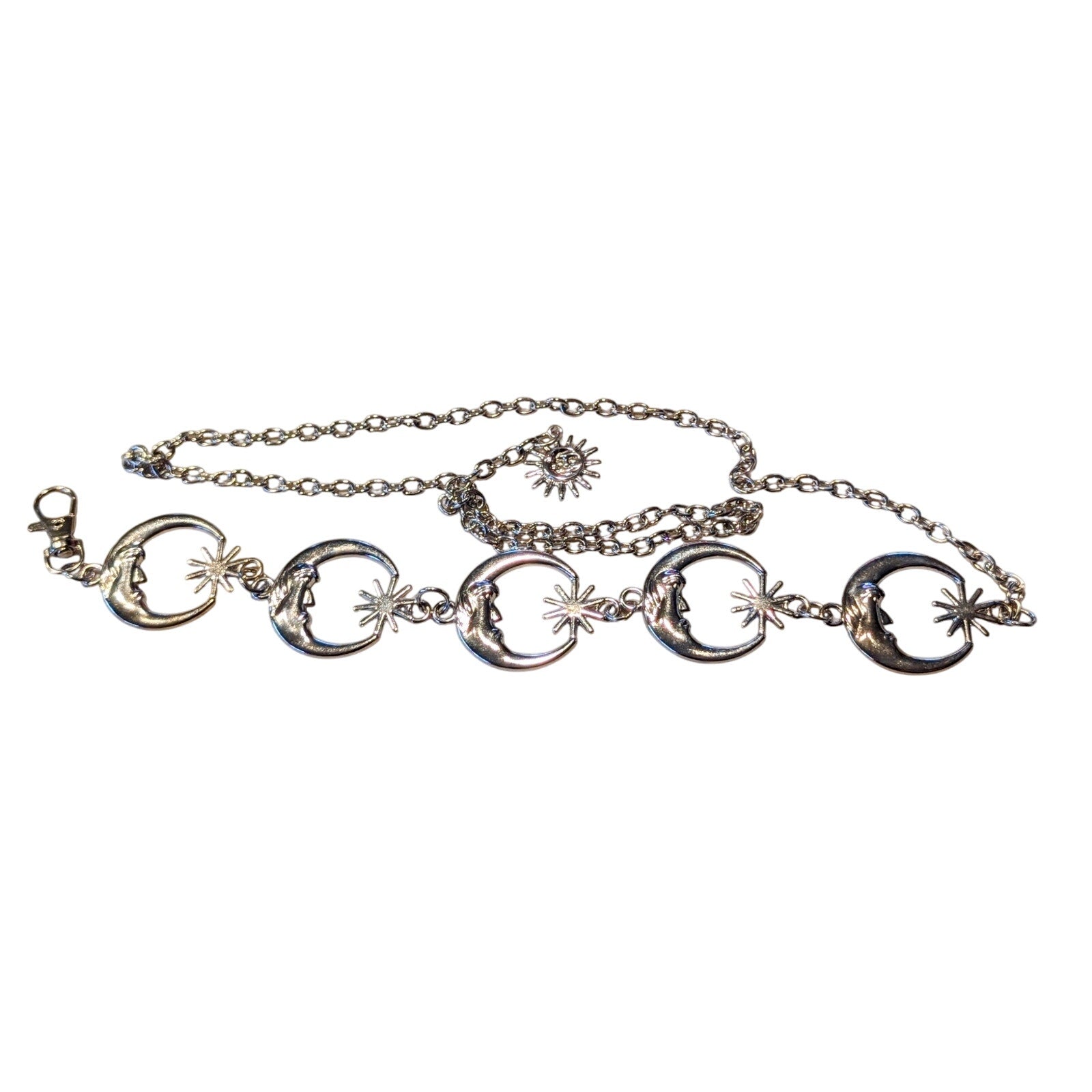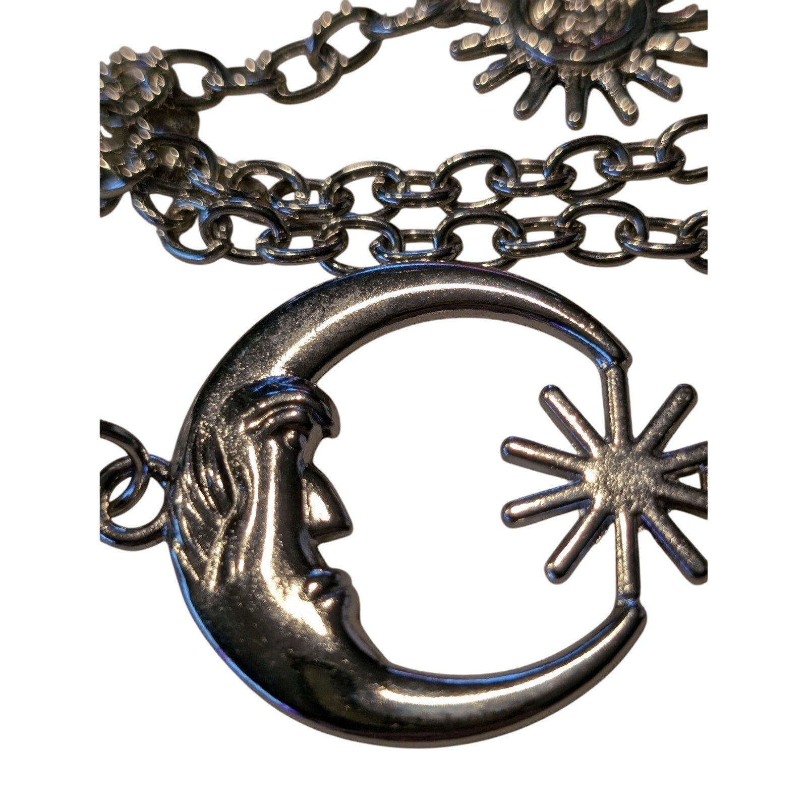 Moon Sun Boho Retro Punk Silver Tone Metal 43" or Less Waist Chain Belt