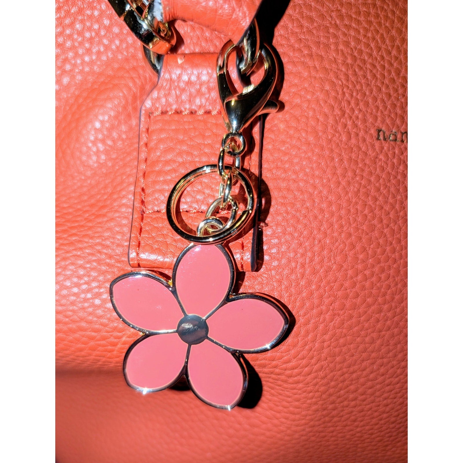 Nanette Lepore Orange Leather Satchel w/ Orange Flower Charm. Pre-owned, this bag is in excellent condition with minimal to no obvious wear. Charm is more orange than the photo shows. Nice, clean inside. Measures 10"L x 5.5"D x 7.75"H. Long strap. Originally sold for $286.